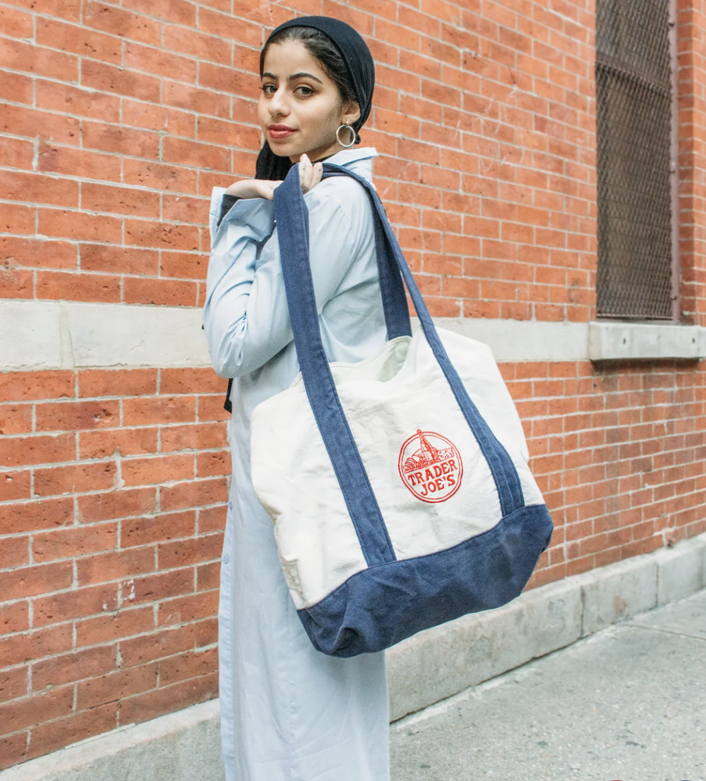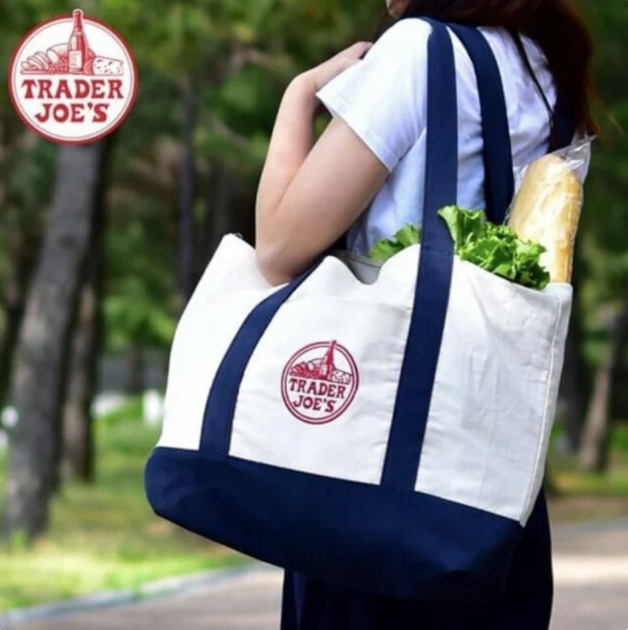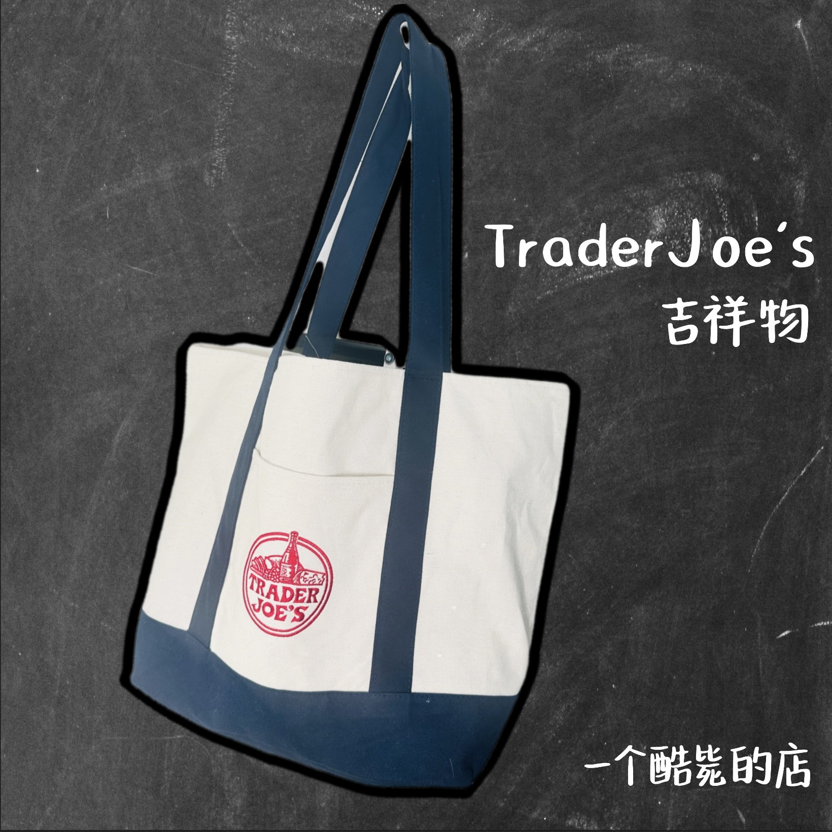 American Trader Joe's Tote Bag with Logo, Canvas Bag for Shopping and Commuting, Machine Washable, Large Capacity, Single Shoulder