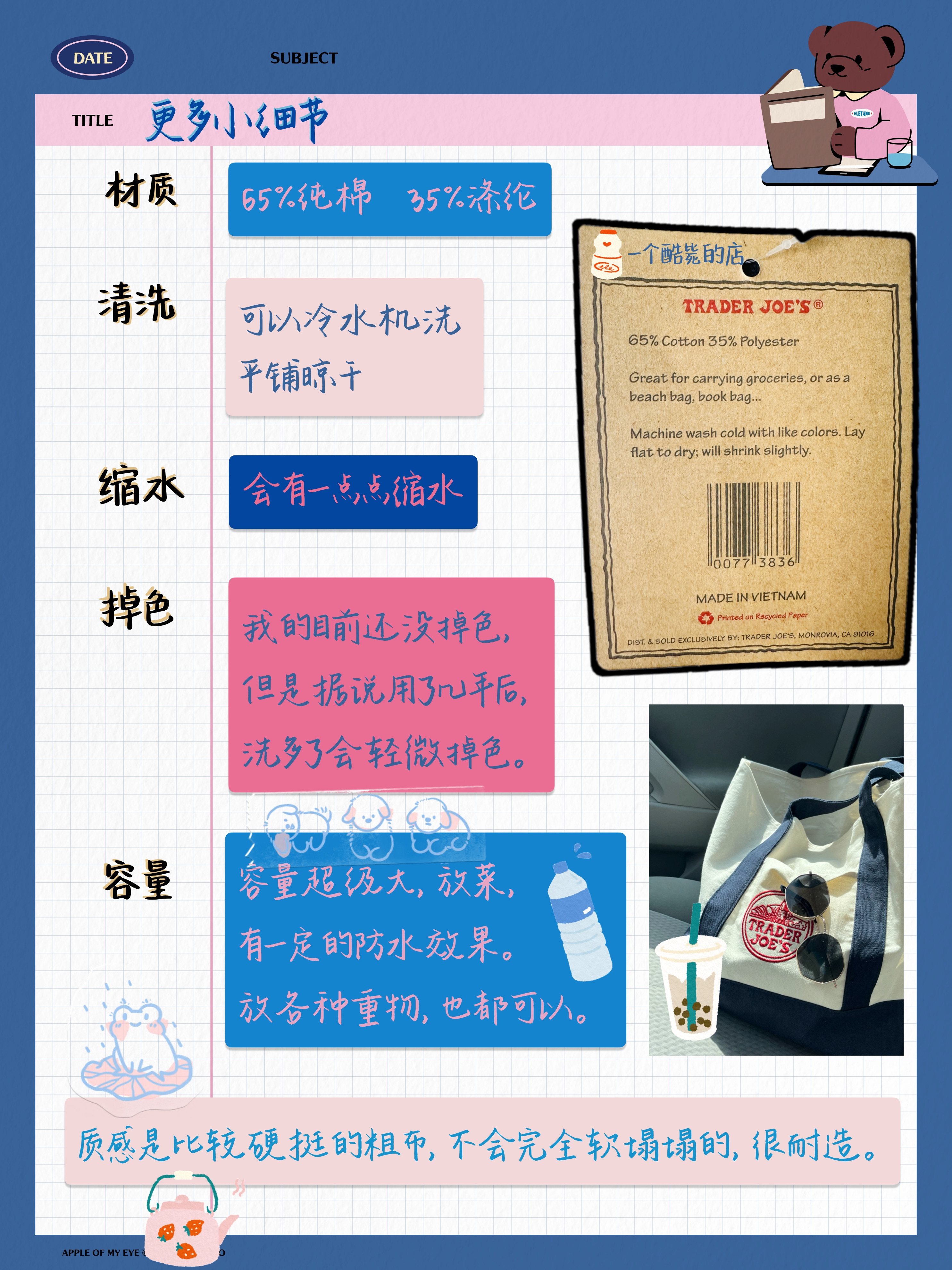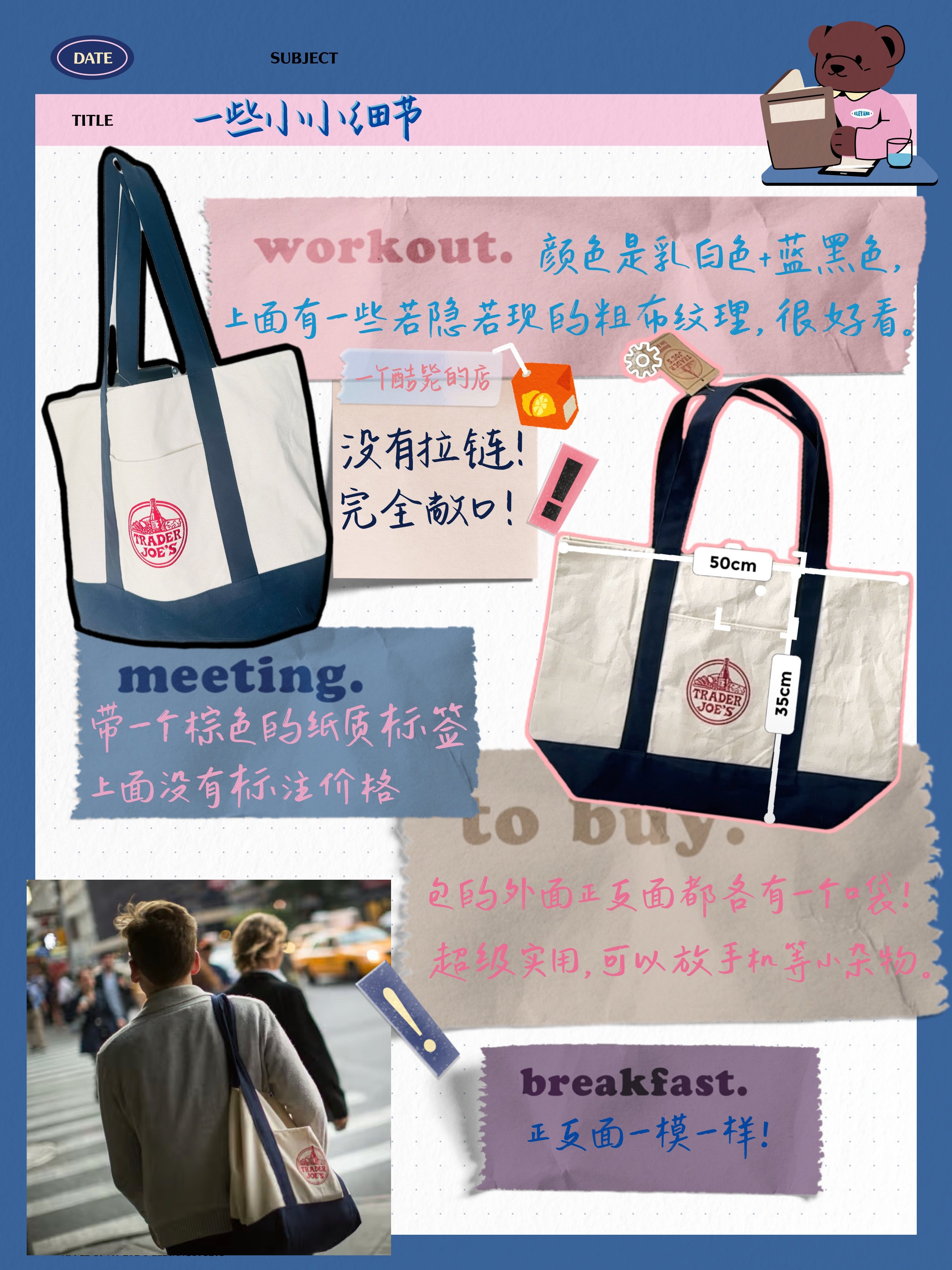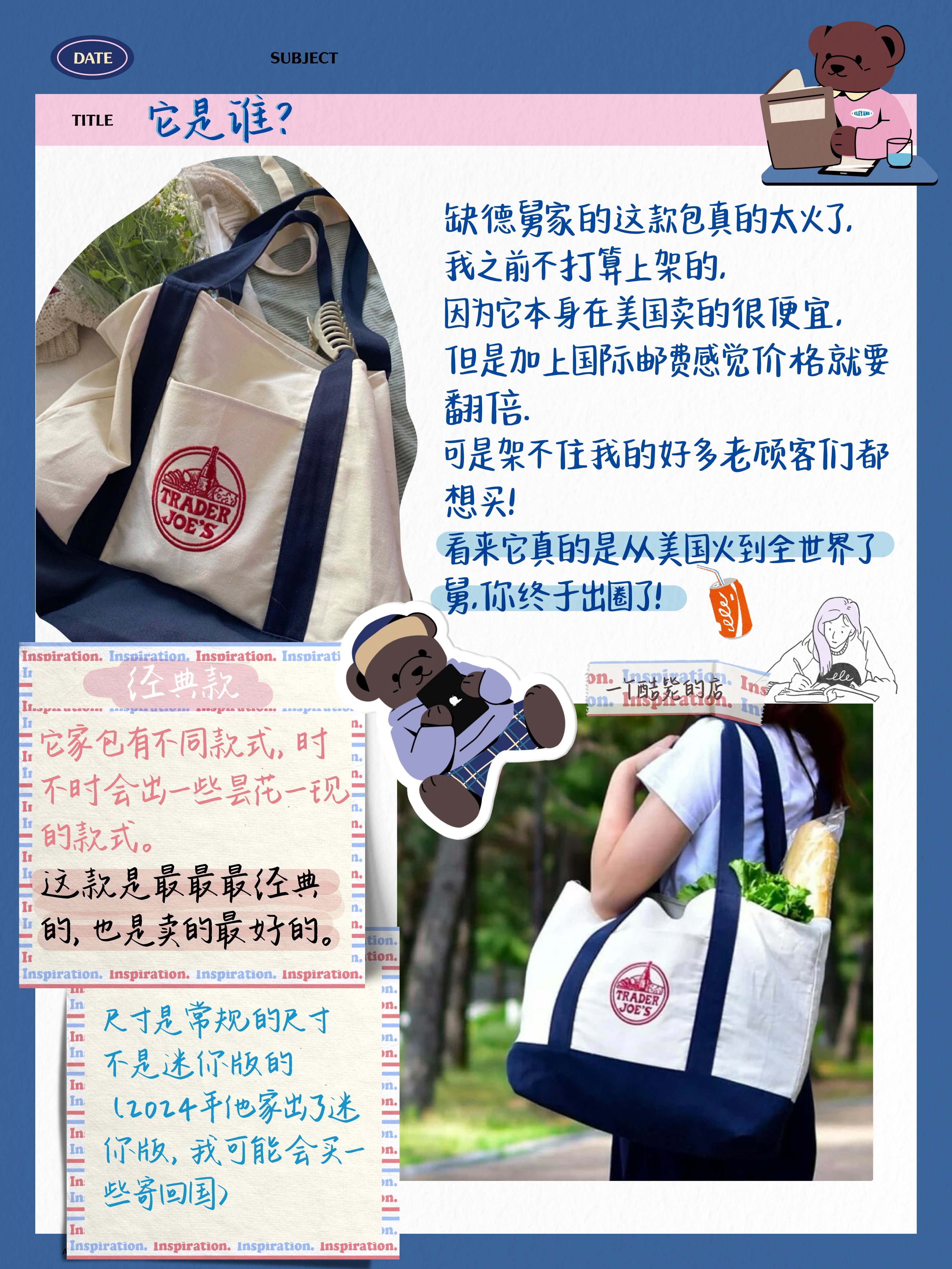 American Trader Joe's Tote Bag with Logo, Canvas Bag for Shopping and Commuting, Machine Washable, Large Capacity, Single Shoulder
