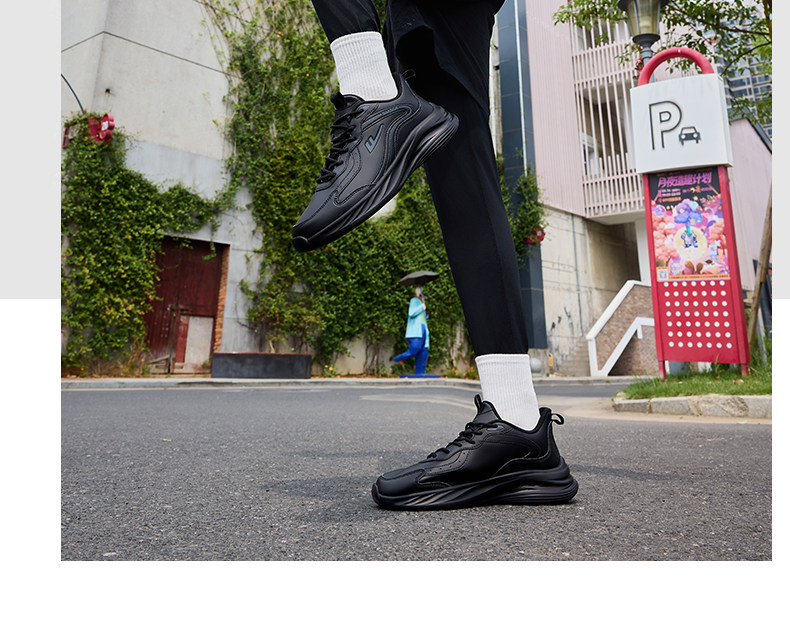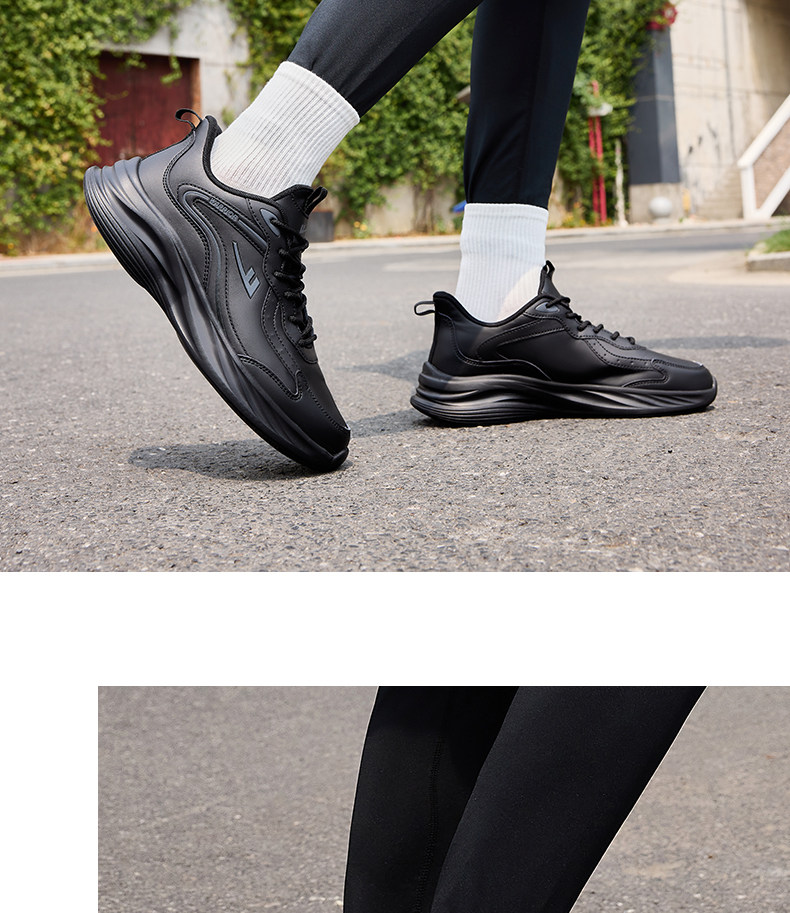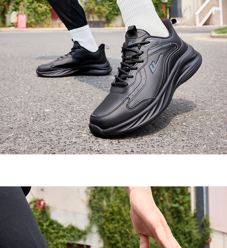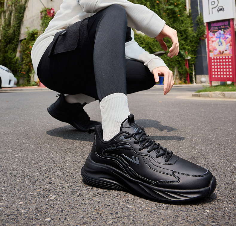 Pull Back Men's Shoes 2026 New Spring Black Sneakers Leather Surface Lightweight Water-Repellent Running Shoes Casual Soft Sole