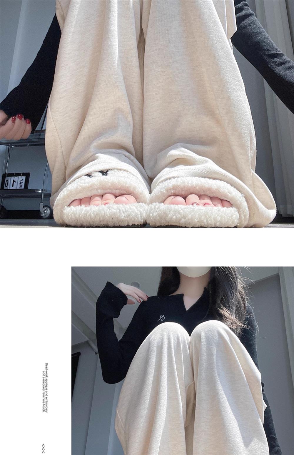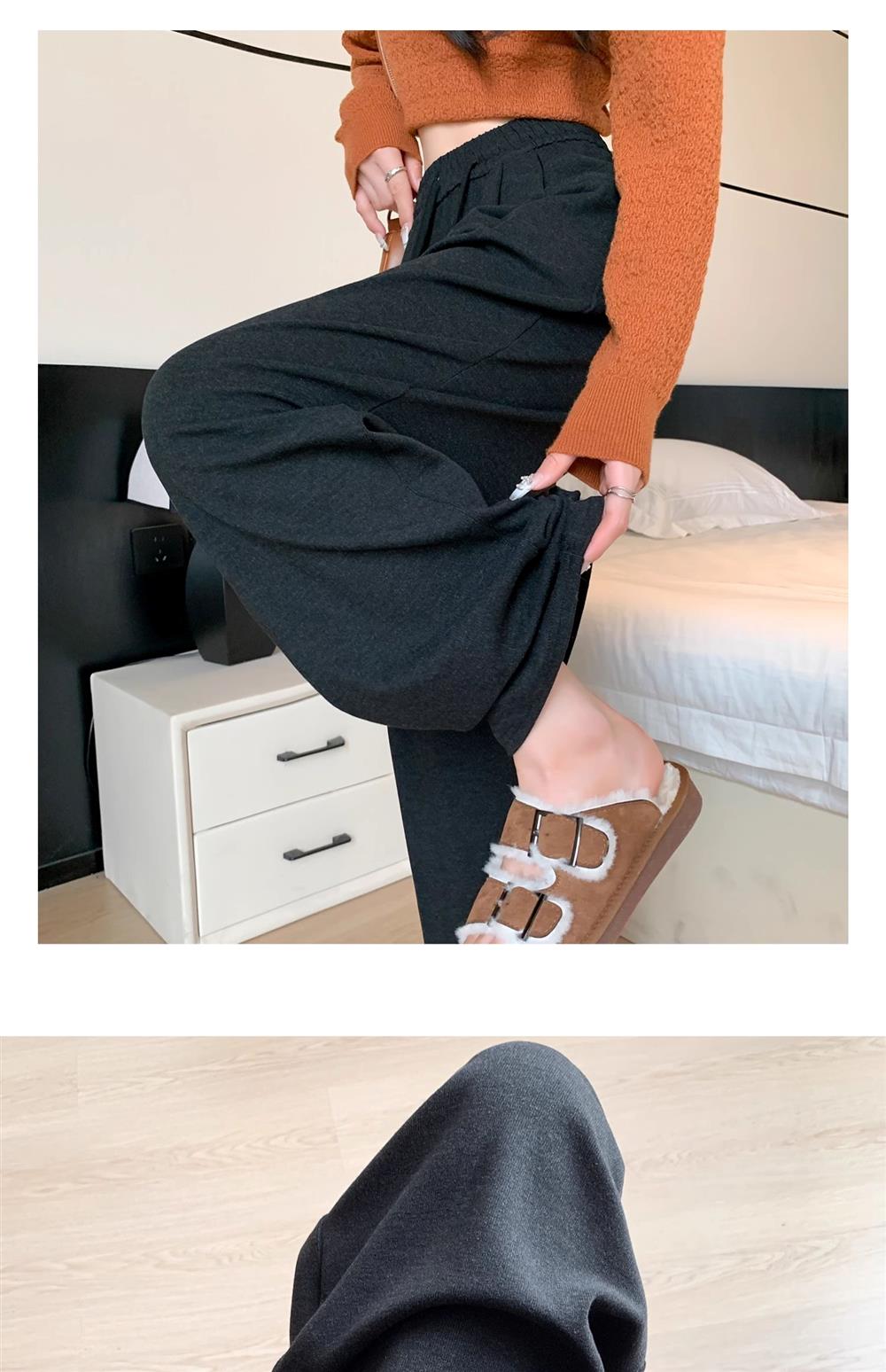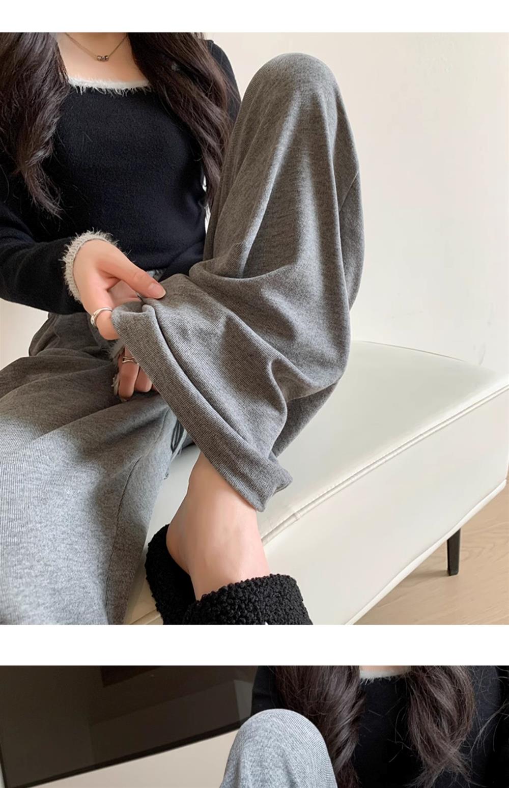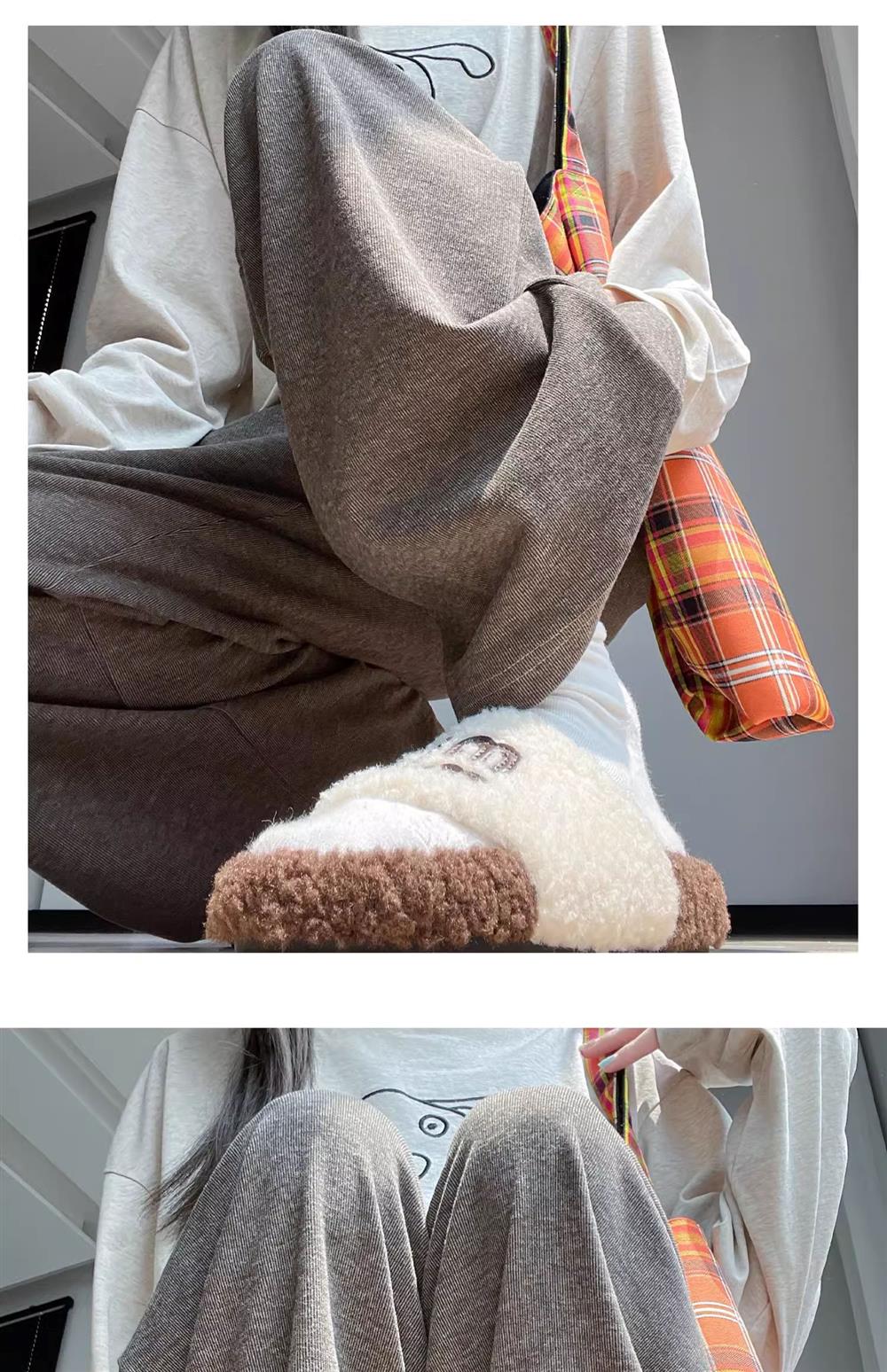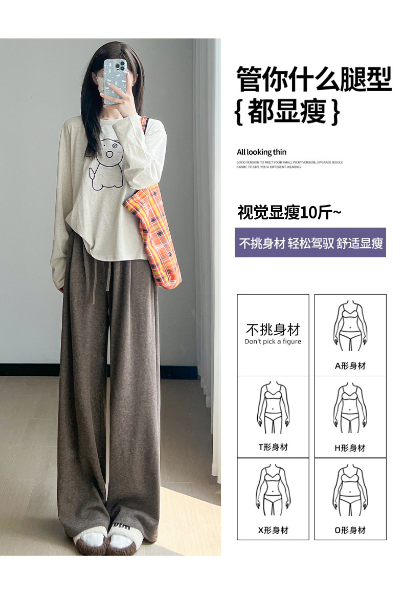 Coffee-Colored Soft Glutinous Rice Pants for Women, Spring and Autumn 2024 New Style, Casual Loose Bf Lazy Style, Petite Knitted Fleece-Lined Wide-Leg Pants