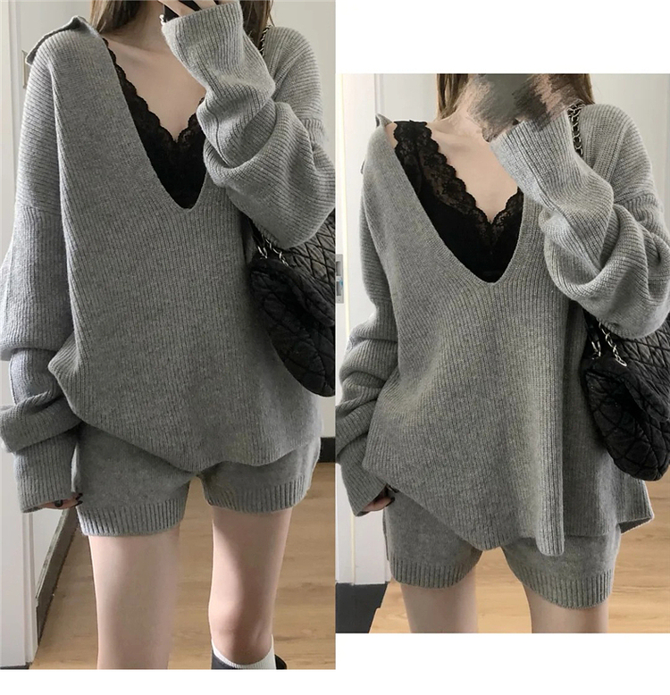 Early Autumn Gray Knitted Sweater Suit Dress for Women 2025 New Style Elegant Complete Outfit Ootd