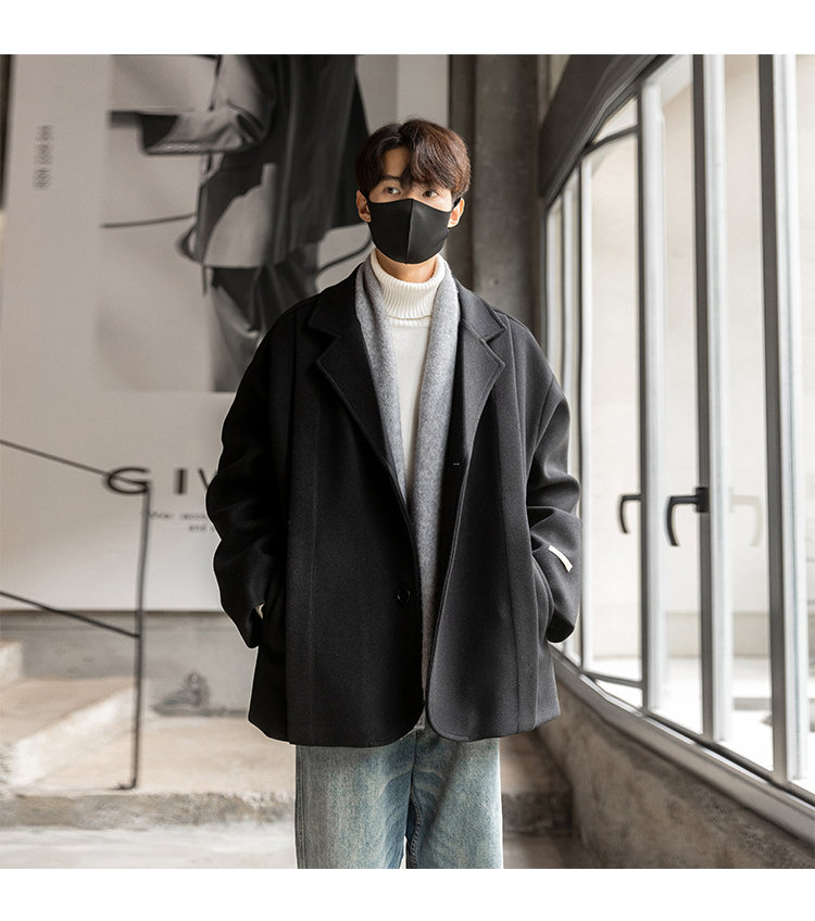 Sim Men's Casual Blazer, Loose and High-End, Autumn and Winter Woolen Thick Suit Jacket, Single Piece