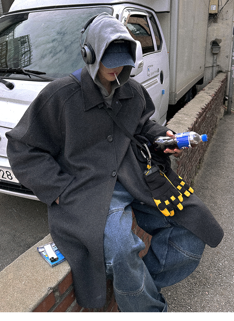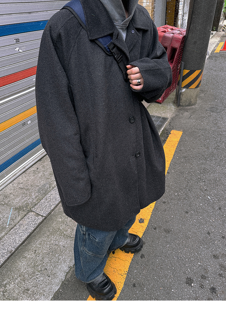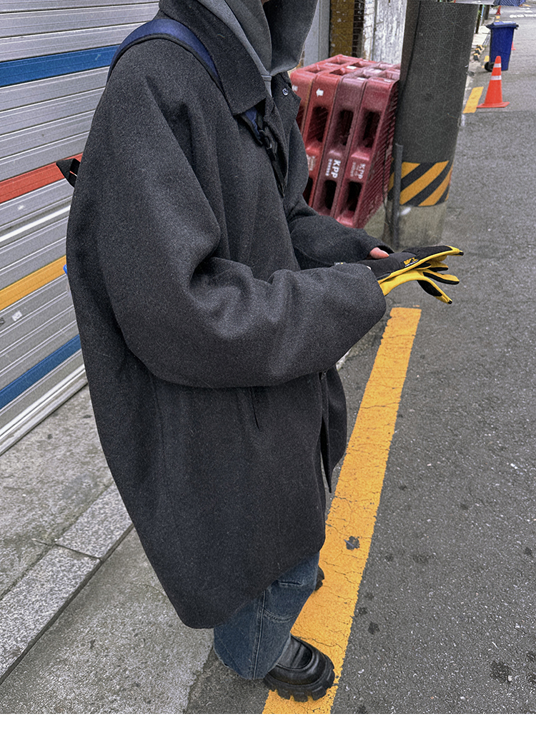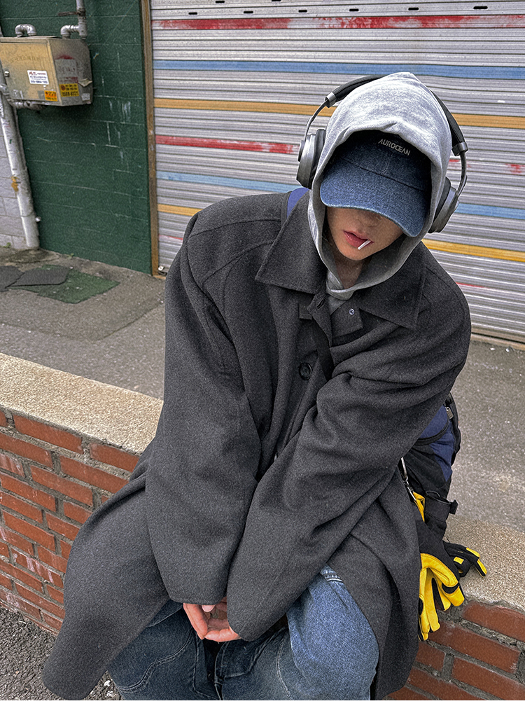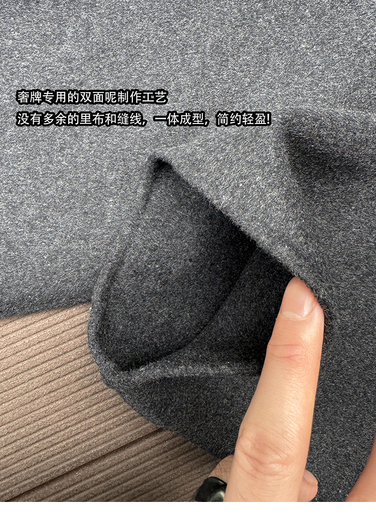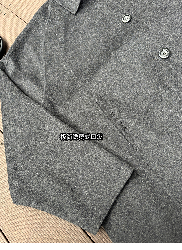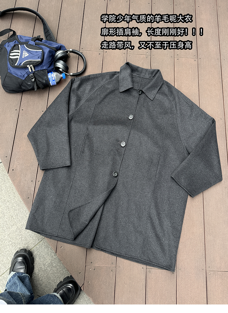 Aurocean Mid-Length Preppy Woolen Outwear Charcoal Gray Double-Sided Woolen Silhouette Windbreaker Outwear
