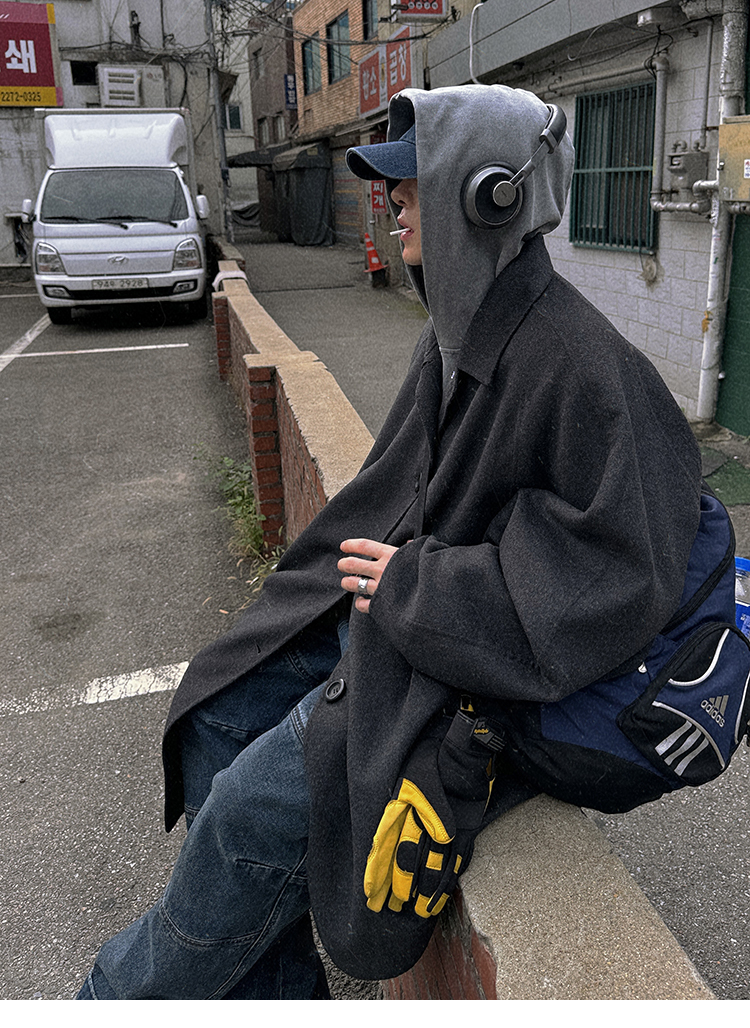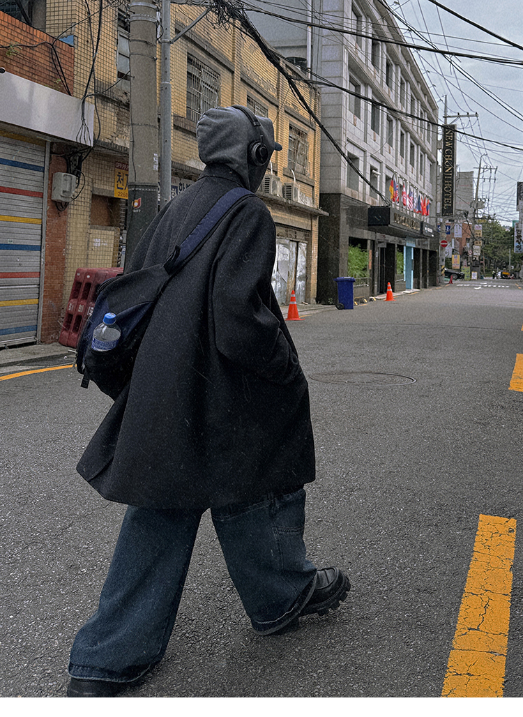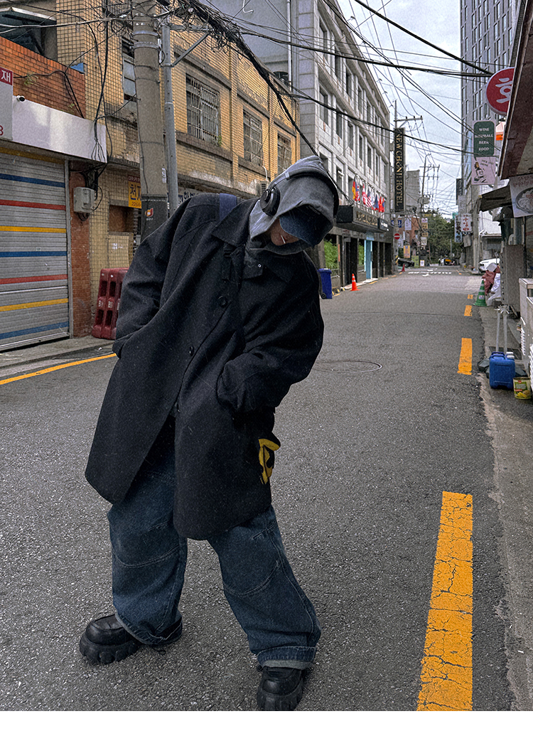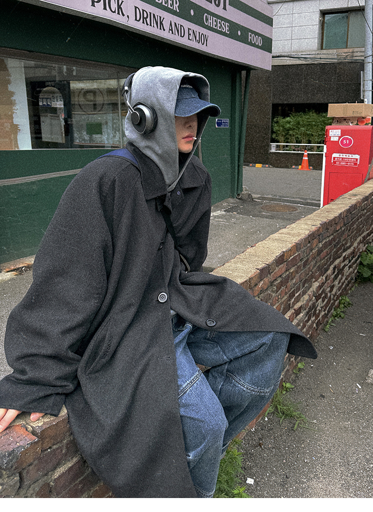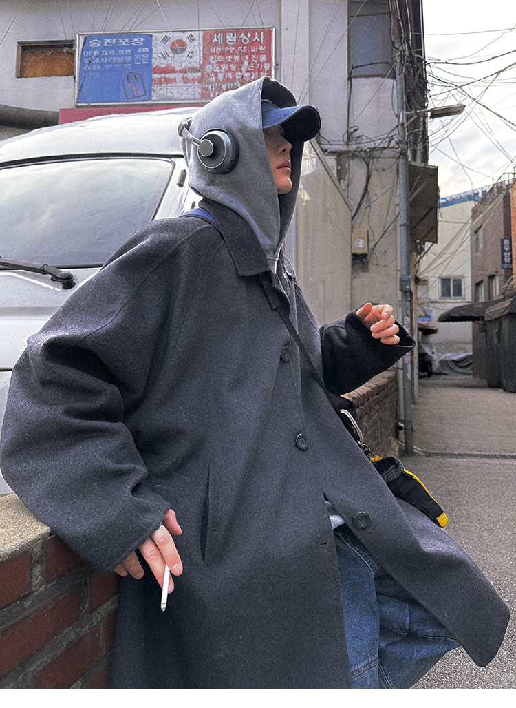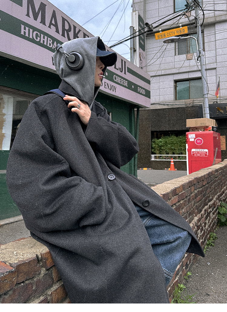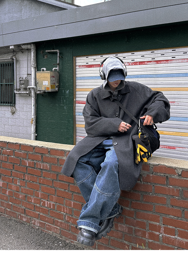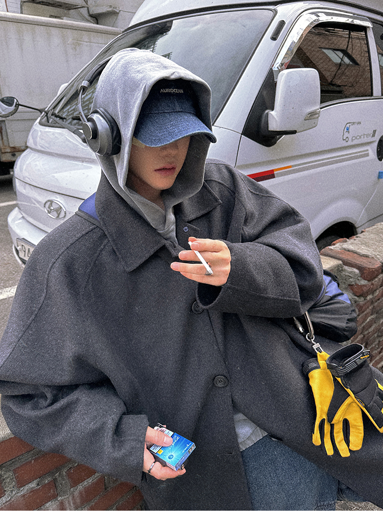 Aurocean Mid-Length Preppy Woolen Outwear Charcoal Gray Double-Sided Woolen Silhouette Windbreaker Outwear