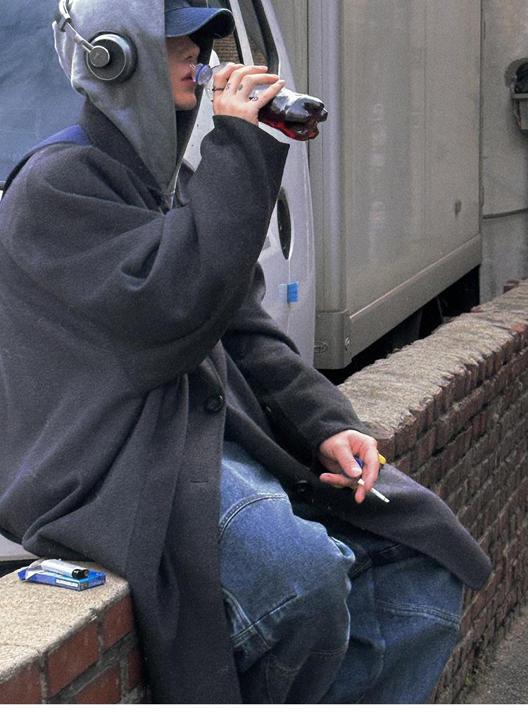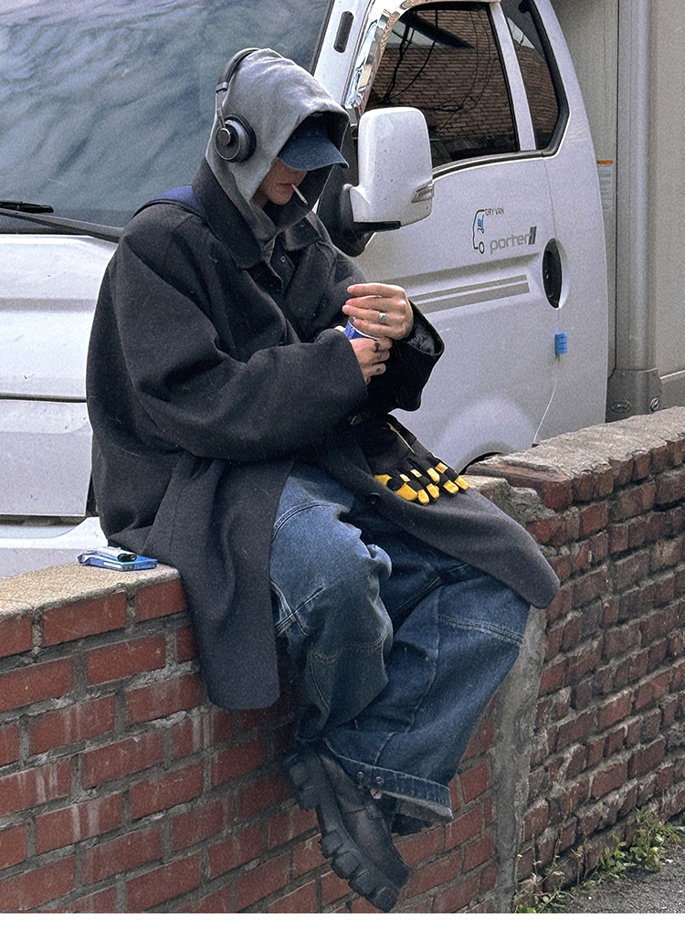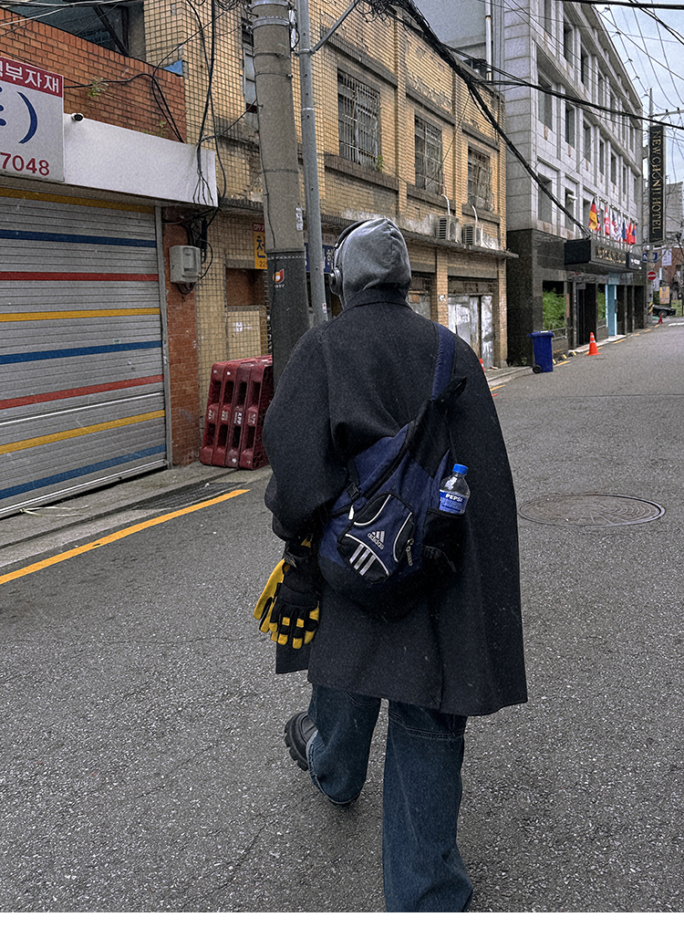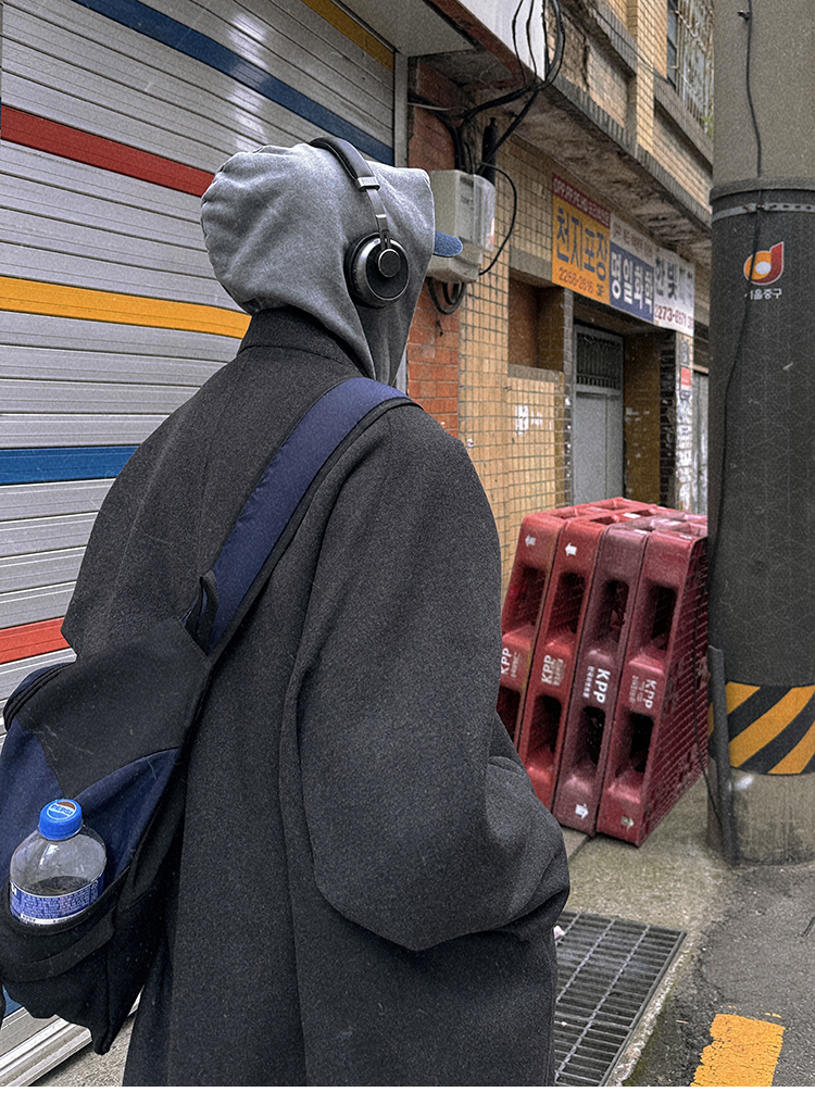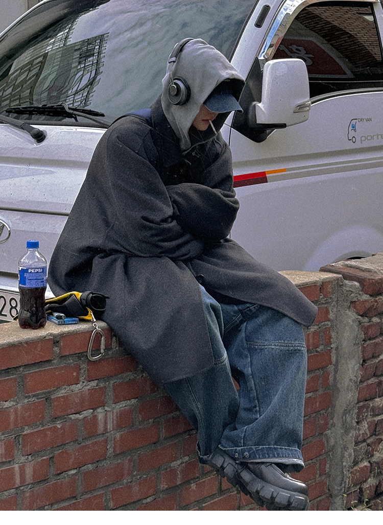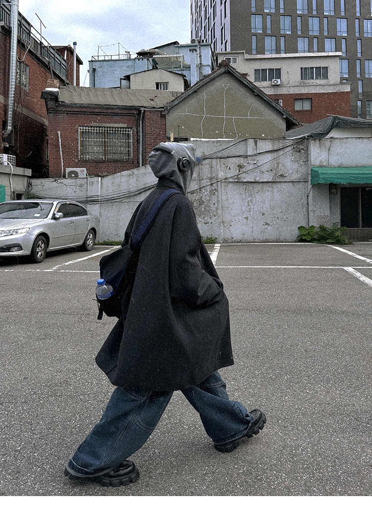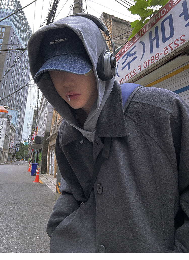 Aurocean Mid-Length Preppy Woolen Outwear Charcoal Gray Double-Sided Woolen Silhouette Windbreaker Outwear