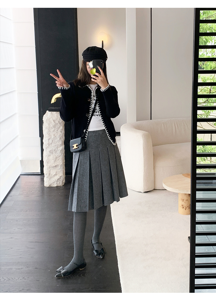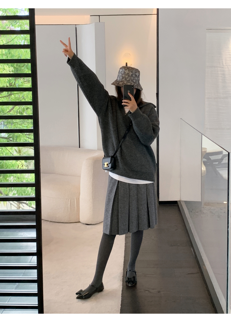 Iszizii Reversible Gray Pleated Skirt Mid-Length Intellectual Autumn and Winter Woolen Skirt