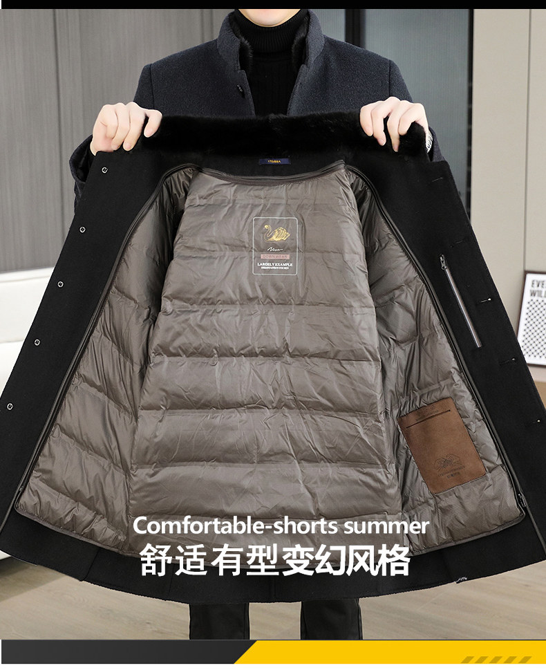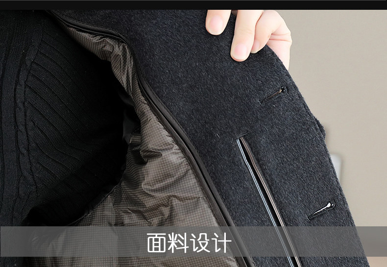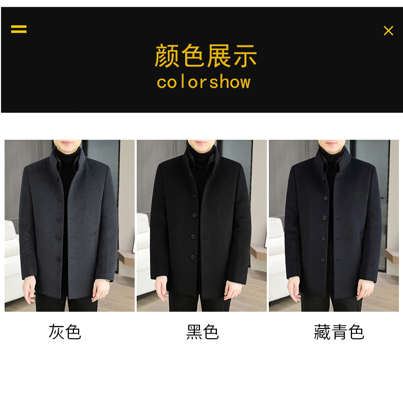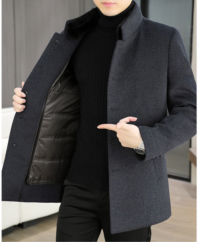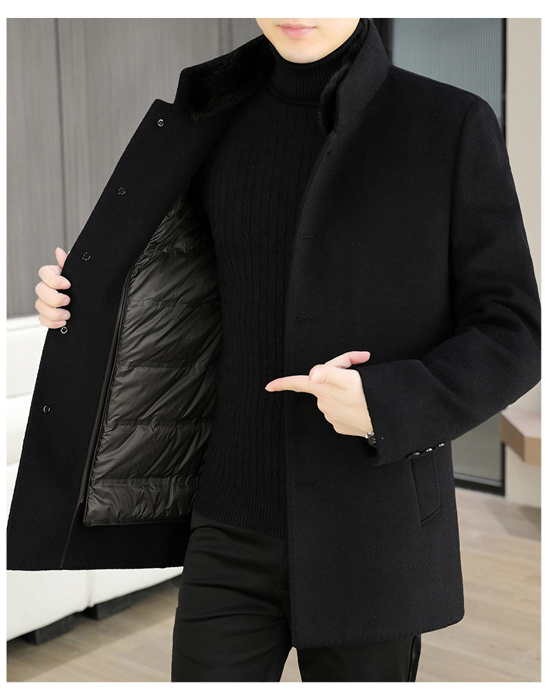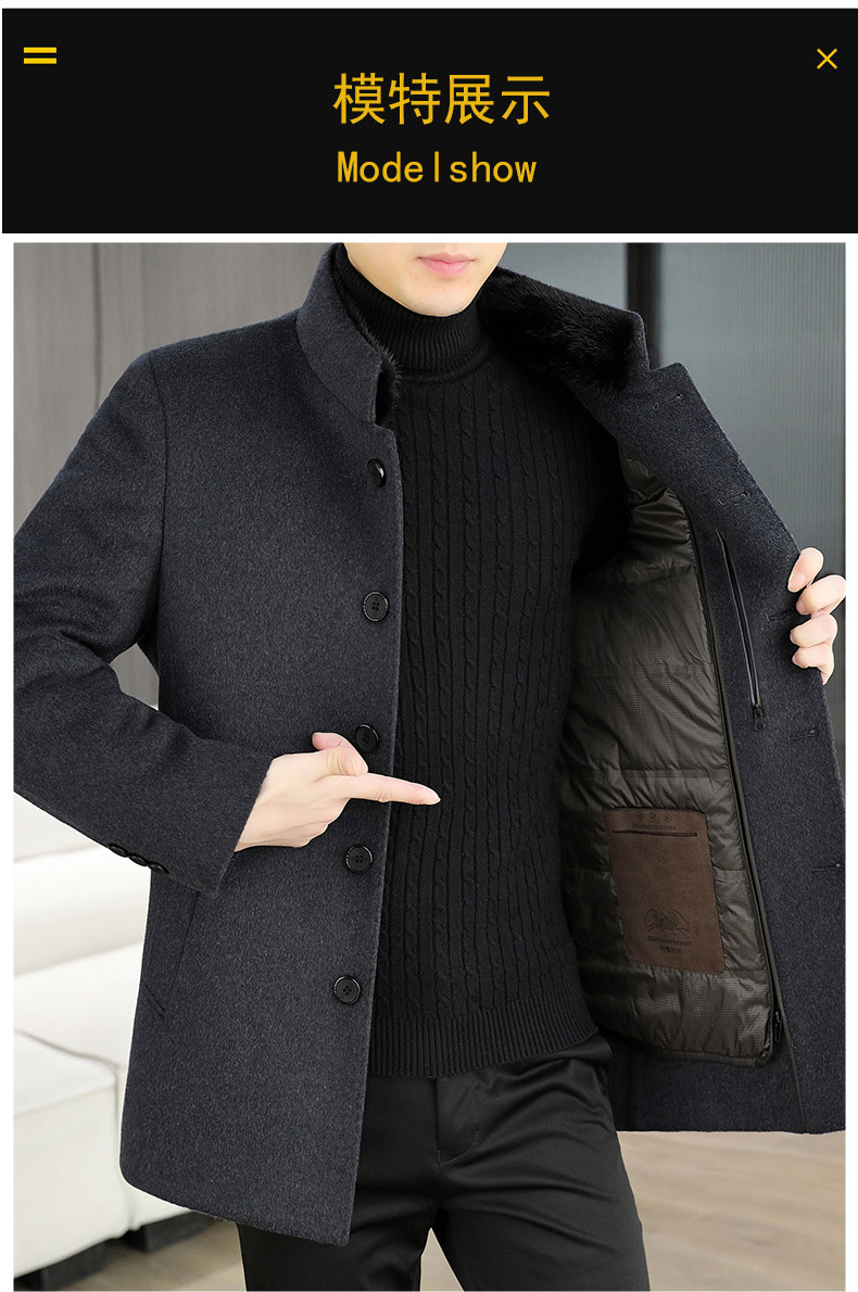 Hengyuanxiang Double-Sided Woolen Coat for Men with Stand Collar and down Lining, Winter Jacket for Middle-Aged and Elderly Fathers, Cashmere Trench Coat