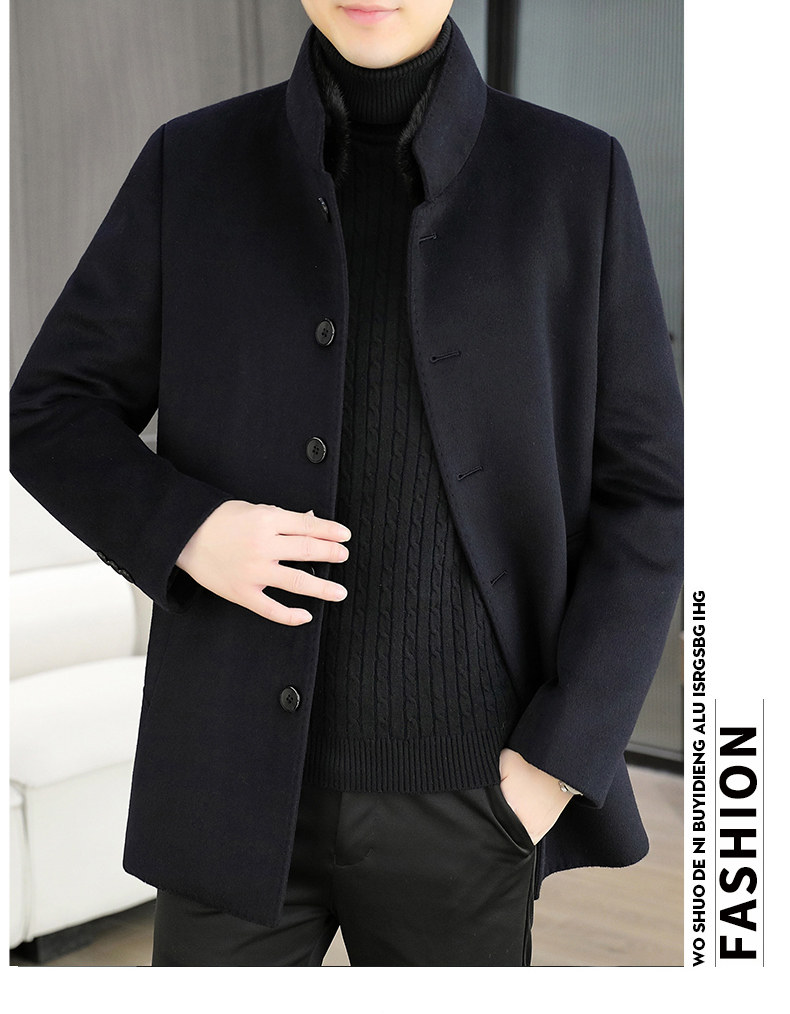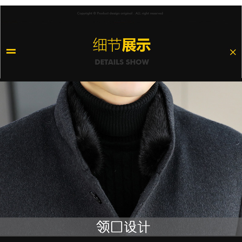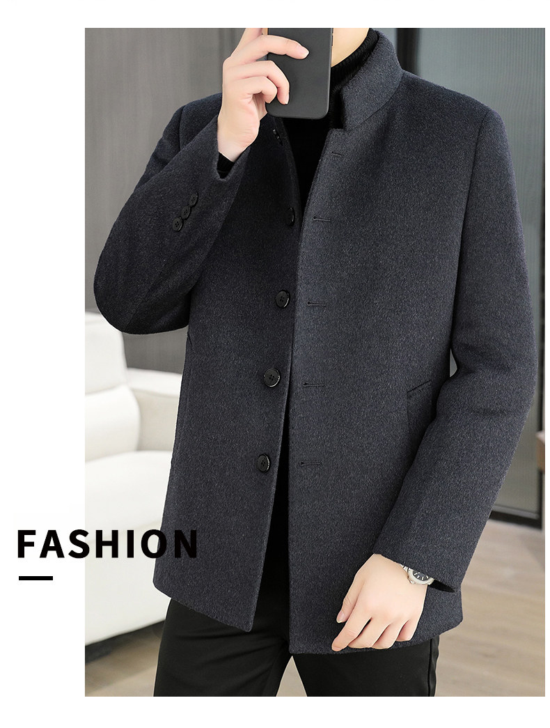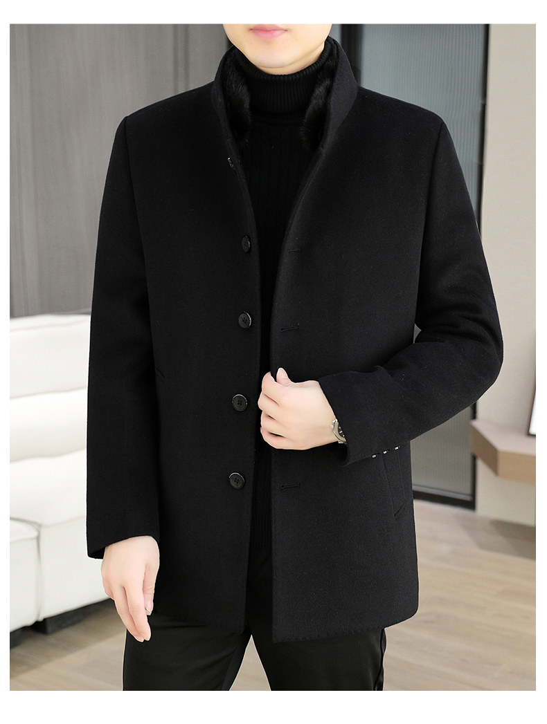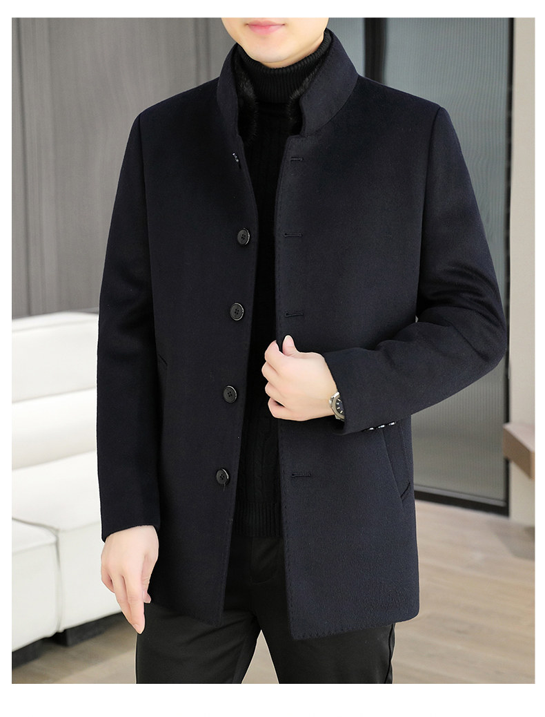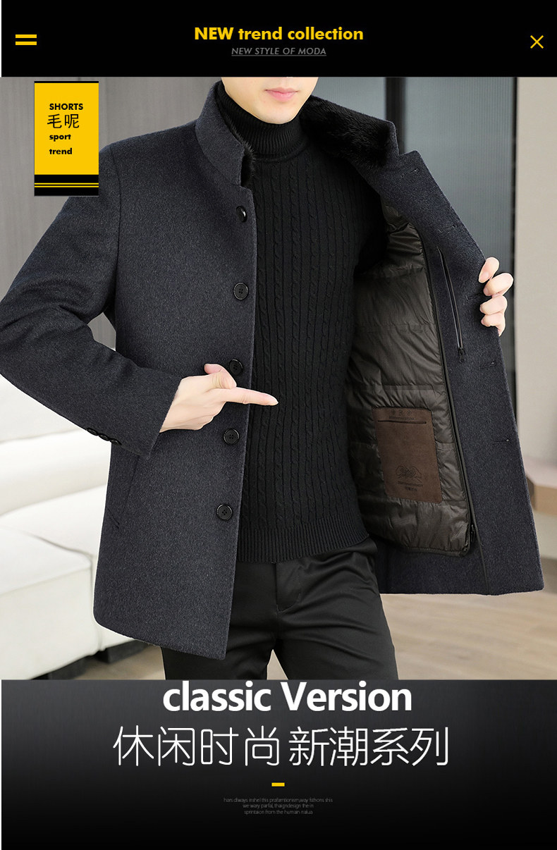 Hengyuanxiang Double-Sided Woolen Coat for Men with Stand Collar and down Lining, Winter Jacket for Middle-Aged and Elderly Fathers, Cashmere Trench Coat