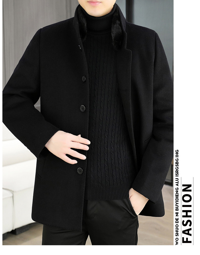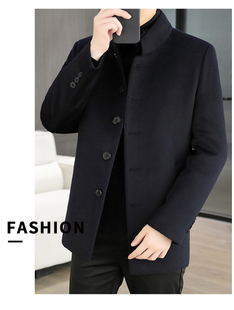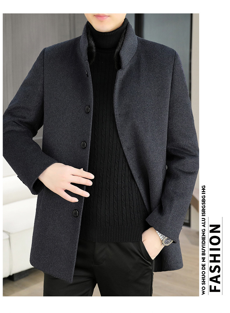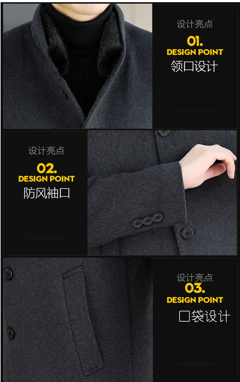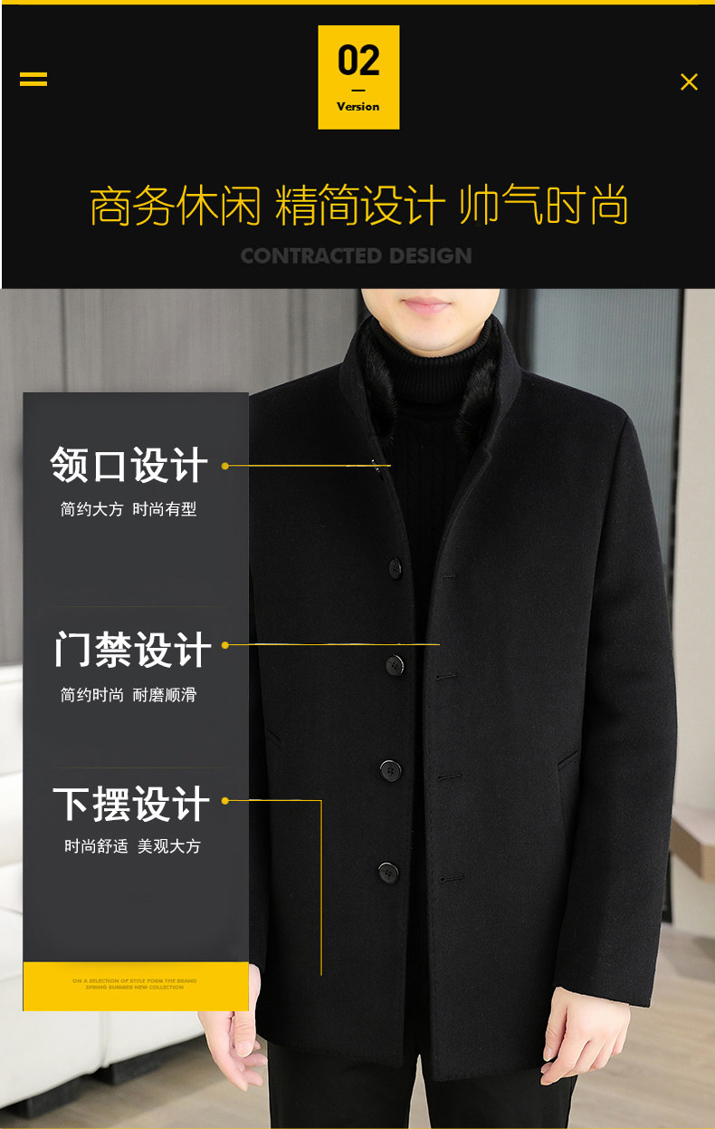 Hengyuanxiang Double-Sided Woolen Coat for Men with Stand Collar and down Lining, Winter Jacket for Middle-Aged and Elderly Fathers, Cashmere Trench Coat