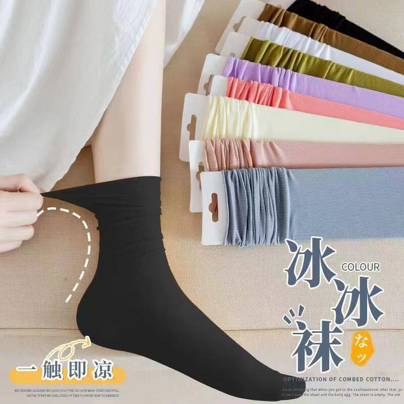 White Ice Silk Socks for Women, Thin Long Socks for Summer, Spring and Autumn