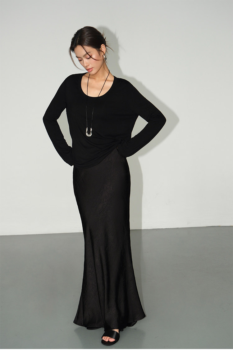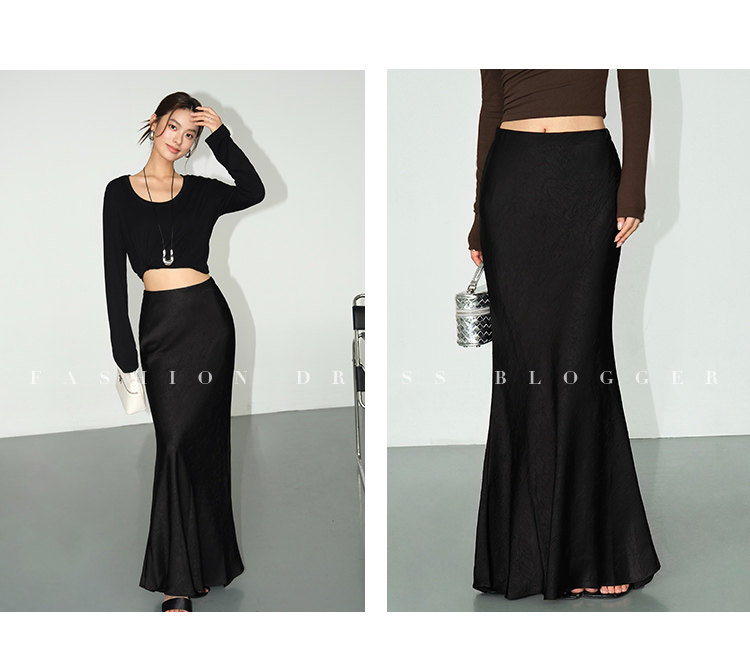Neva Hu Black Designer Satin Skirt for Women, Slim Fit, High Waist, Elegant, Bodycon Fishtail Skirt, Long Style
