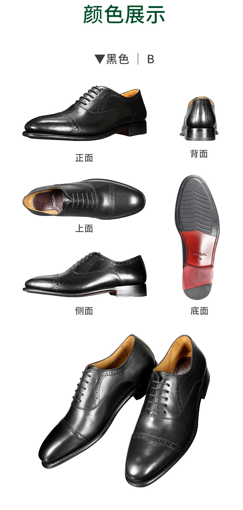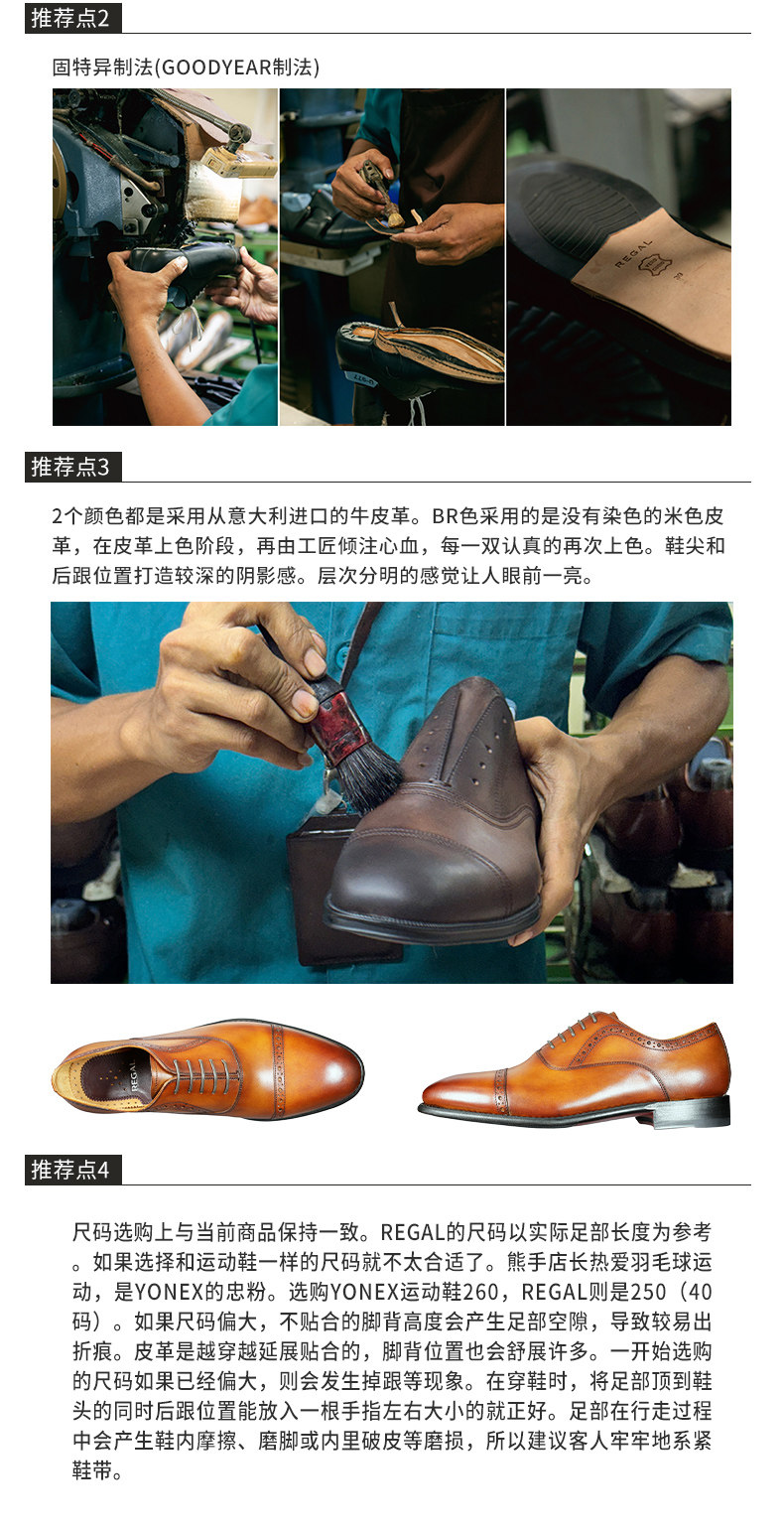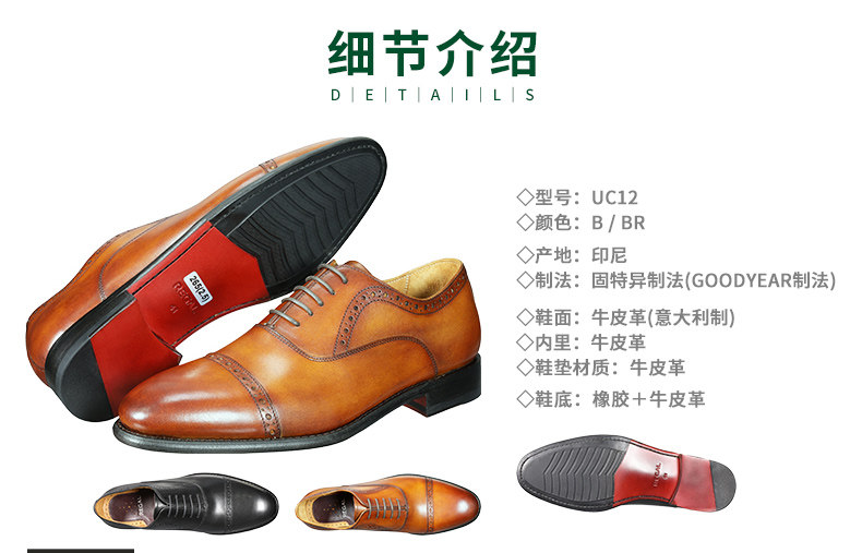 Regal Uc12 Italian Leather Hand-Painted Leather-Soled Men's Brogue Oxford Shoes Uc Series