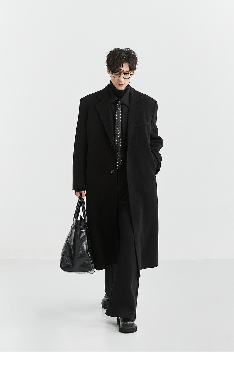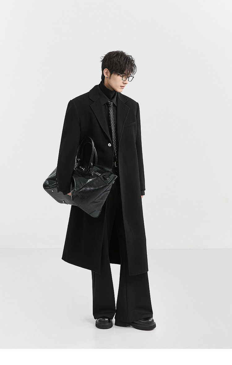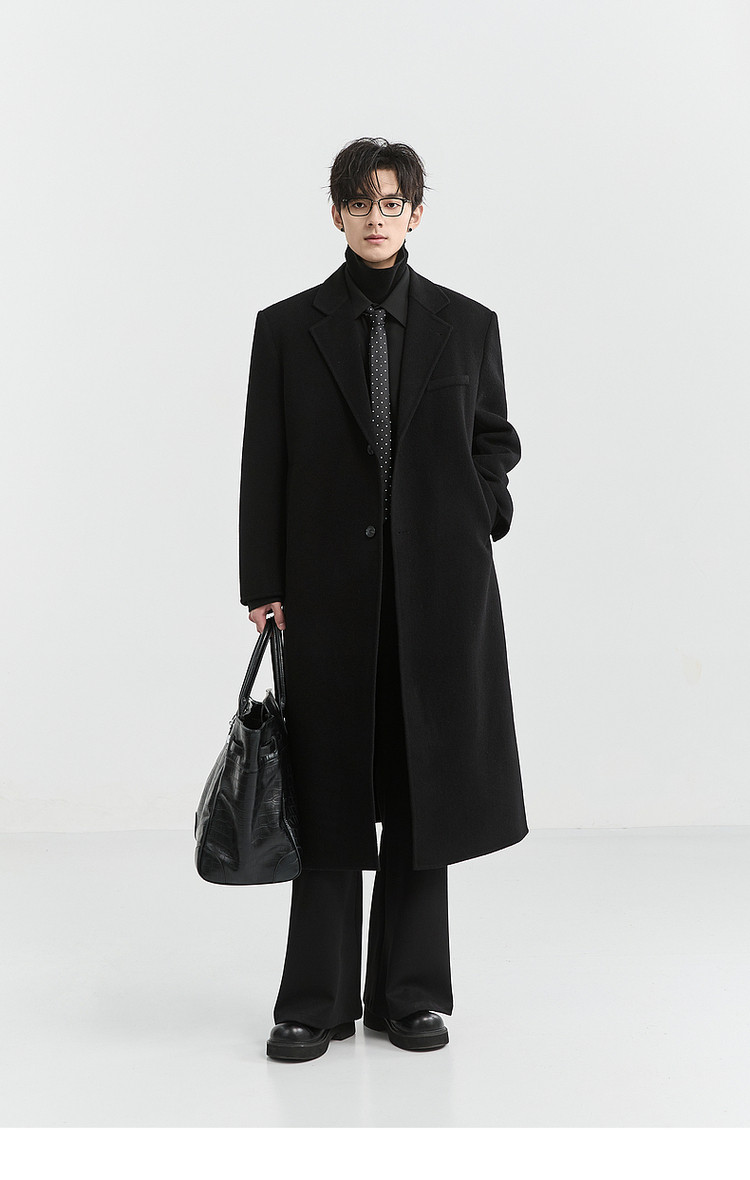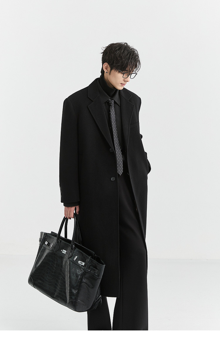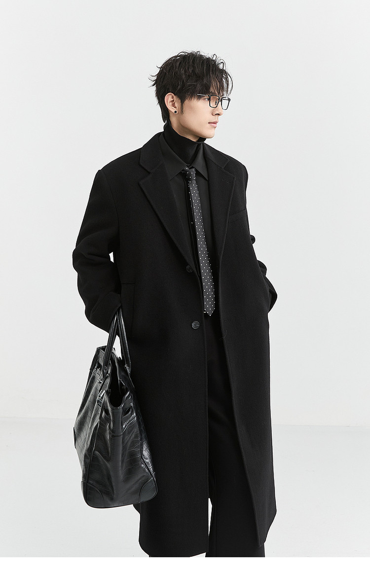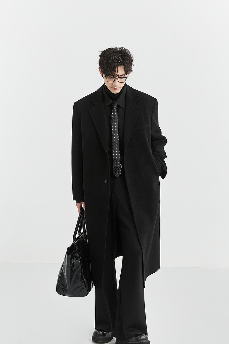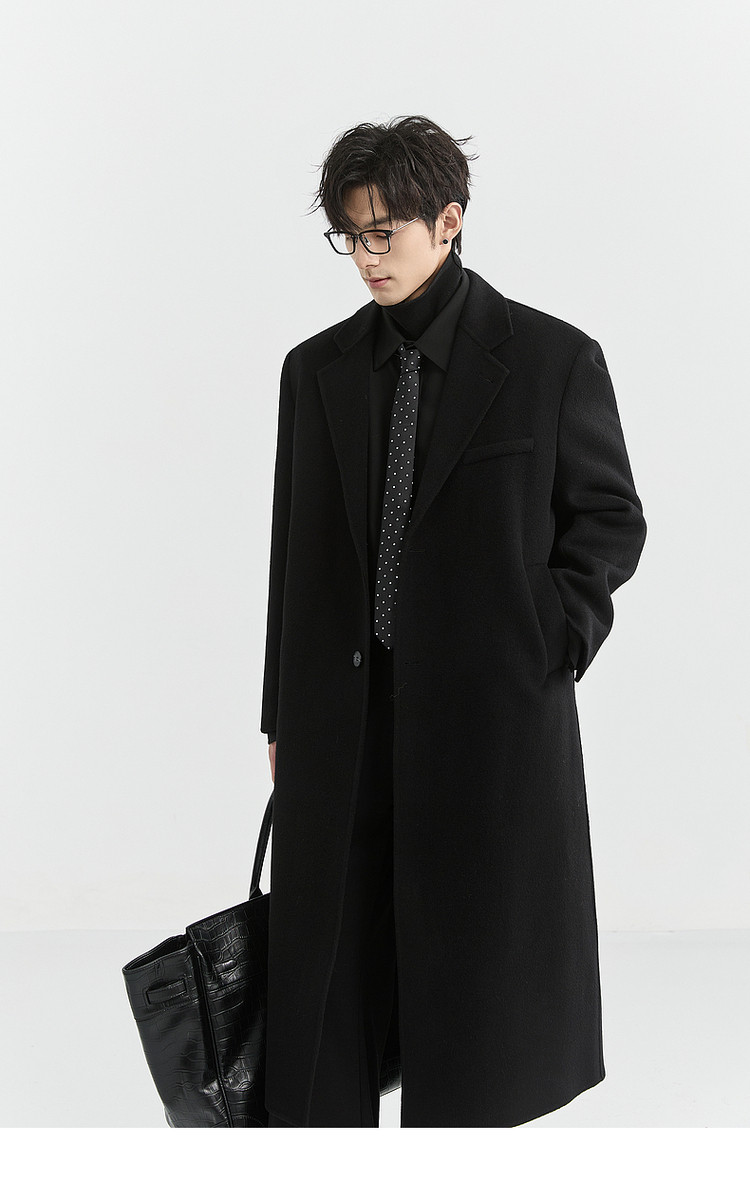 All Wool/Down Lining/Over-The-Knee Extra-Long Bjze Winter High-End Double-Sided Woolen Men's Coat with Shoulder Pads