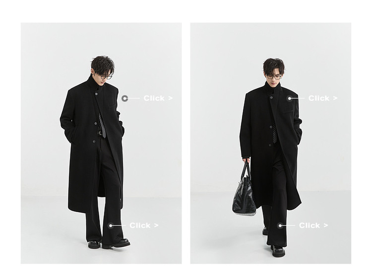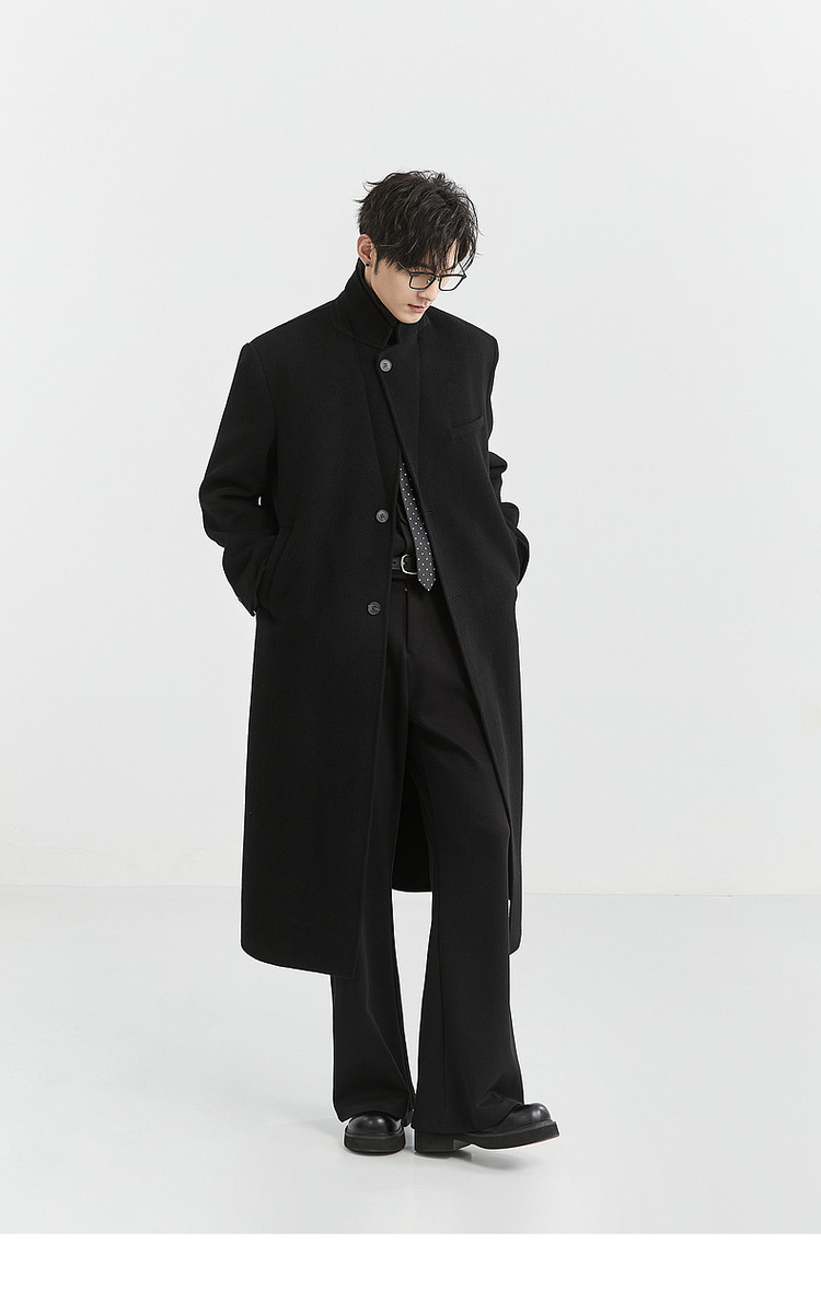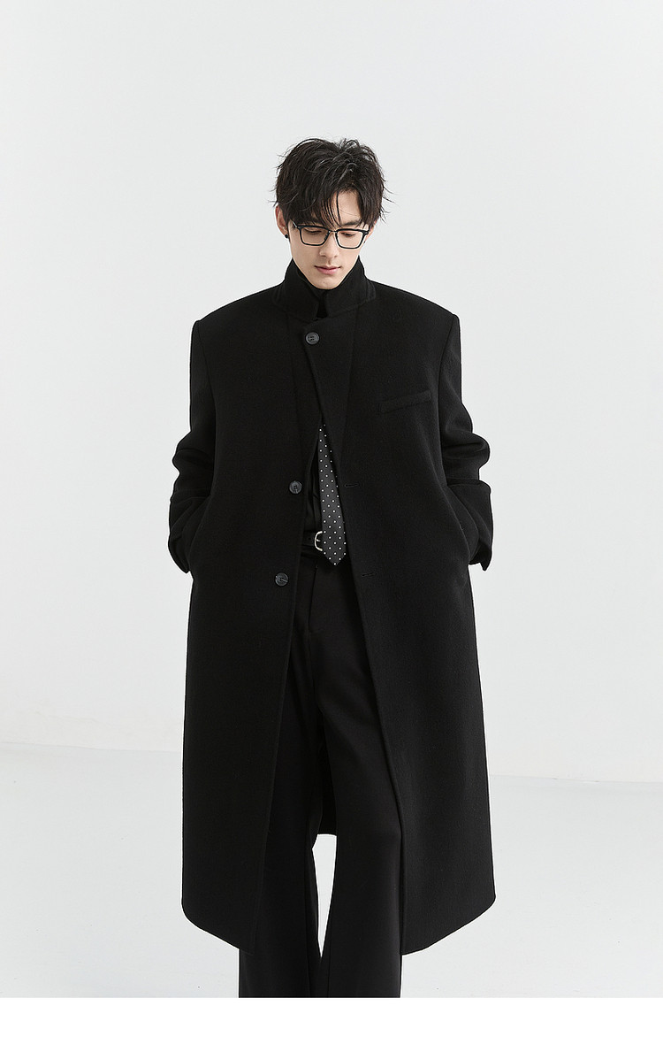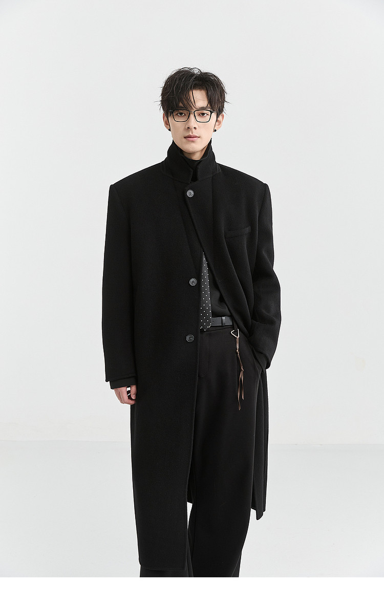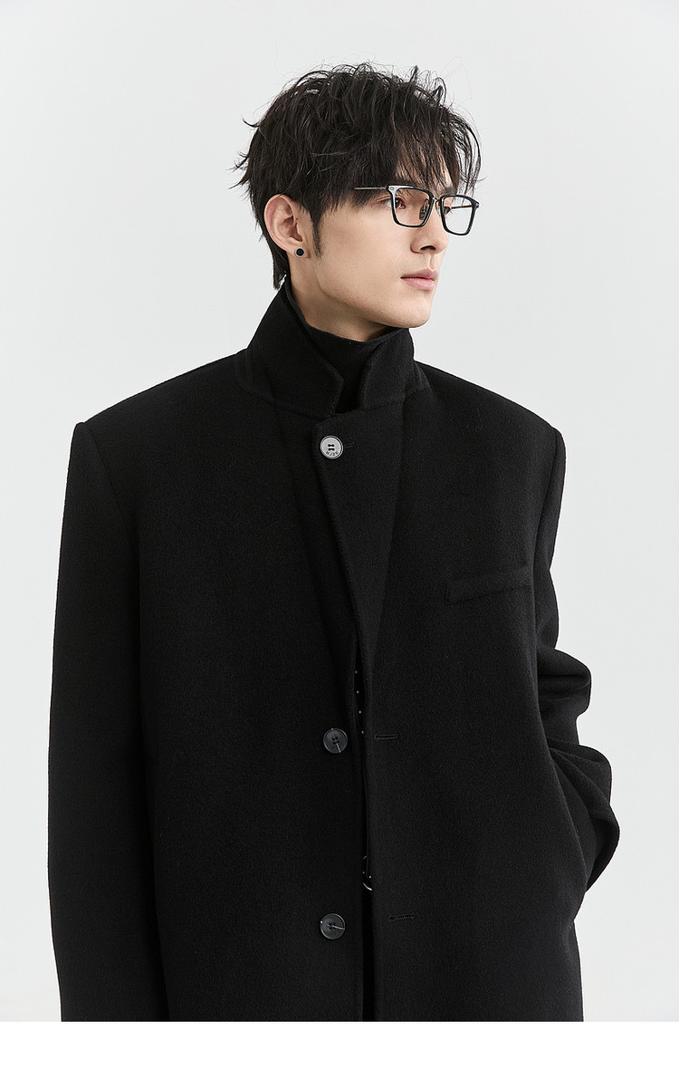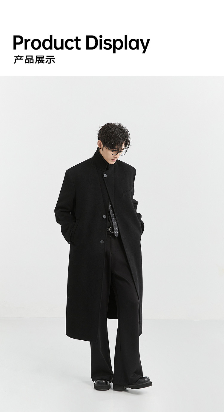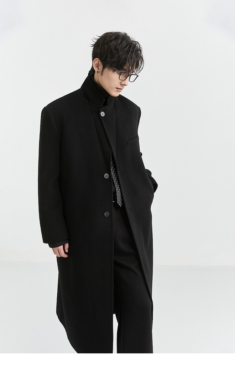 All Wool/Down Lining/Over-The-Knee Extra-Long Bjze Winter High-End Double-Sided Woolen Men's Coat with Shoulder Pads