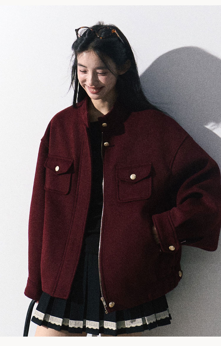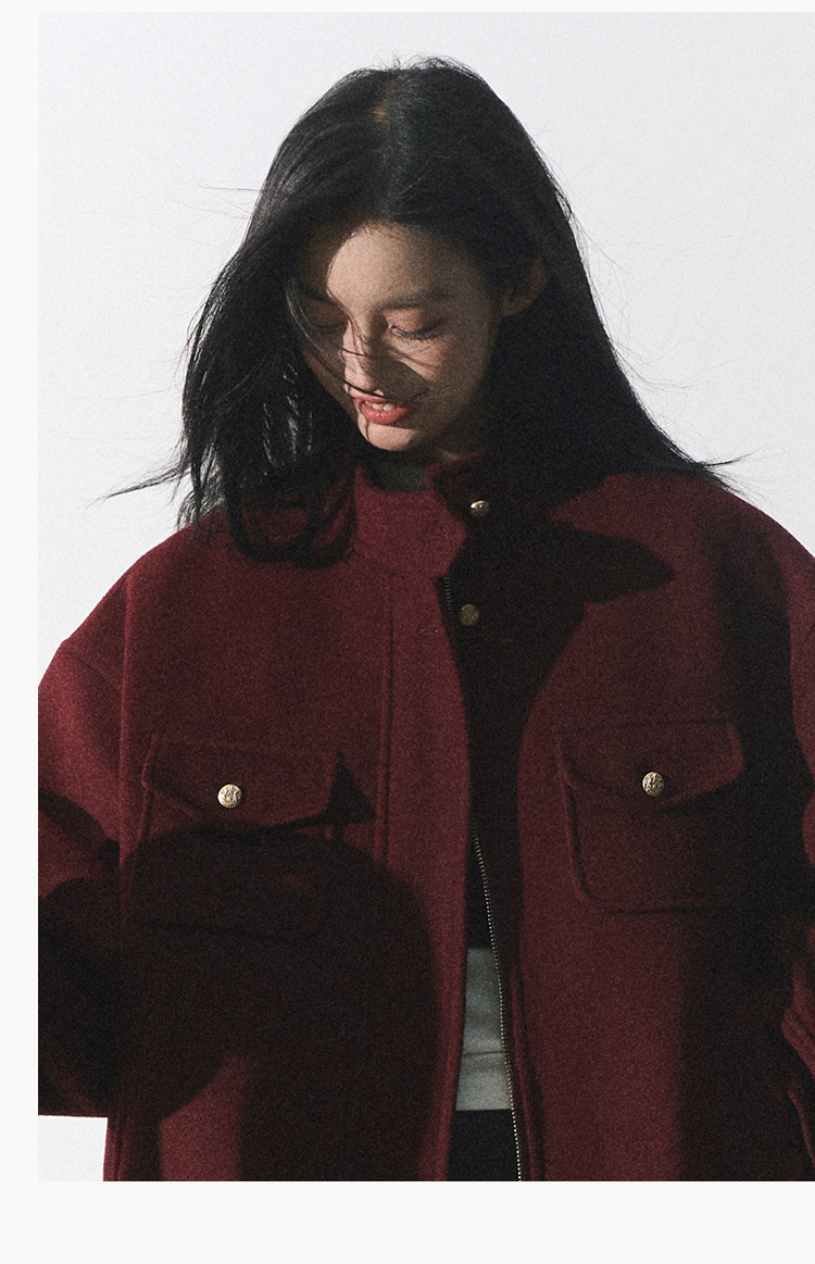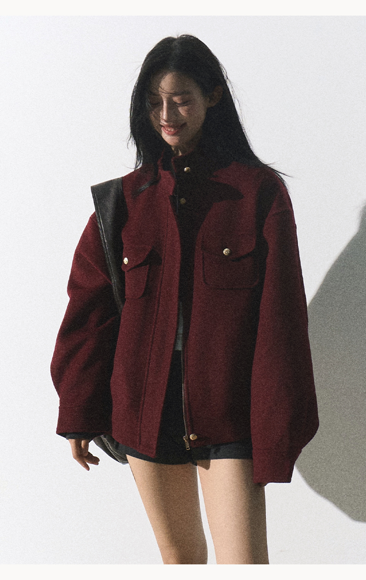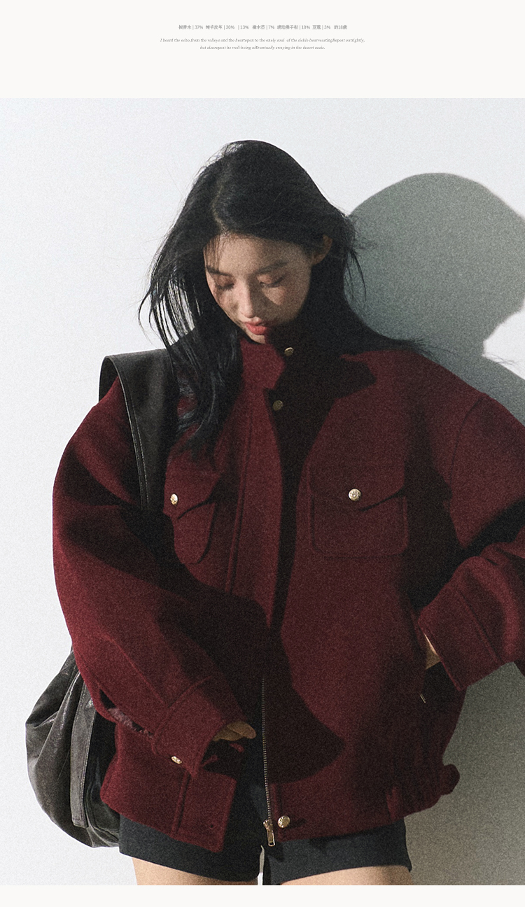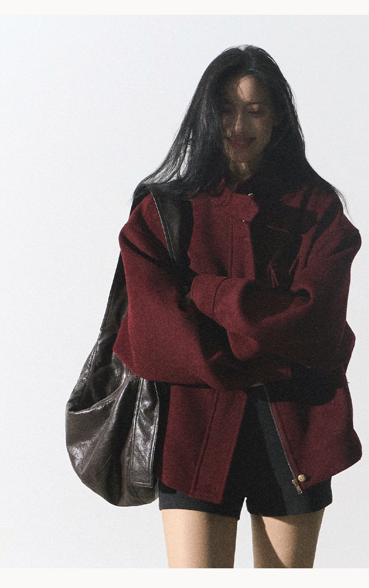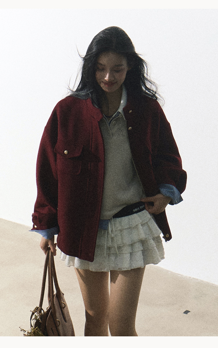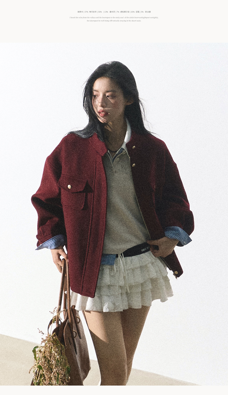 Oakmoo/ "Hua Mei Feeling" Ancora Red 50% Wool Short Coat for Women 2025 Autumn/Winter Loose Woolen Jacket