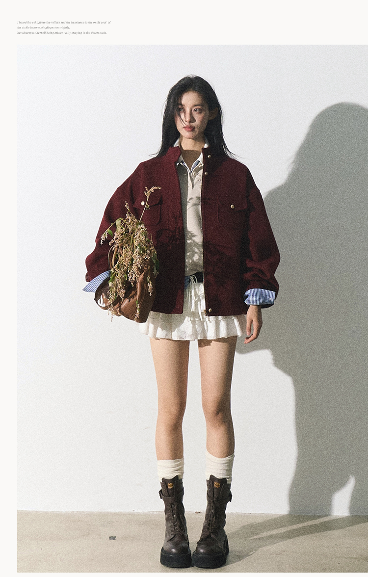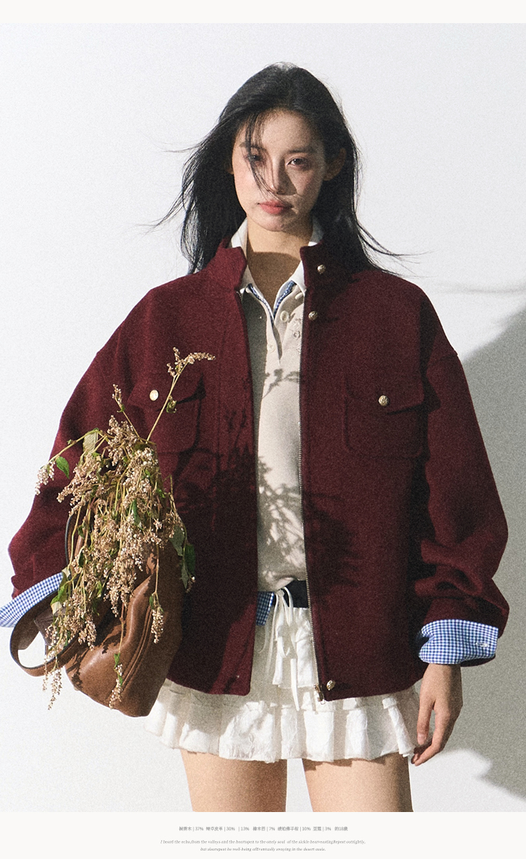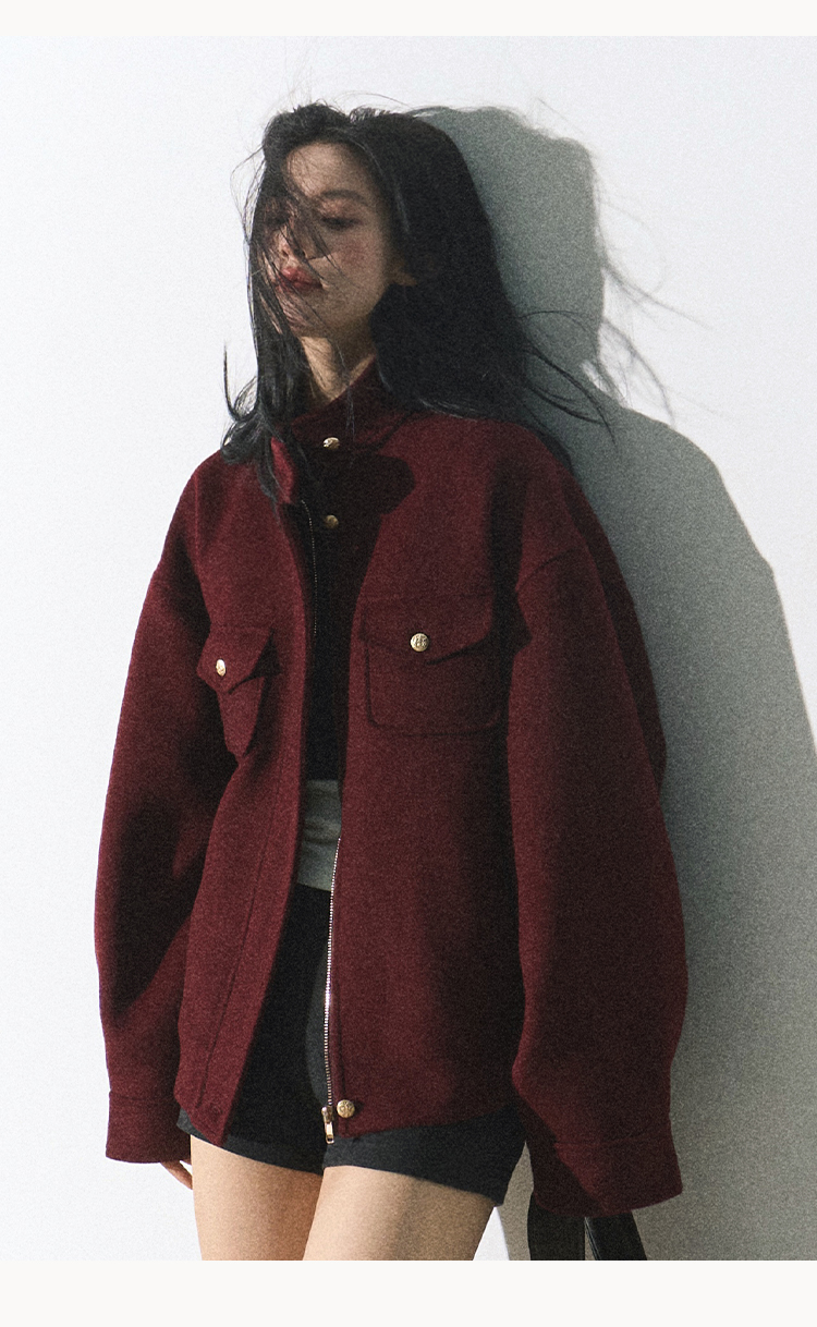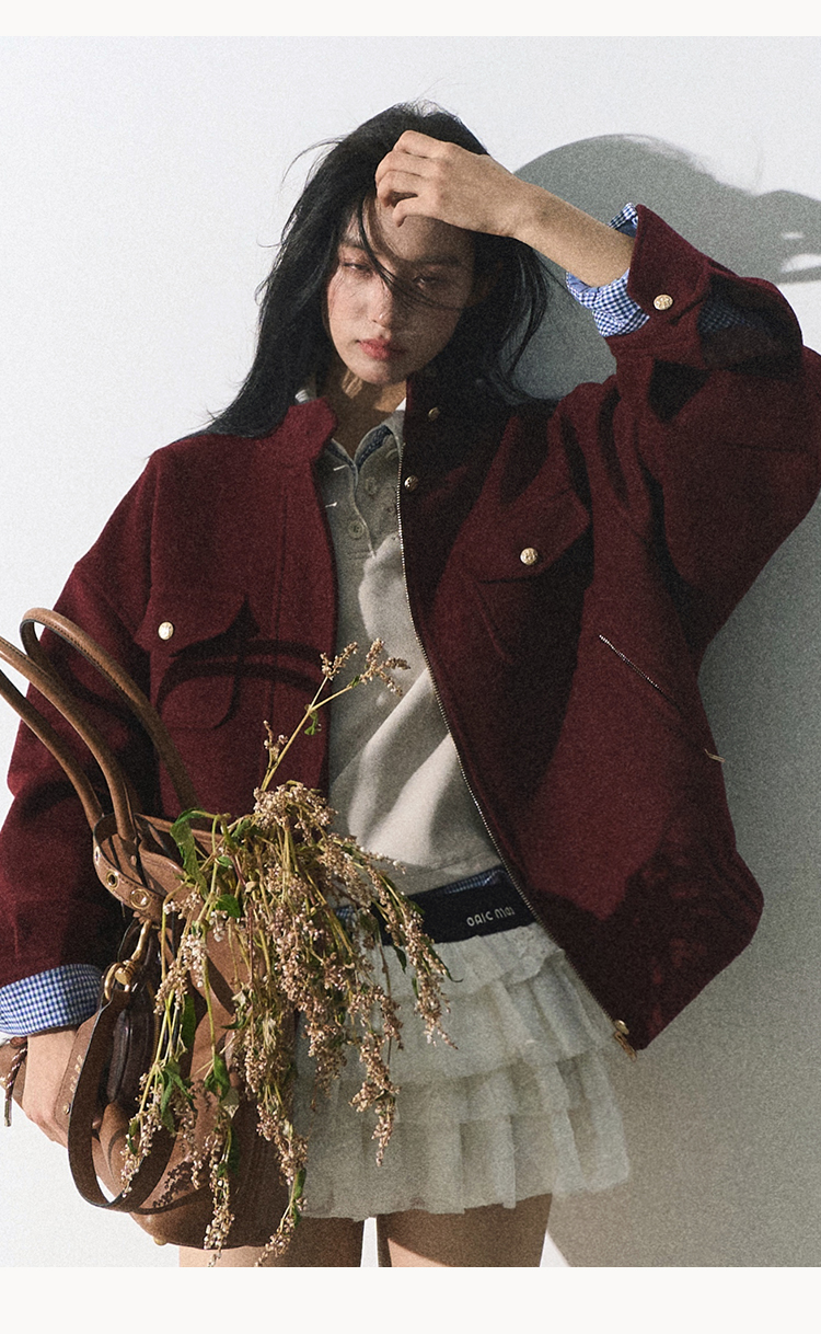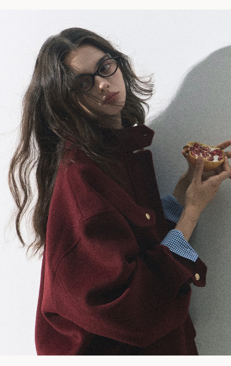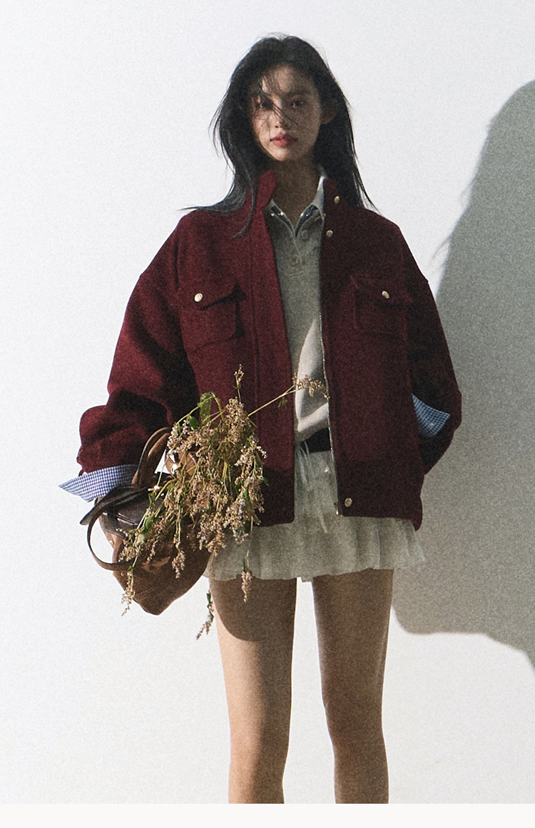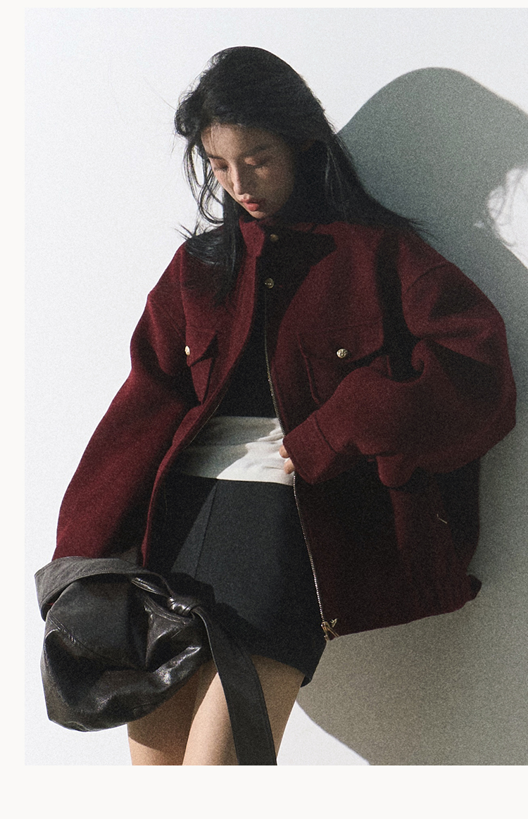 Oakmoo/ "Hua Mei Feeling" Ancora Red 50% Wool Short Coat for Women 2025 Autumn/Winter Loose Woolen Jacket
