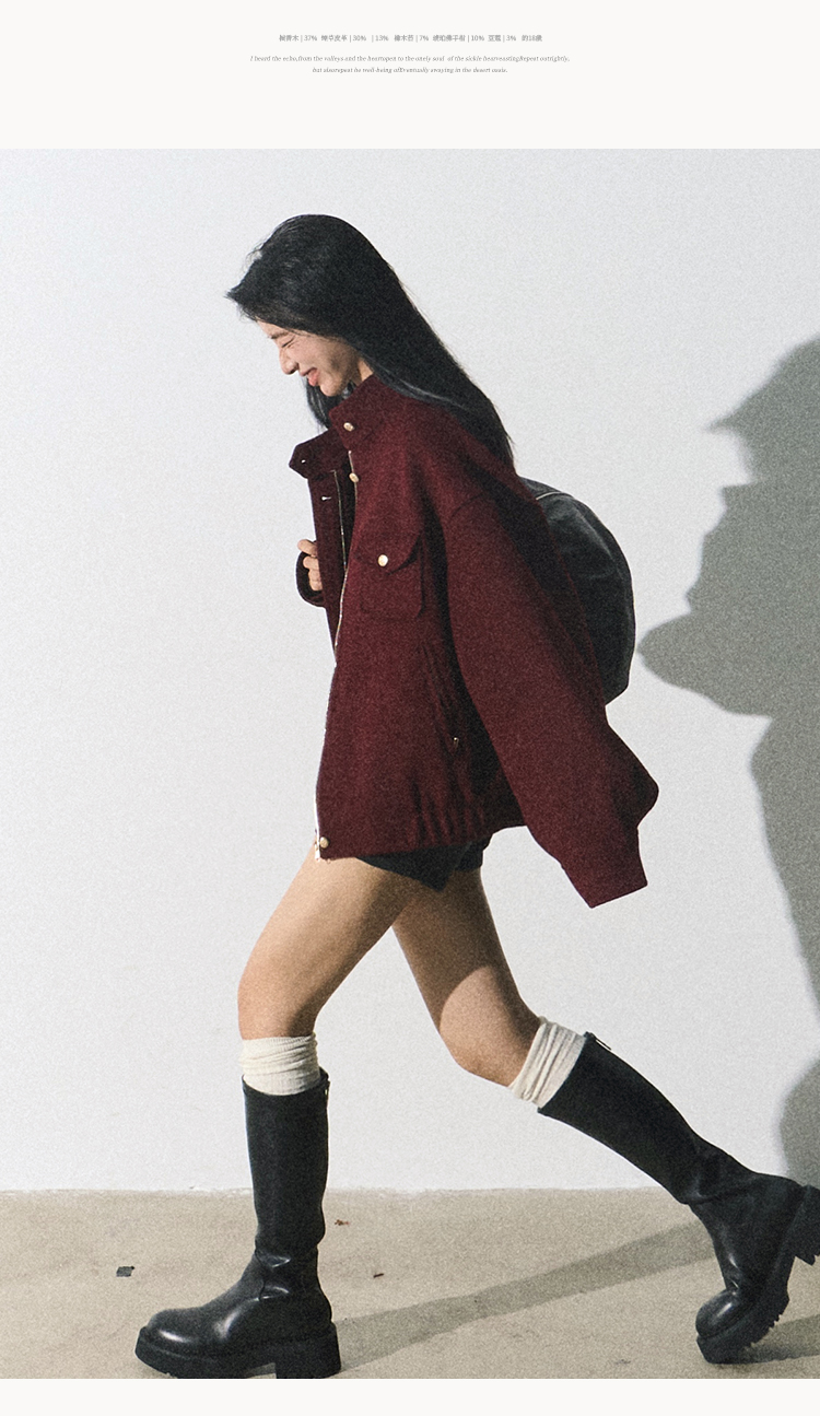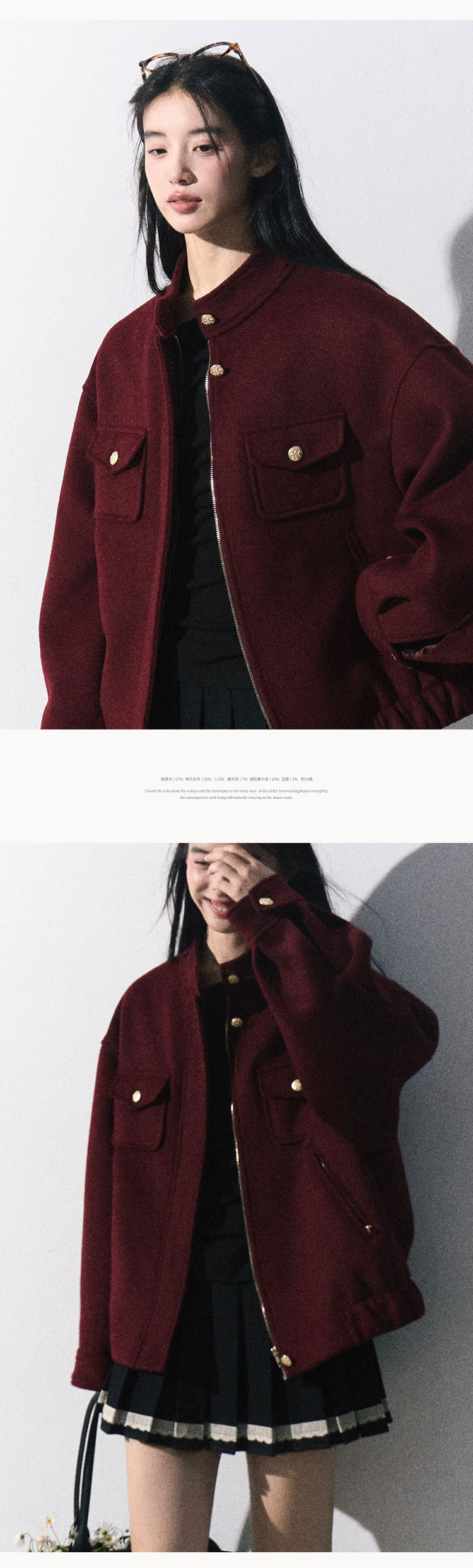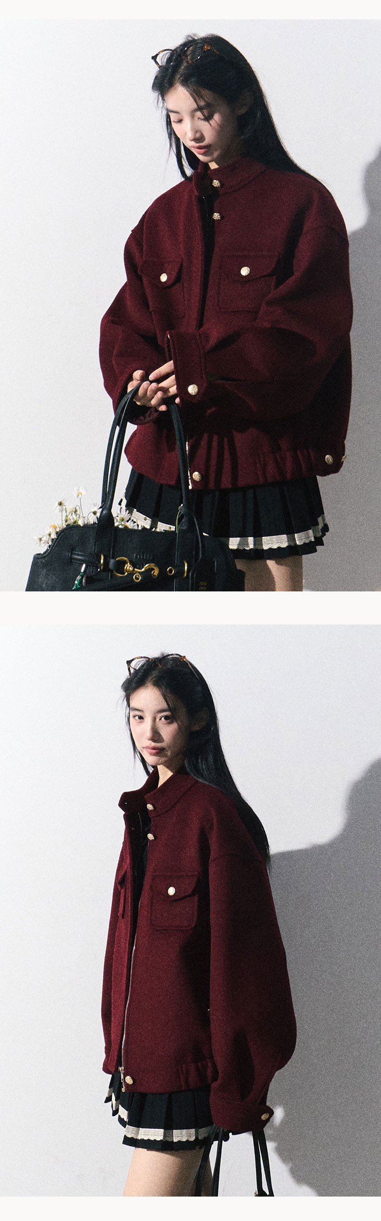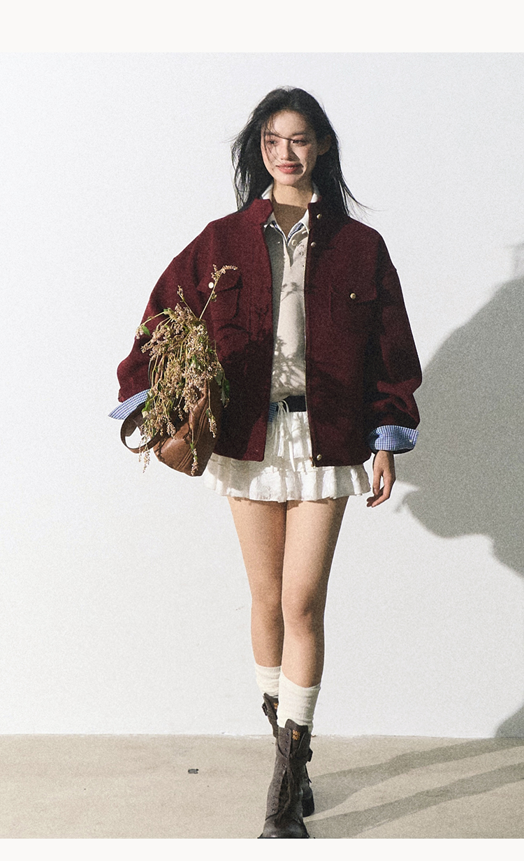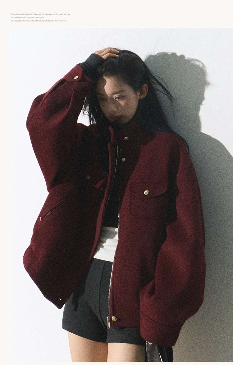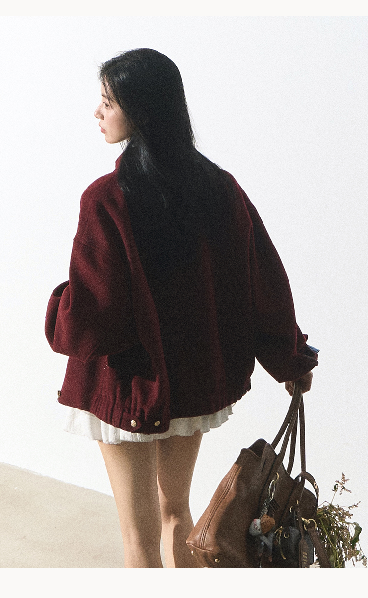 Oakmoo/ "Hua Mei Feeling" Ancora Red 50% Wool Short Coat for Women 2025 Autumn/Winter Loose Woolen Jacket