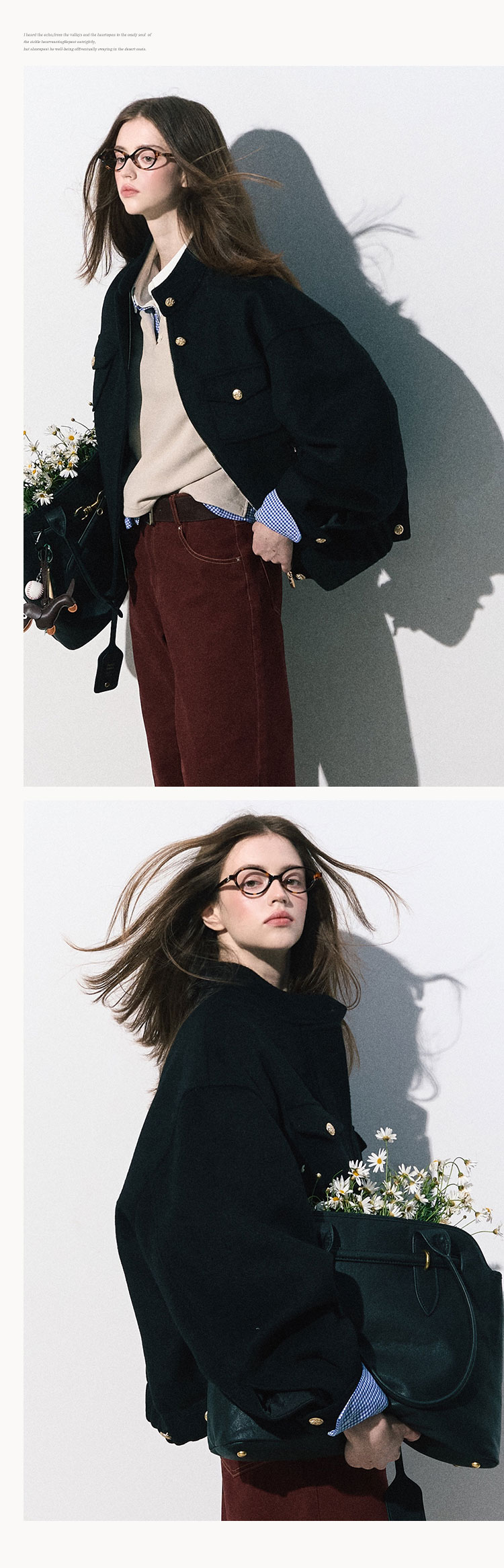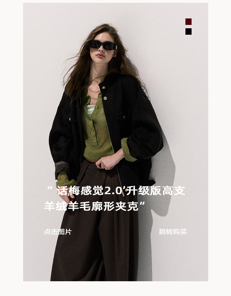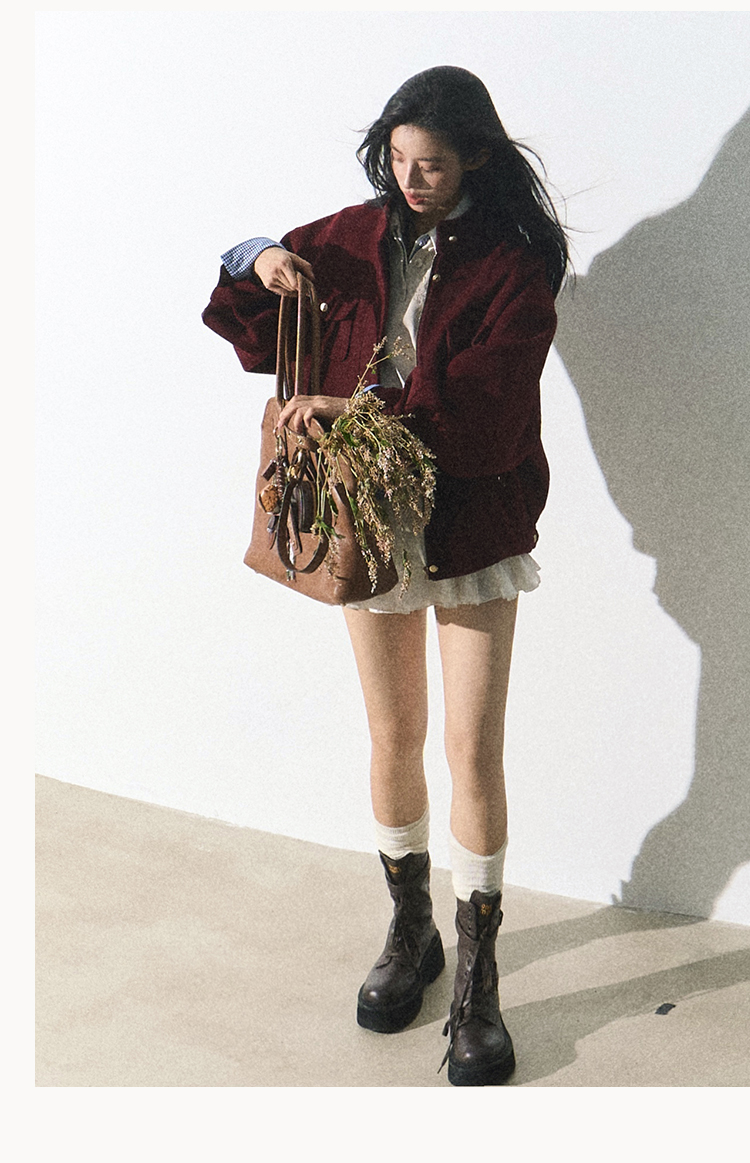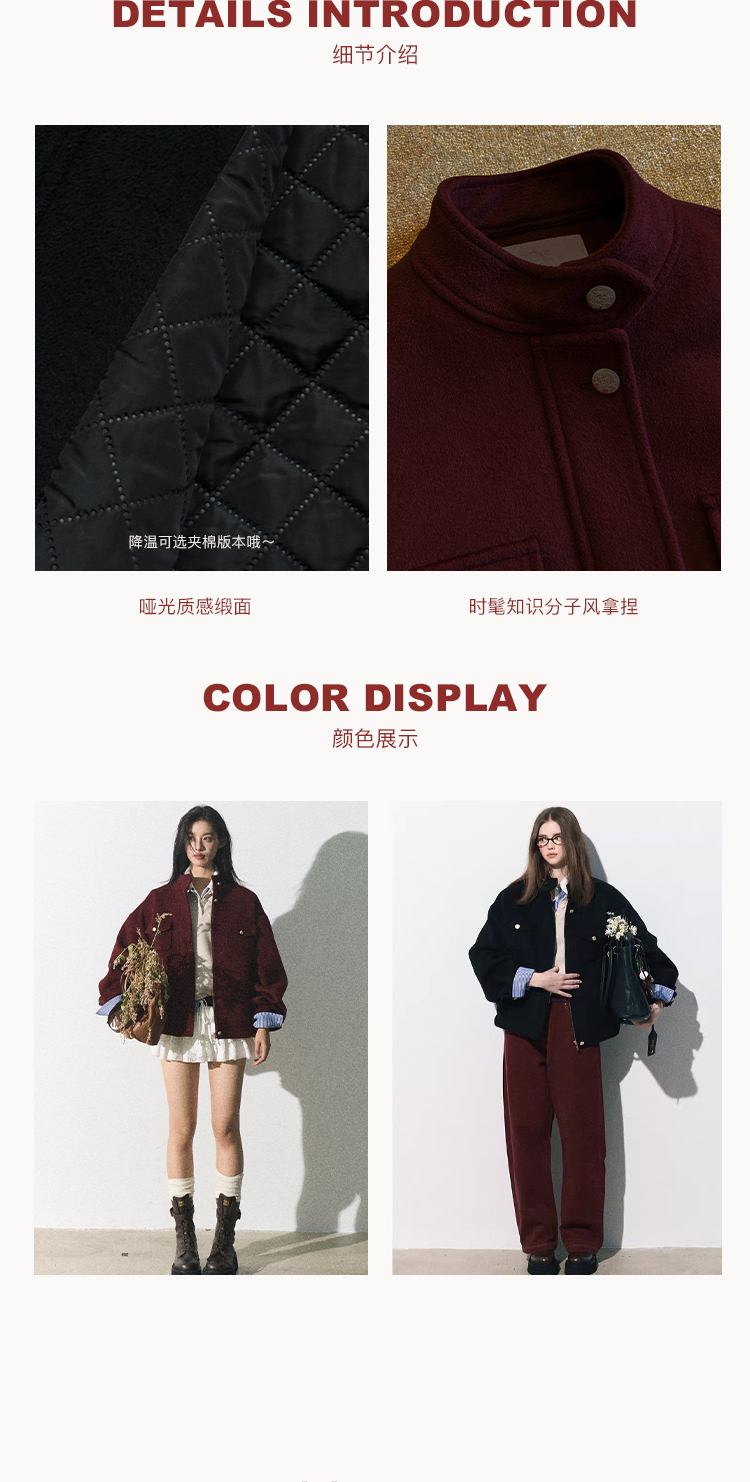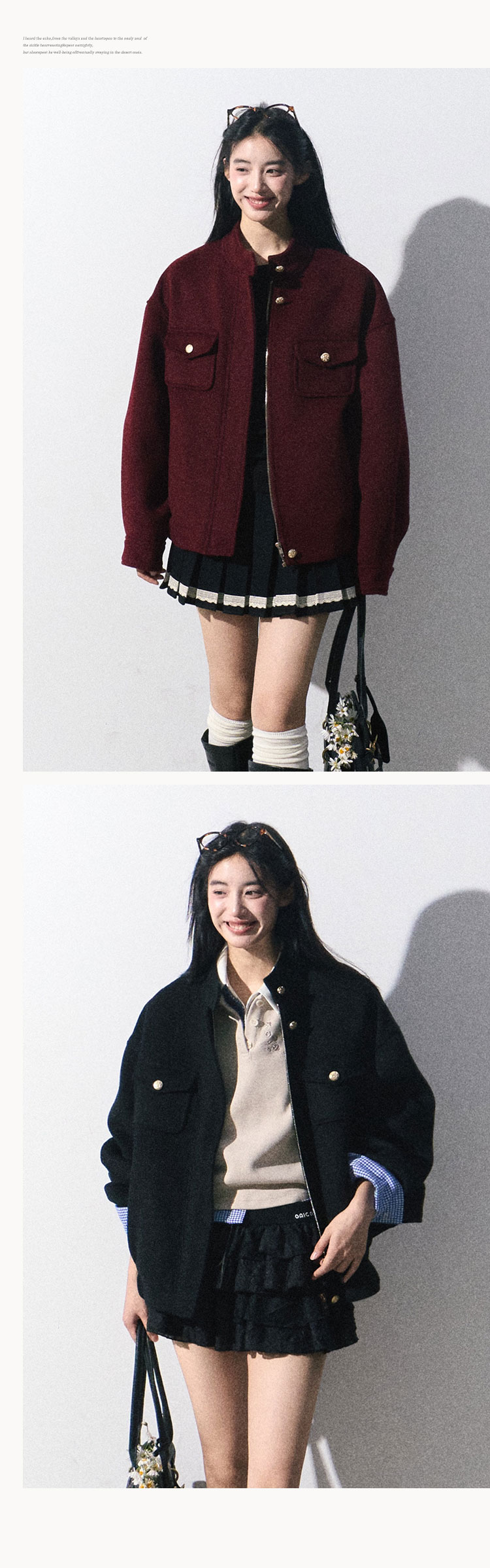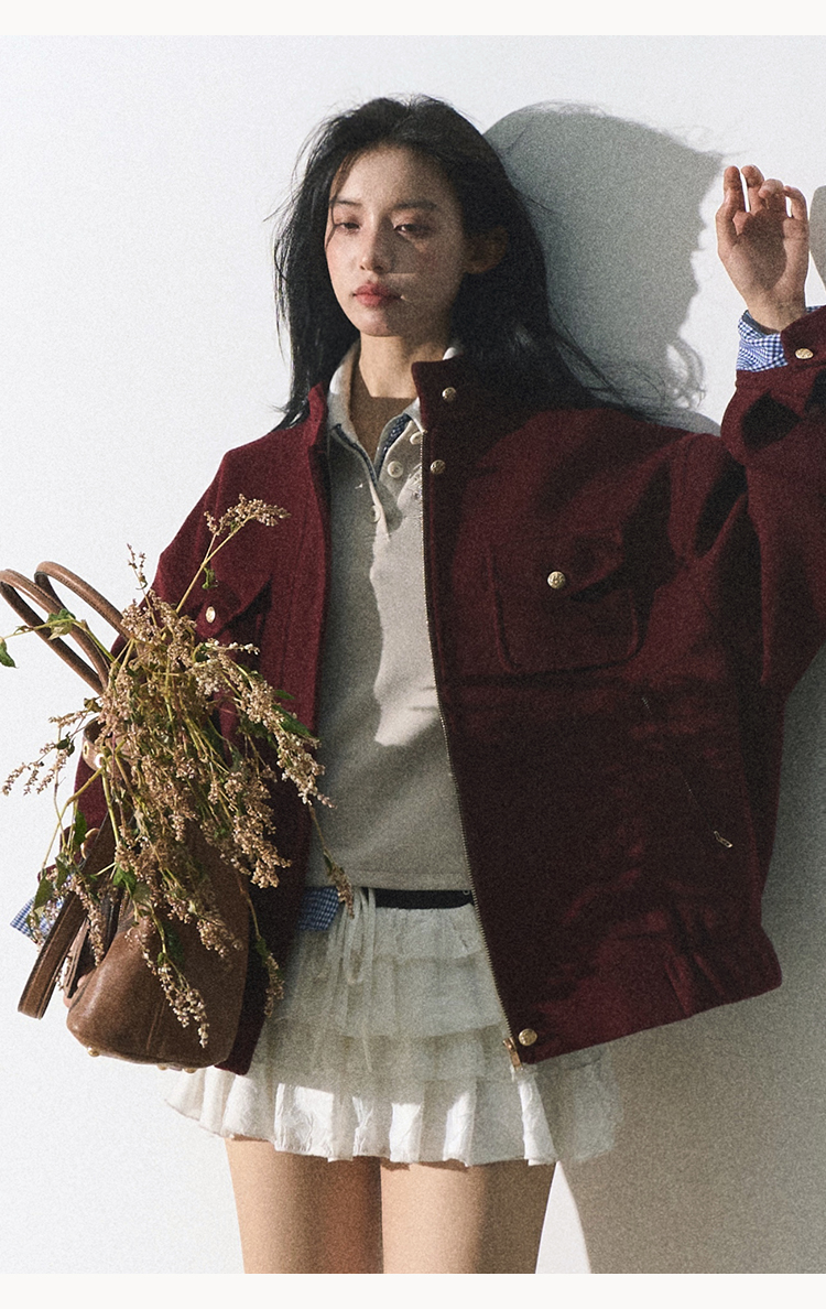Oakmoo/ "Hua Mei Feeling" Ancora Red 50% Wool Short Coat for Women 2025 Autumn/Winter Loose Woolen Jacket