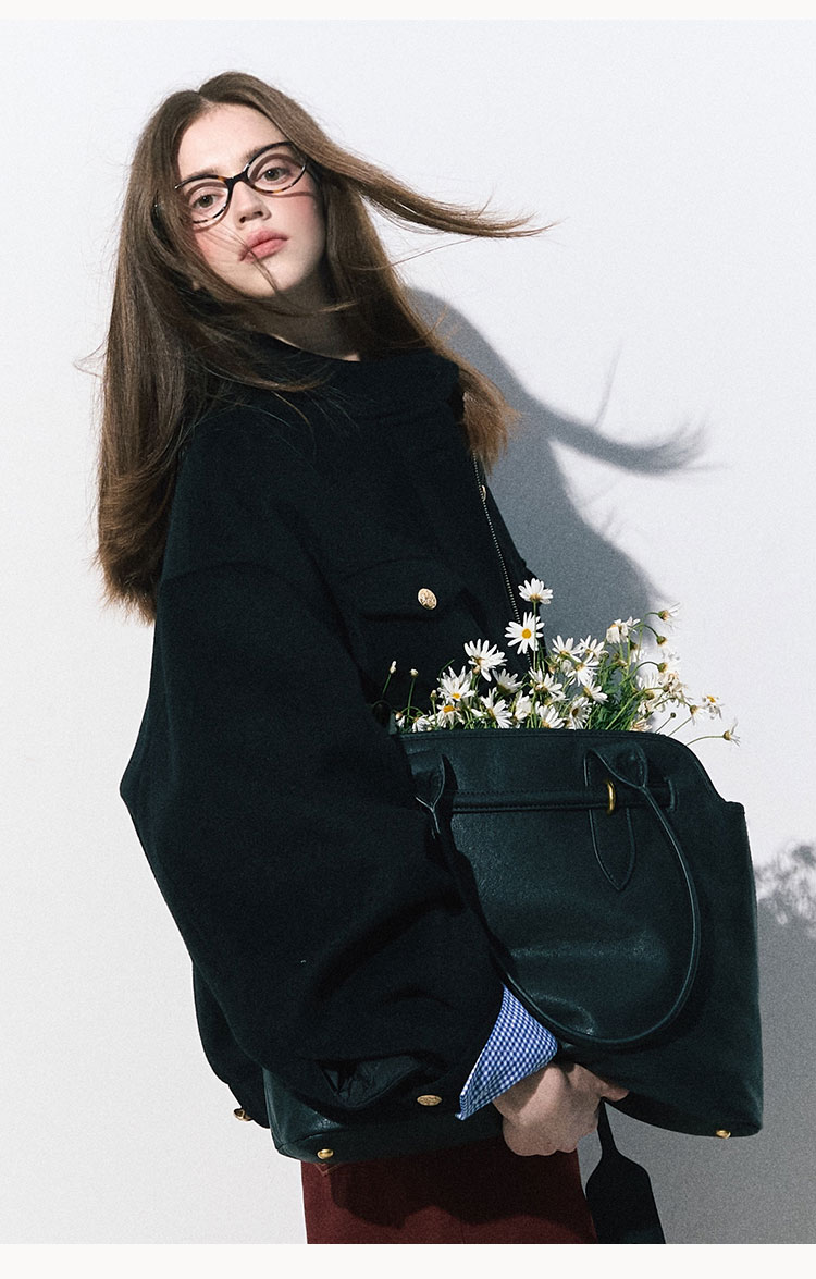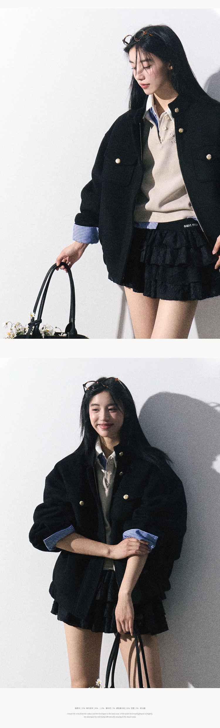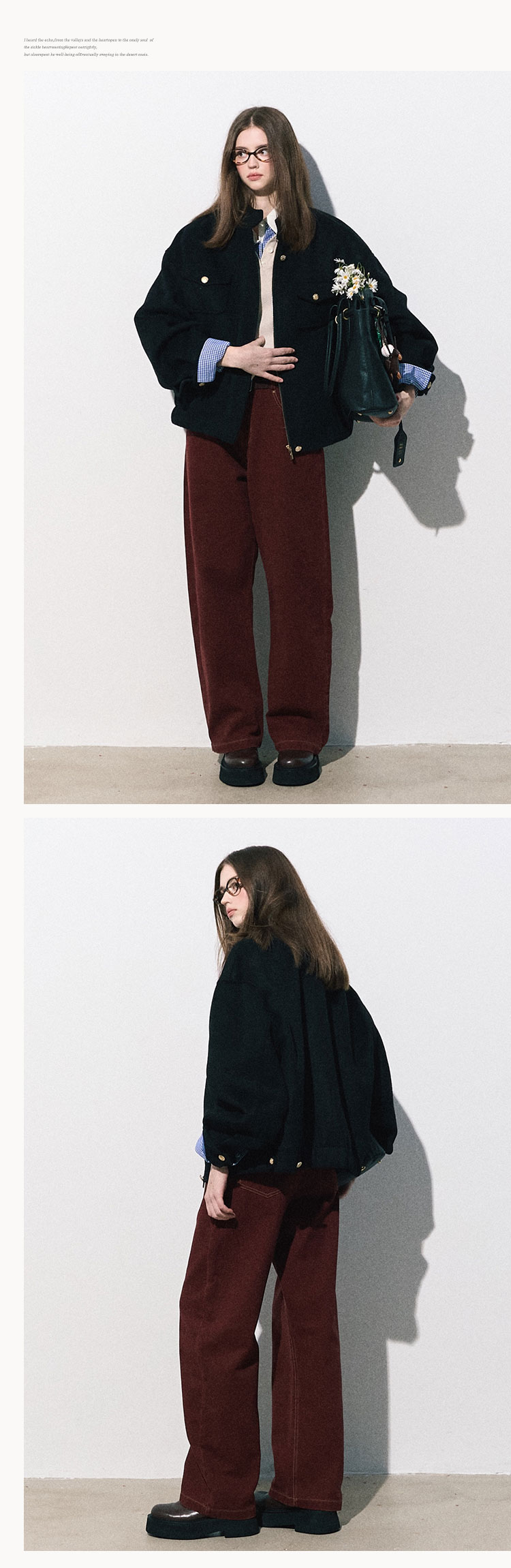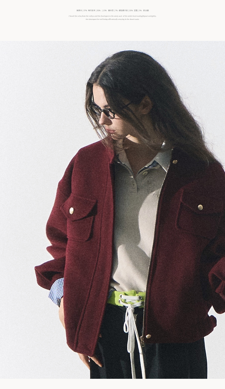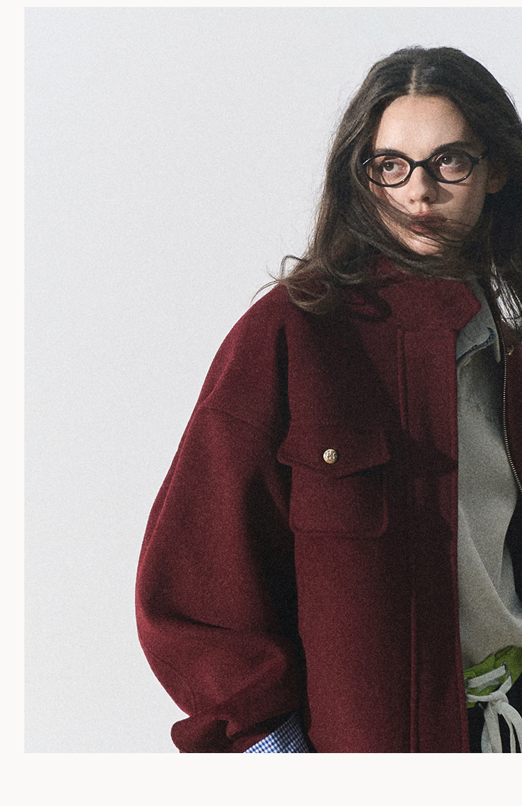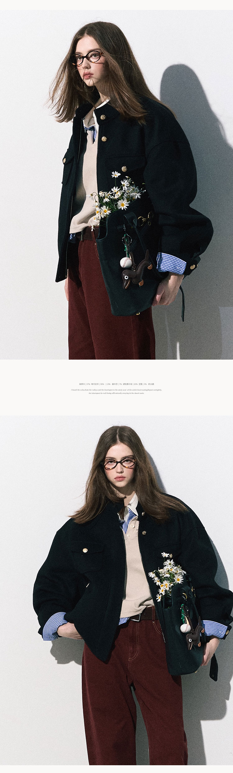 Oakmoo/ "Hua Mei Feeling" Ancora Red 50% Wool Short Coat for Women 2025 Autumn/Winter Loose Woolen Jacket