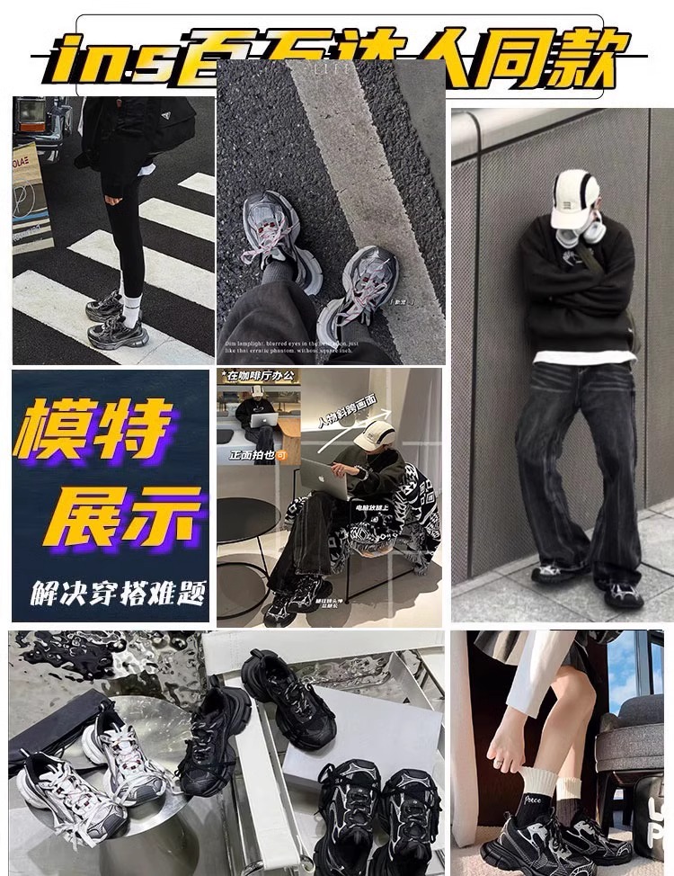 Lace-Up Distressed Paris 3XL Dad Shoes, Ninth Generation, Unisex, 2025 New Model, Outdoor Casual Height-Increasing Thick-Soled Trendy Shoes