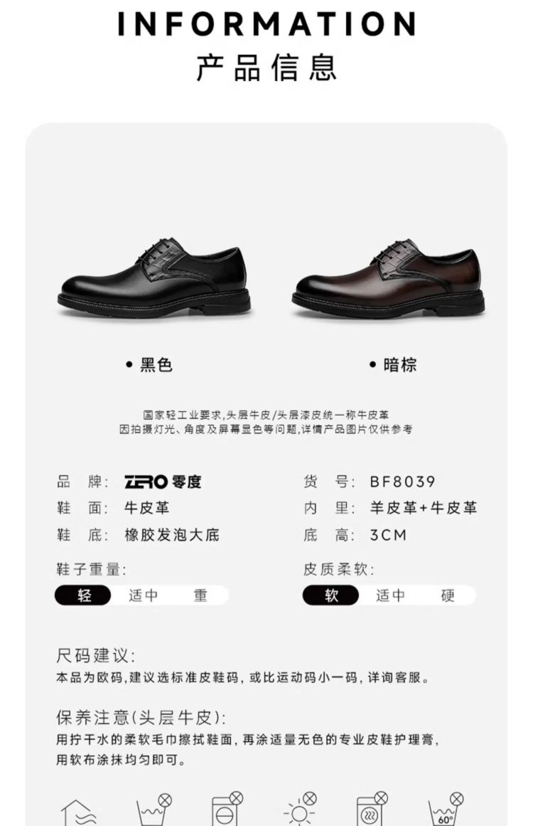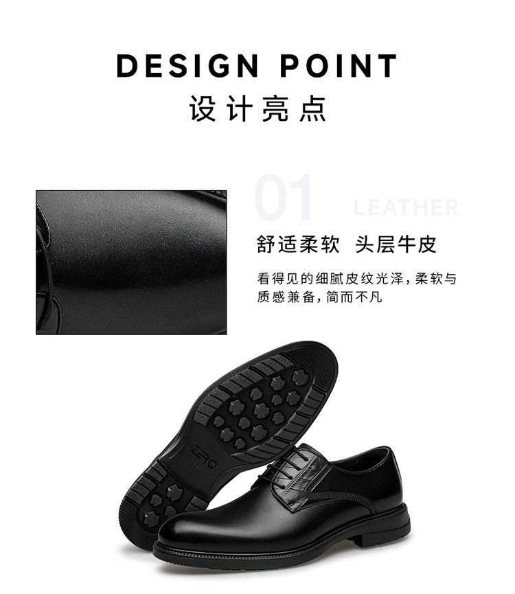 Zro Zero-Degree Leather Shoes Men's Lightweight Genuine Leather Men's Shoes Business Formal Derby Shoes Men's Wedding Shoes Commuting Shoes