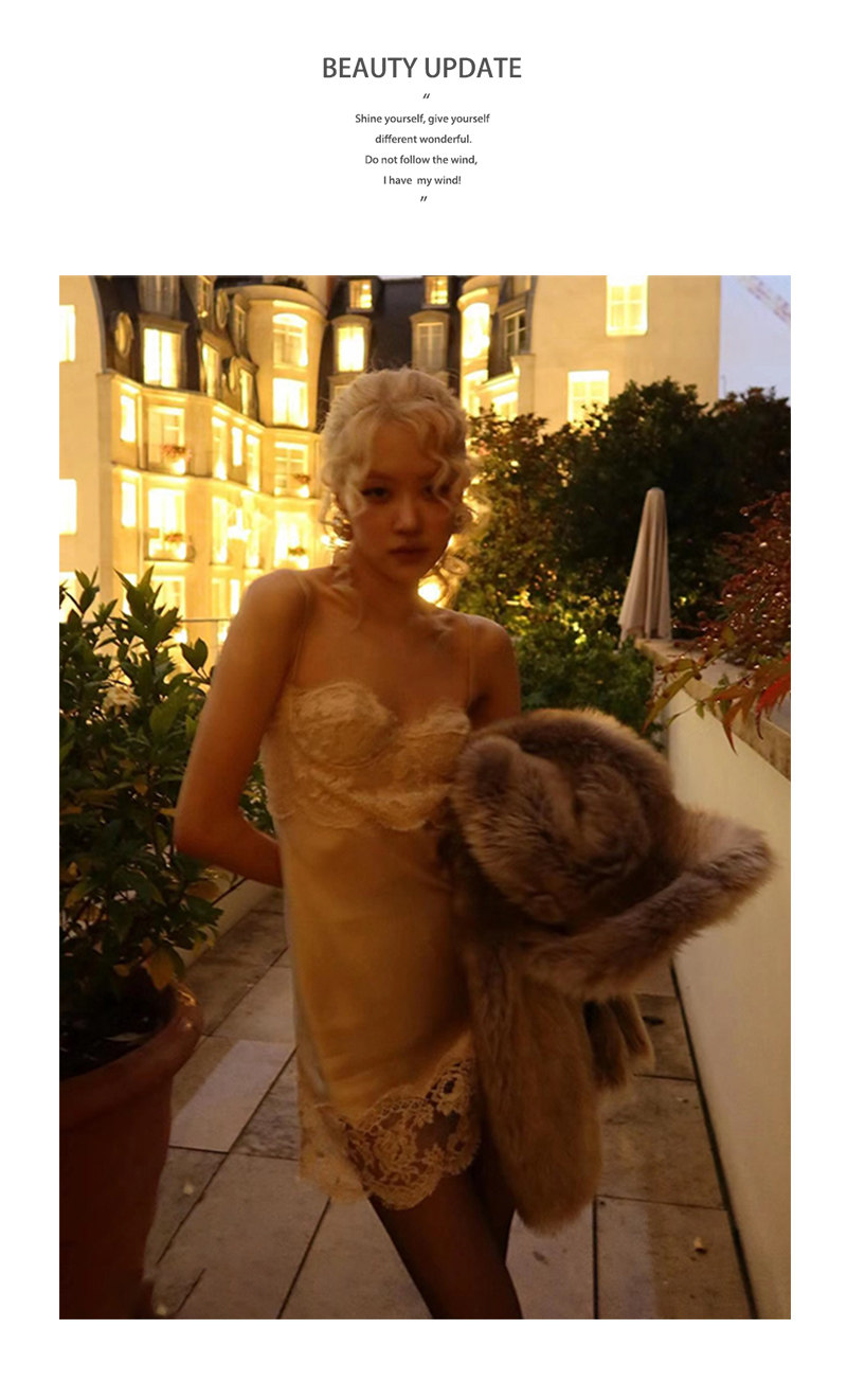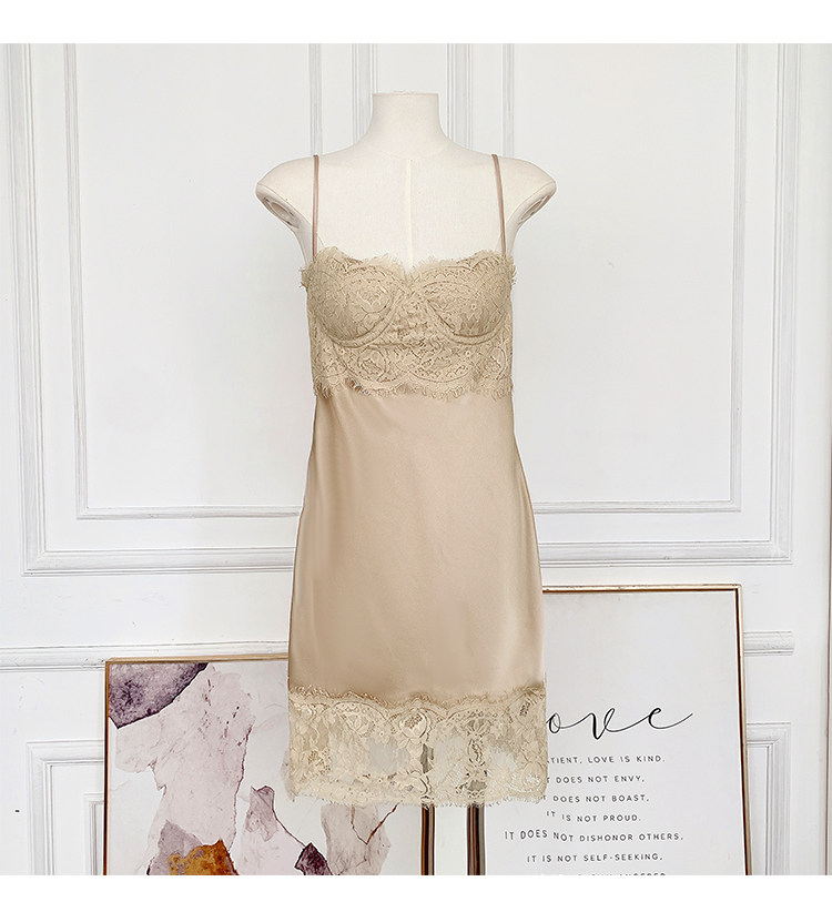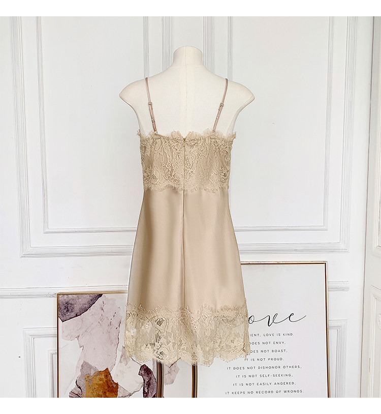 French-Style Sexy Lace-Trimmed Waist-Cinching Petite Slip Dress, Spring Style, Light Luxury, Ice-Silk Satin Base Dress, Short