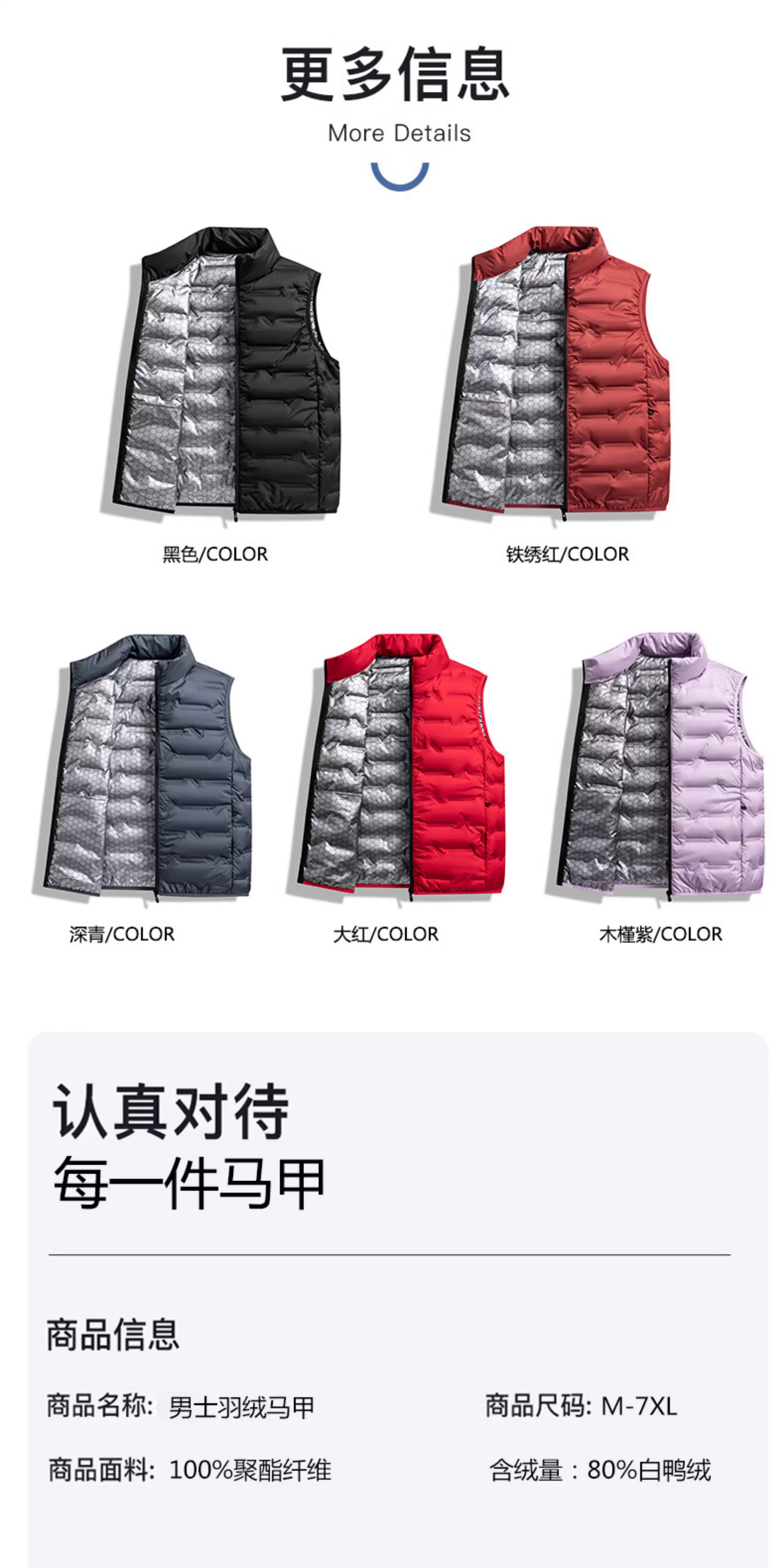 Autumn and Winter Outdoor Cold-Proof and Warm Couple's Lightweight down Jacket Vest for Men and Women, 80% White Duck down Vest Jacket