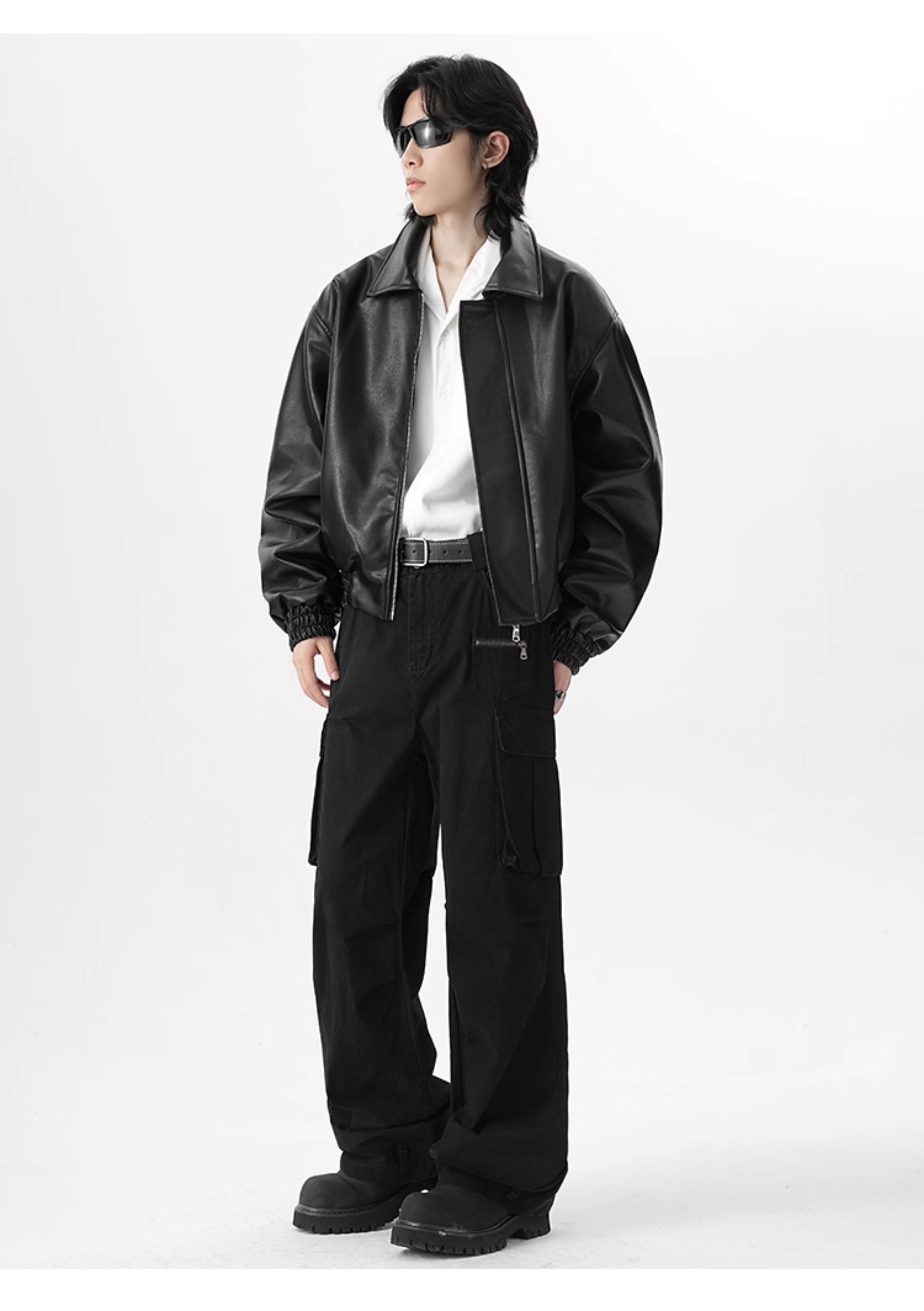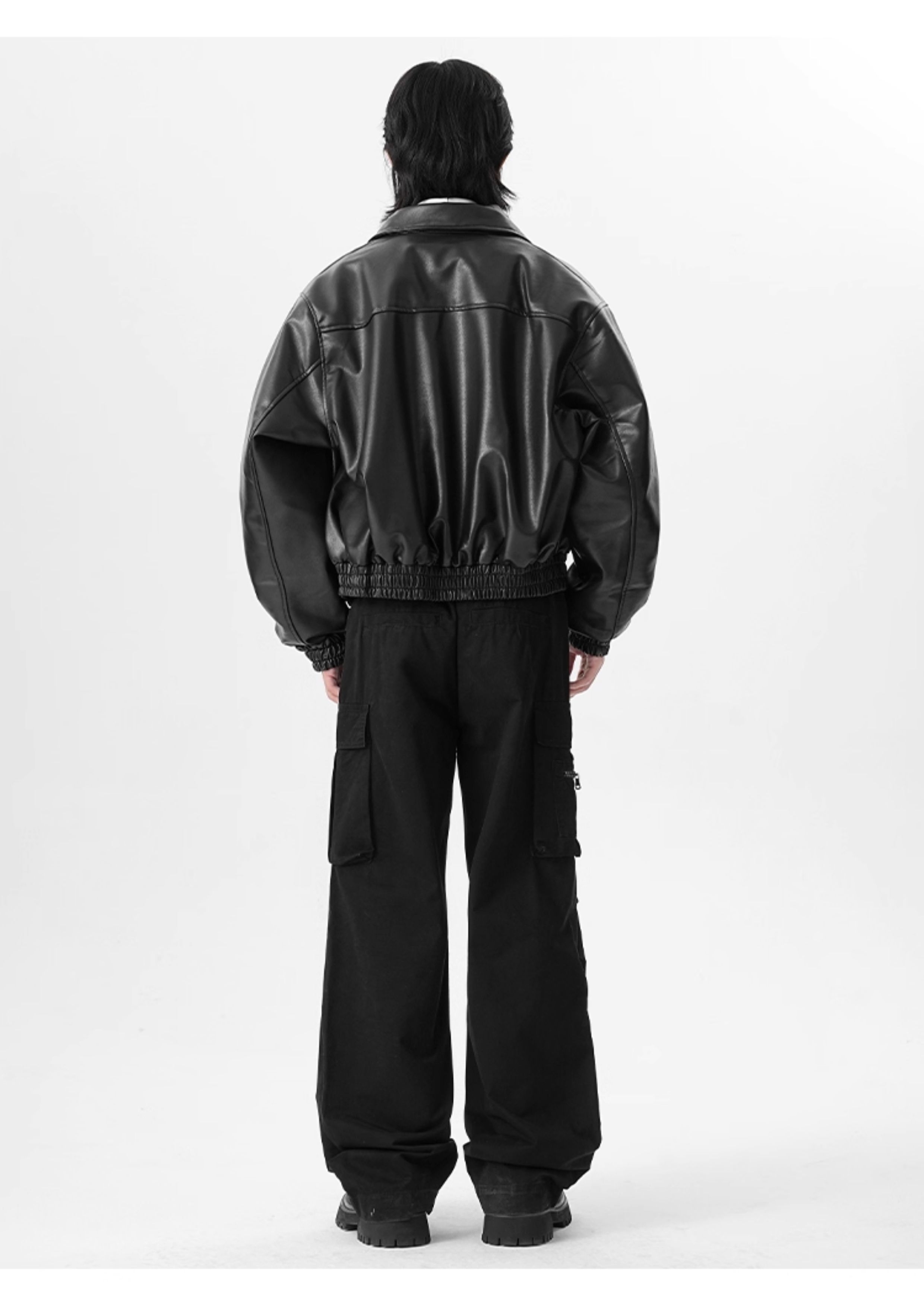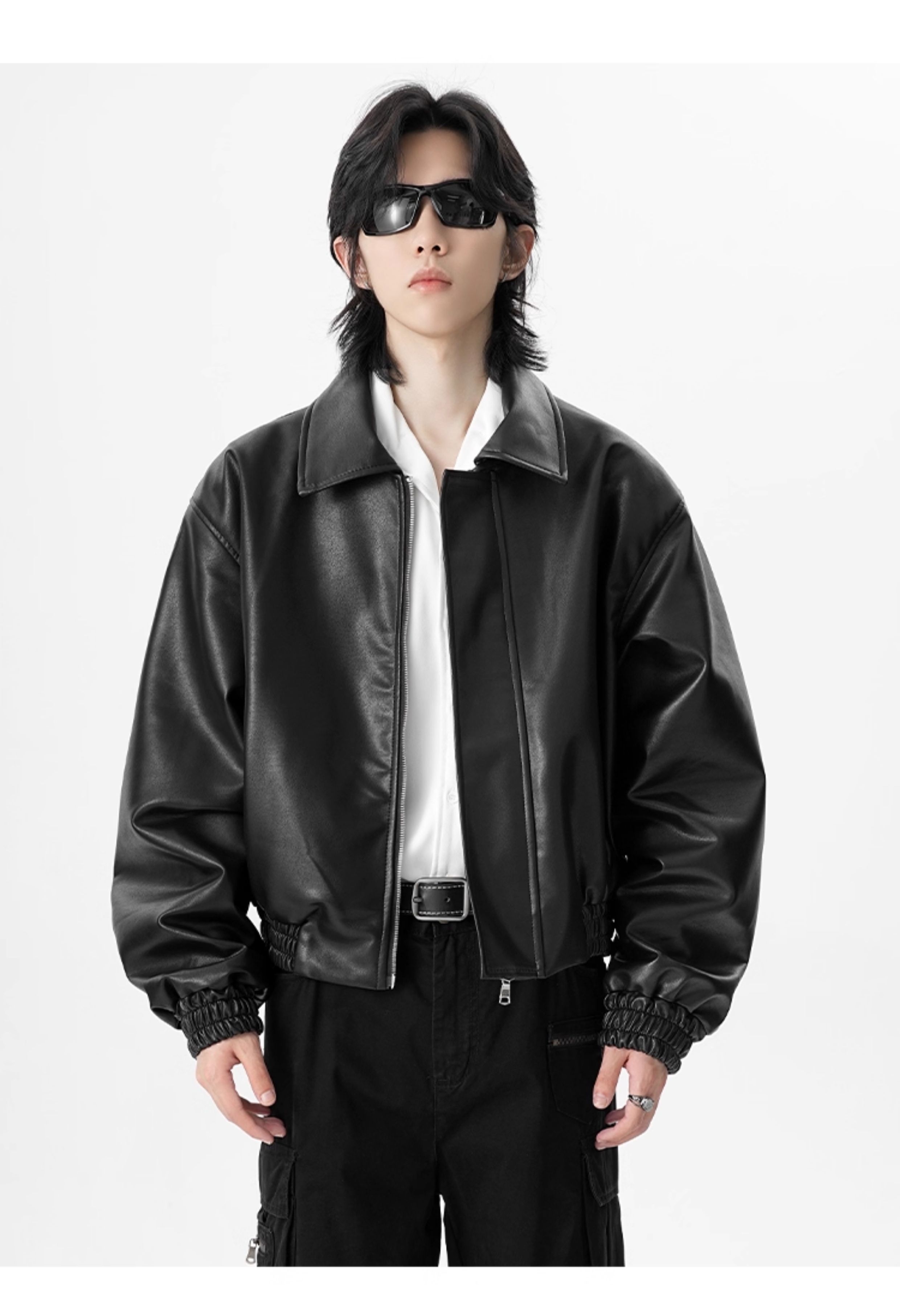Vintage-Style Handsome High-End Loose Leather Jacket for Men with Shoulder Pads, Biker Style, Short Men's Leather Jacket, 2025 New Model