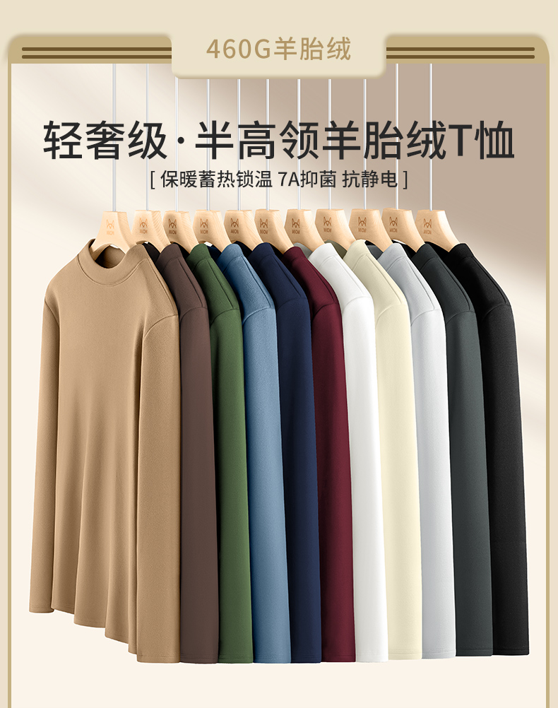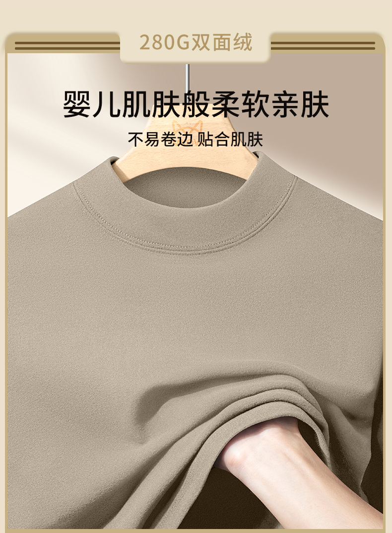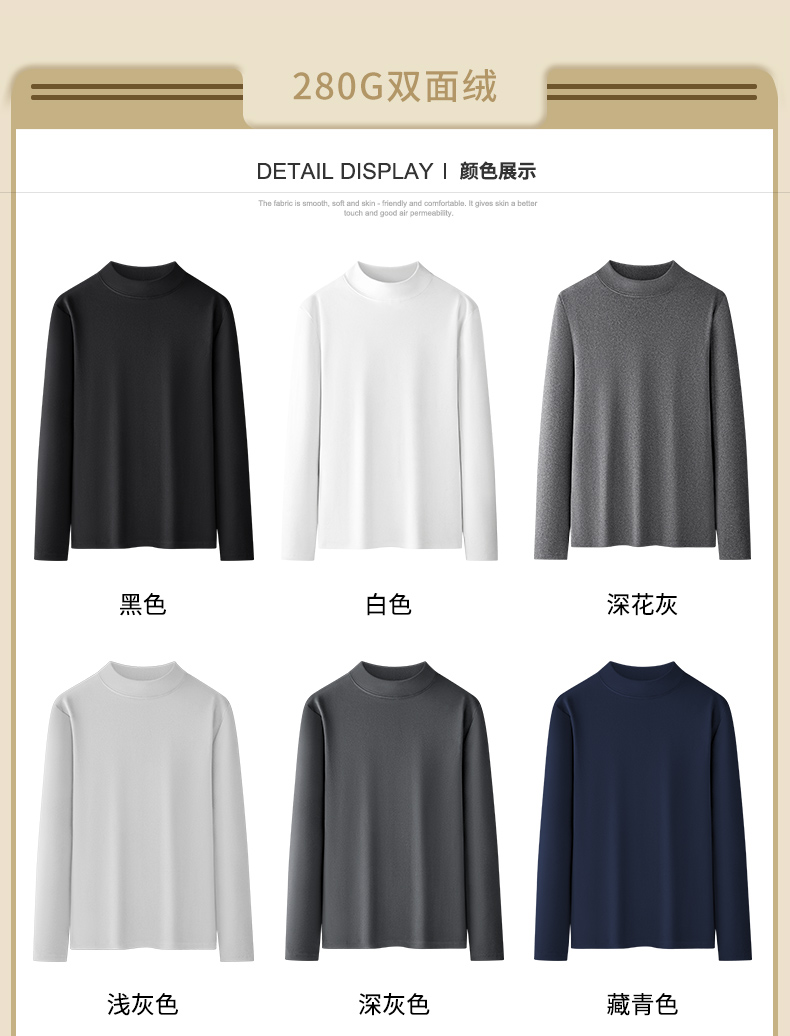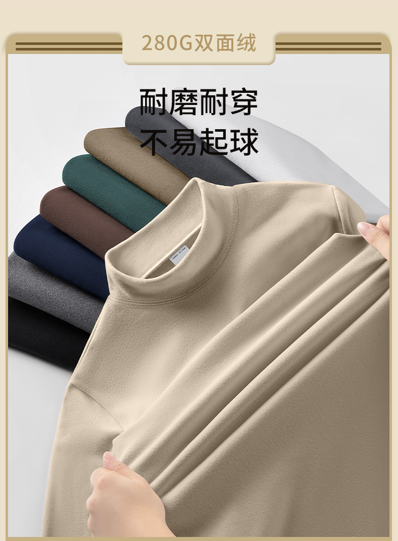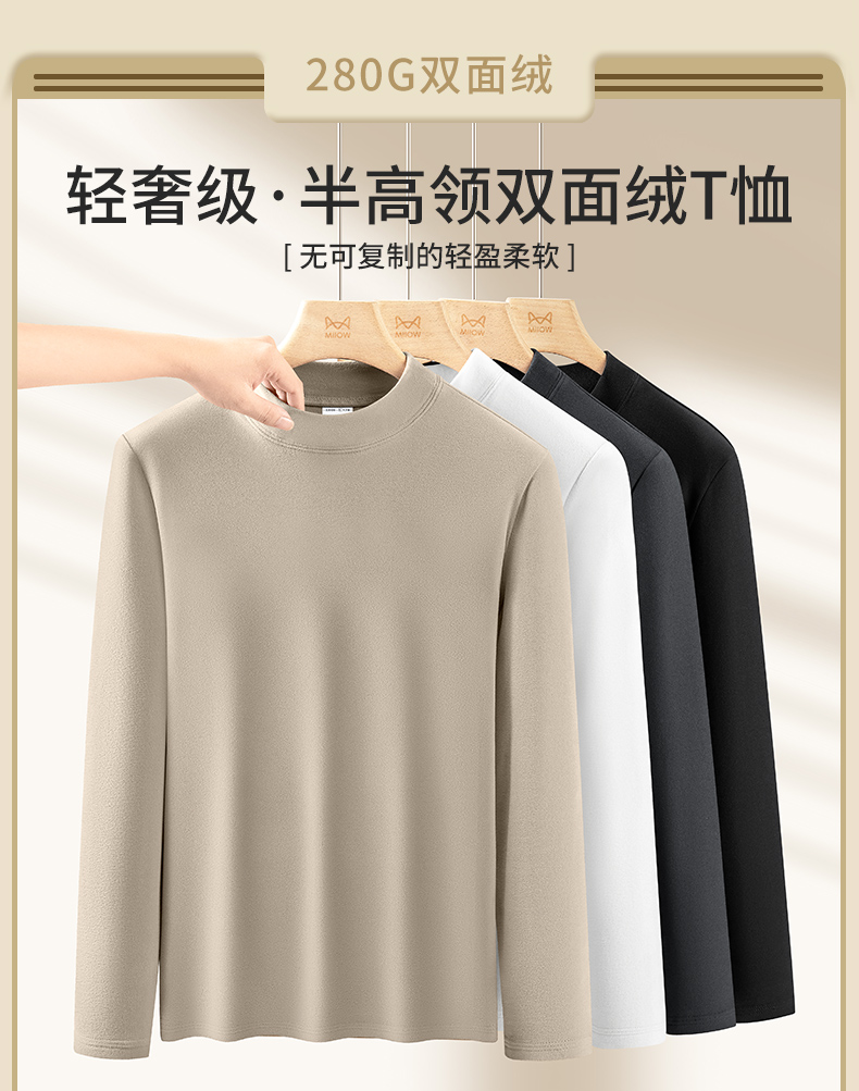 Catman Fleece-Lined Half-High Collar Base Layer Shirt for Men, 2025 Autumn and Winter New Thick Double-Sided Warm Inner Long-Sleeve T-Shirt