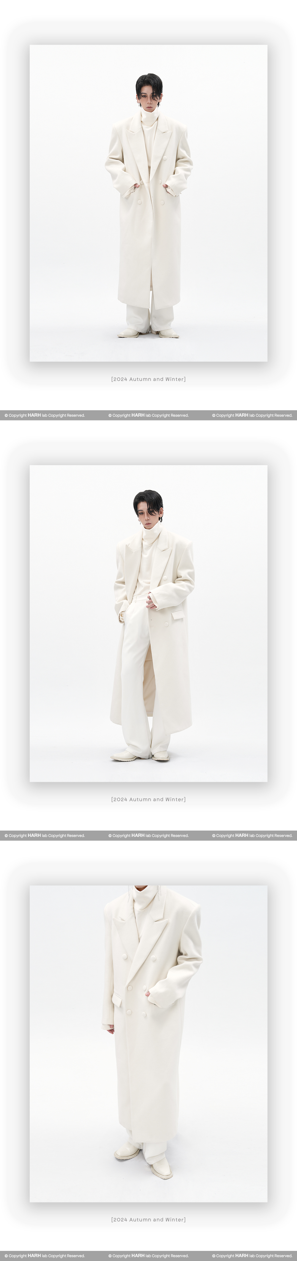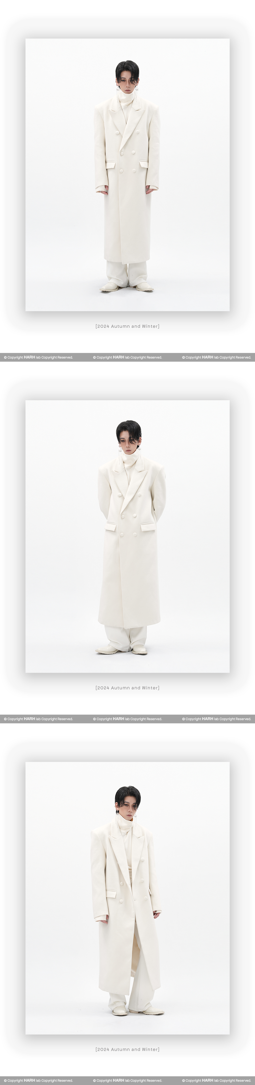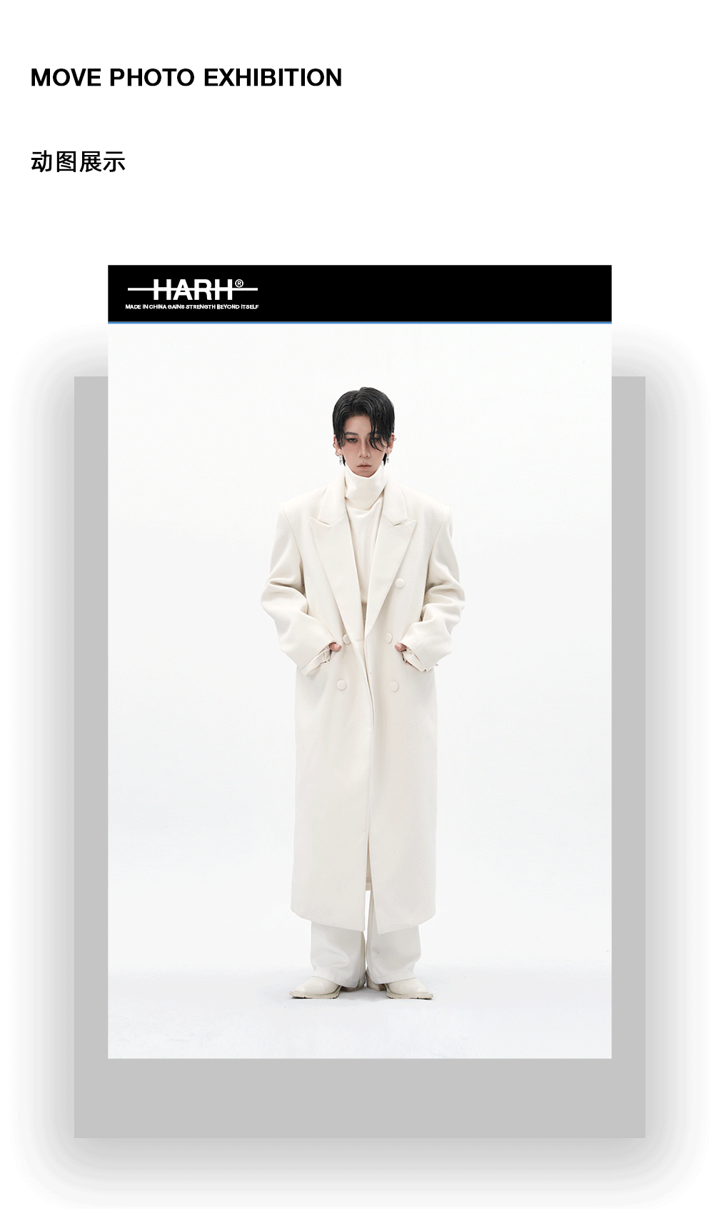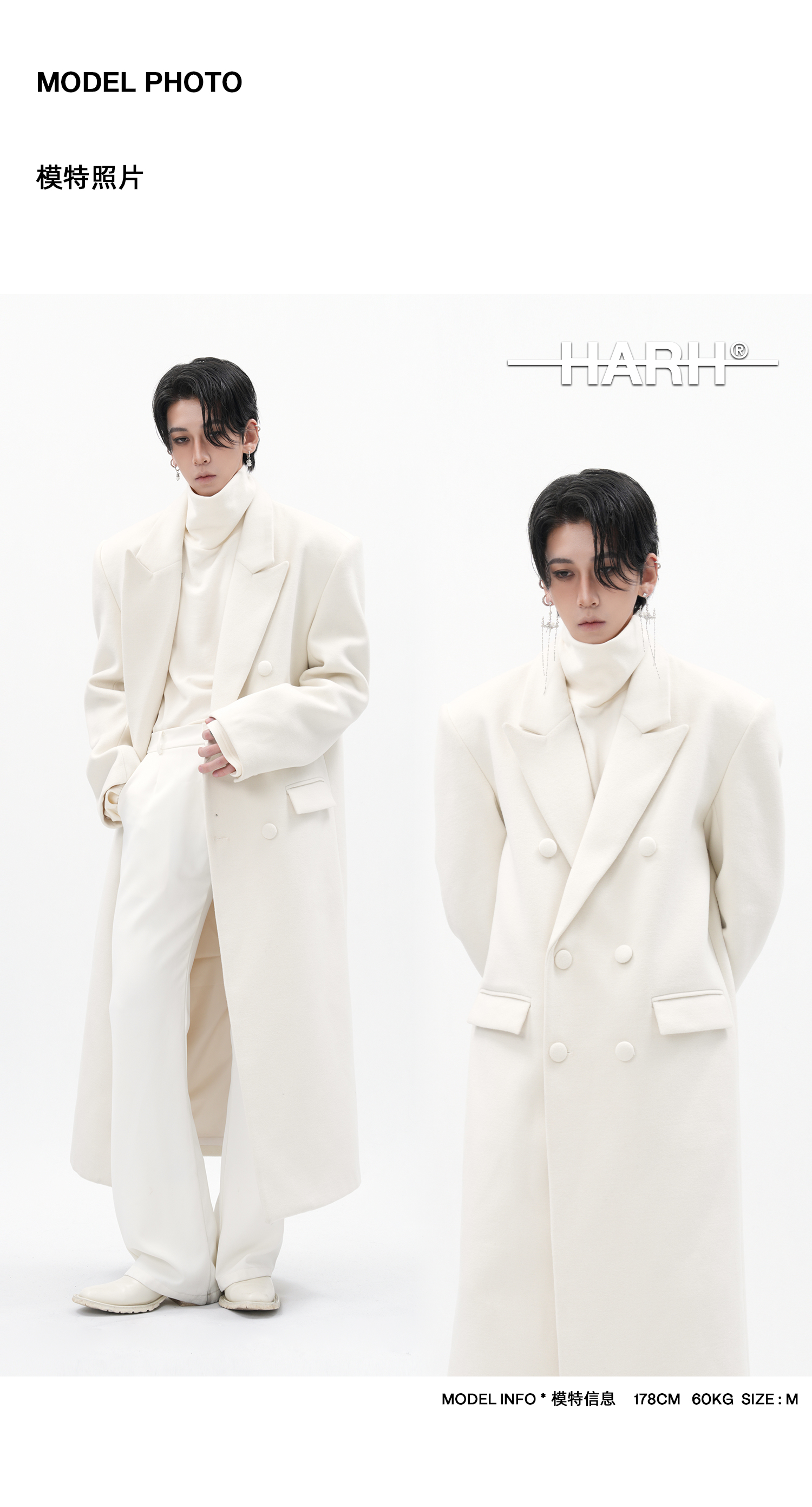 Harh "Walking Edinburgh" Original British-Style Off-White Long Woolen Coat with Faux Cashmere Shoulder Pads
