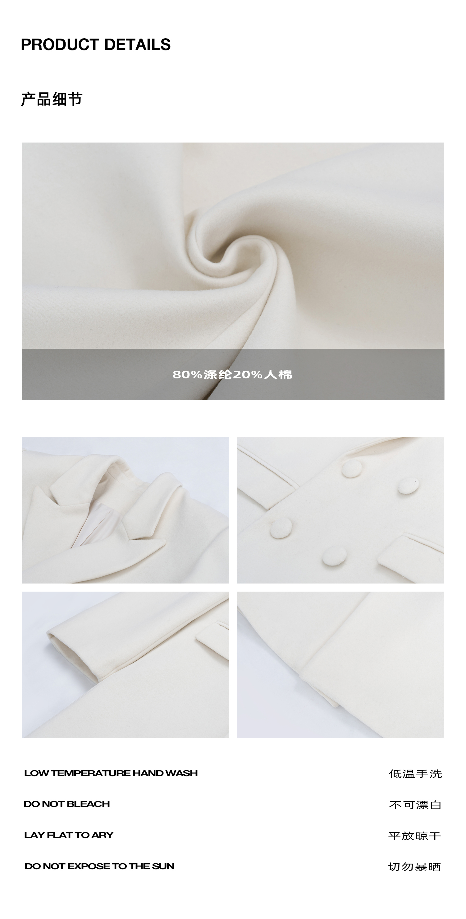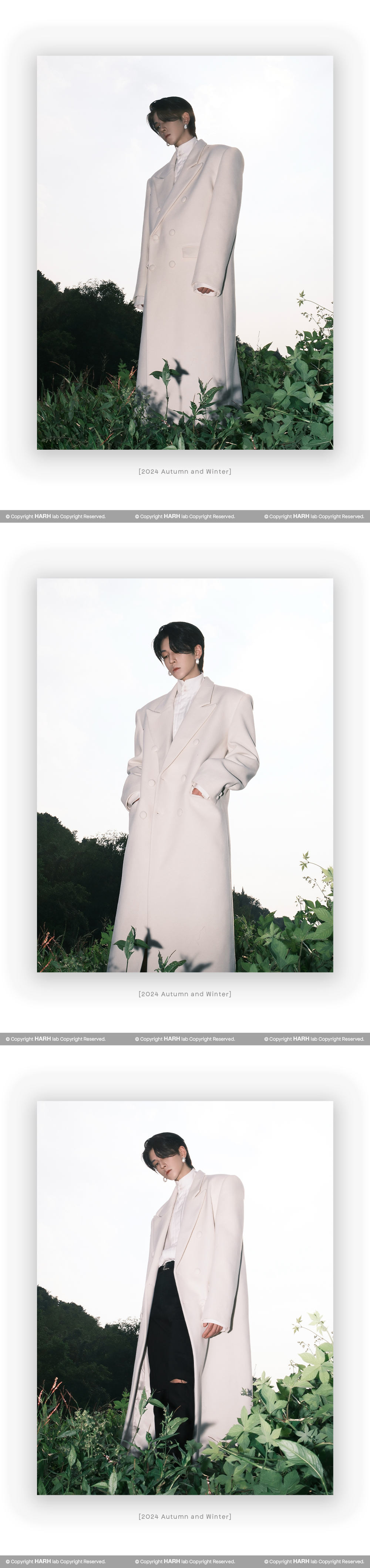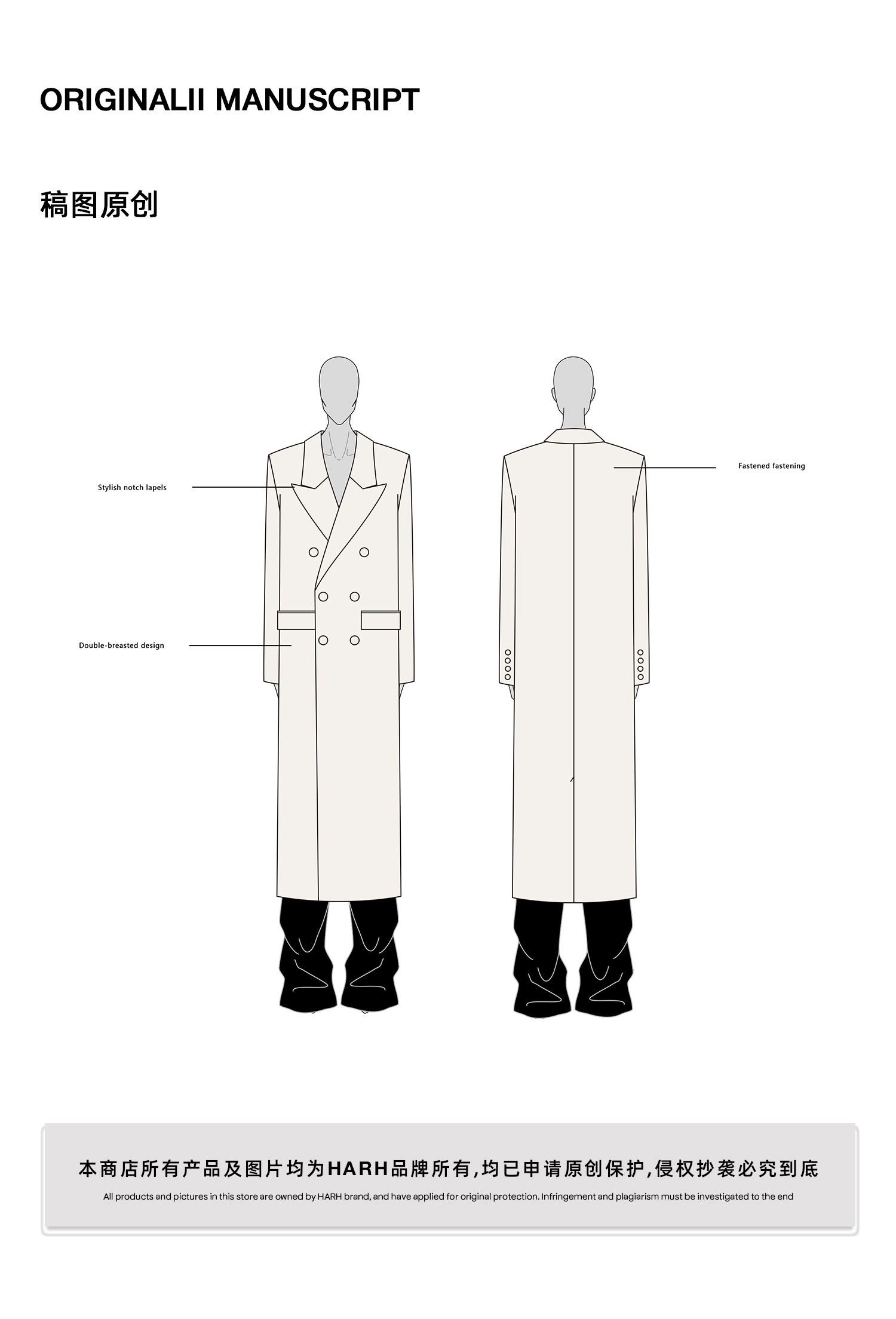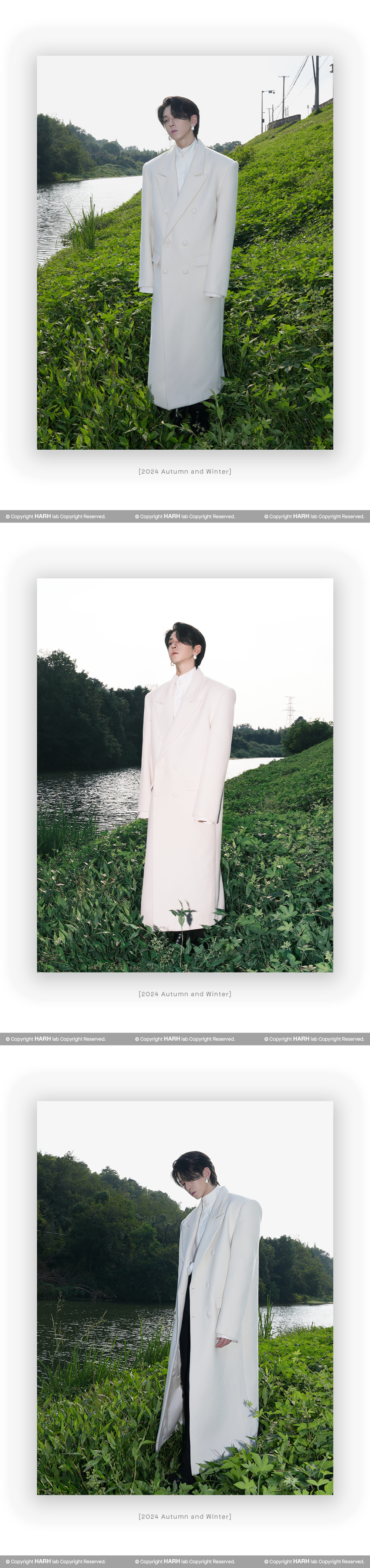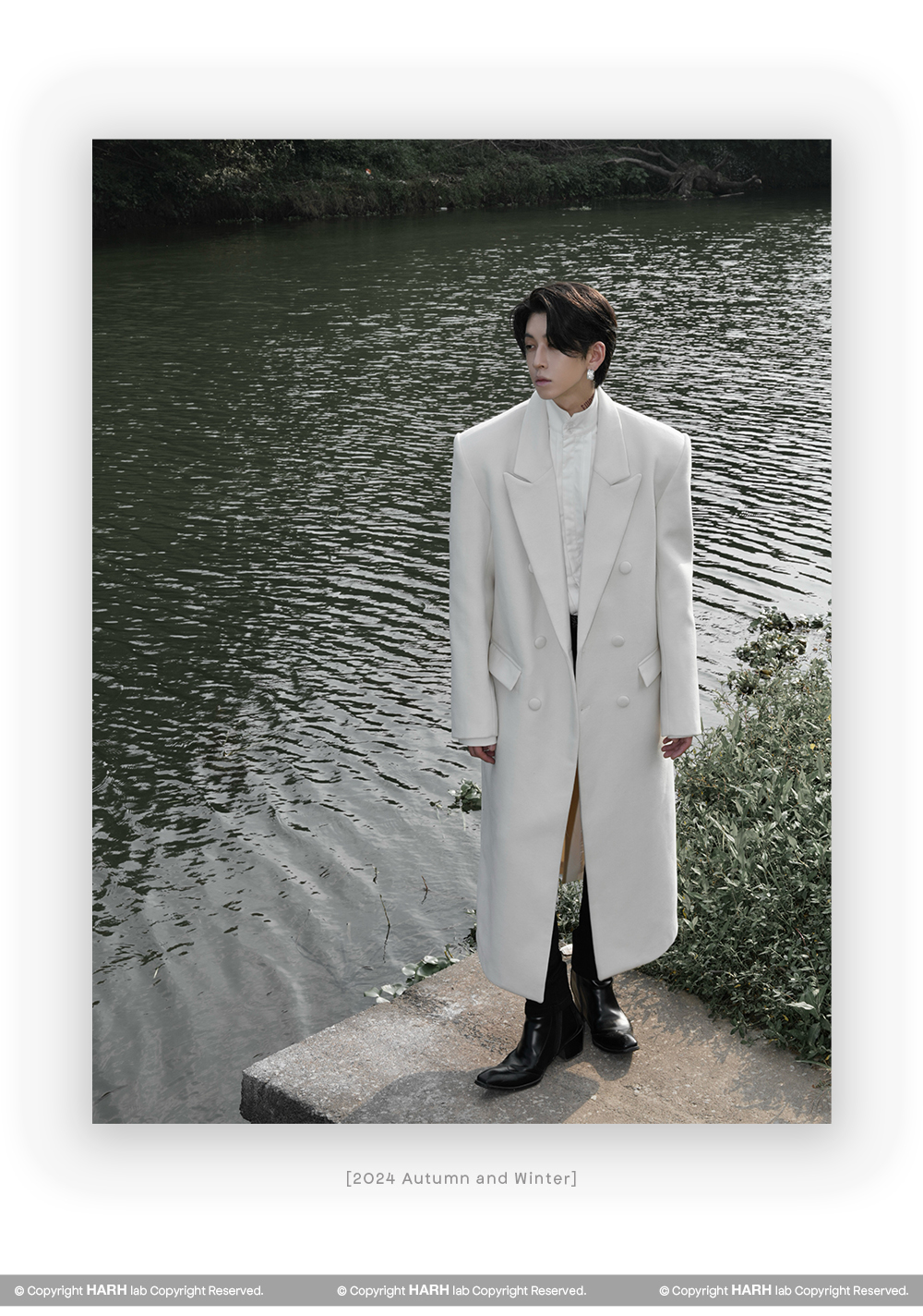 Harh "Walking Edinburgh" Original British-Style Off-White Long Woolen Coat with Faux Cashmere Shoulder Pads