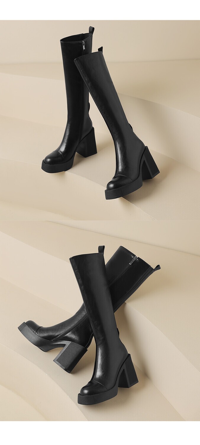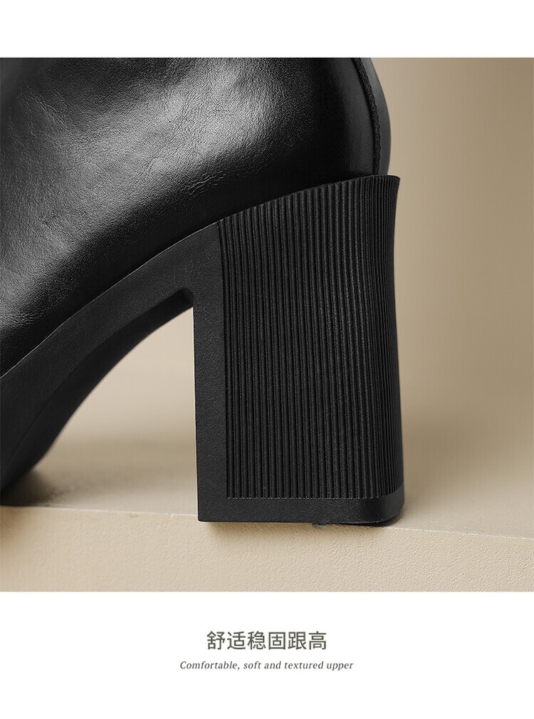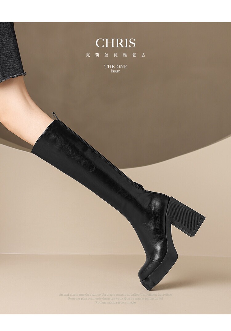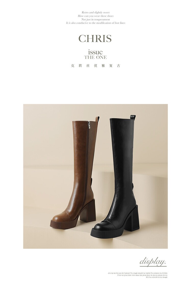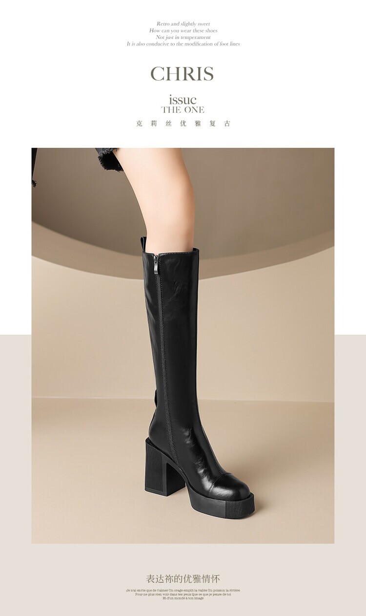 Italy's Corso Venezia~ Petite High-Heeled Platform Knight Boots That Don'T Go over the Knee, Slimming Tall Boots