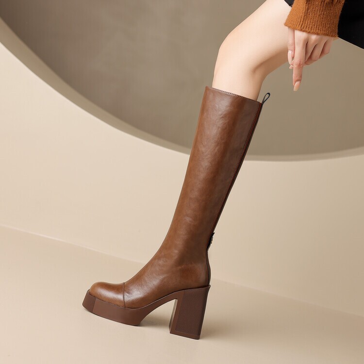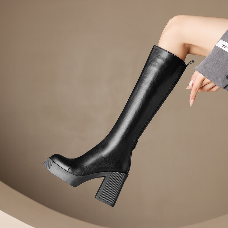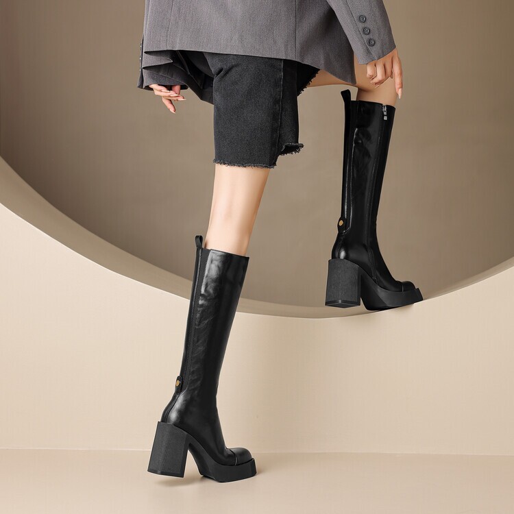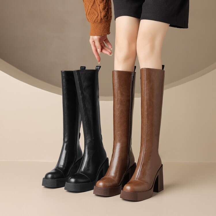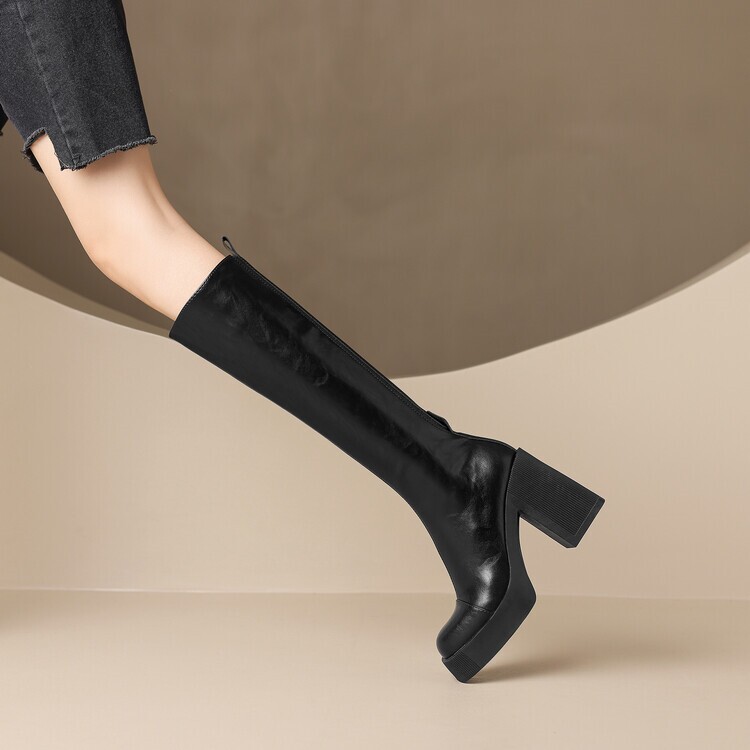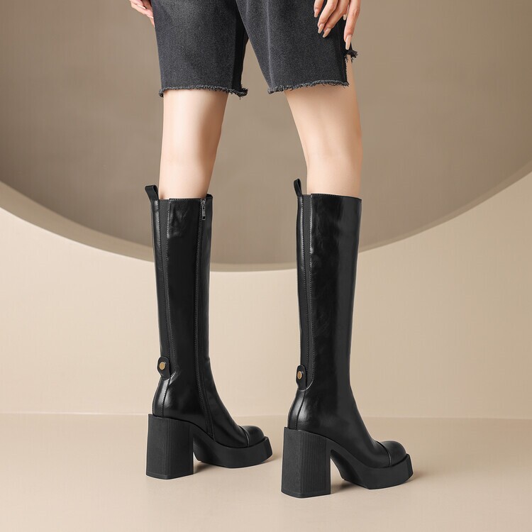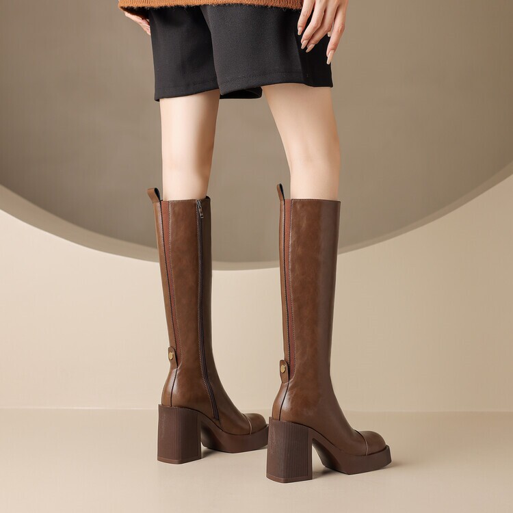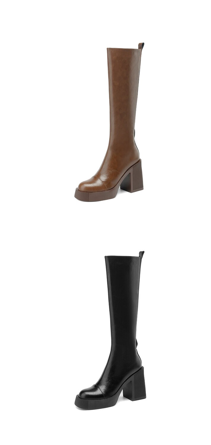 Italy's Corso Venezia~ Petite High-Heeled Platform Knight Boots That Don'T Go over the Knee, Slimming Tall Boots