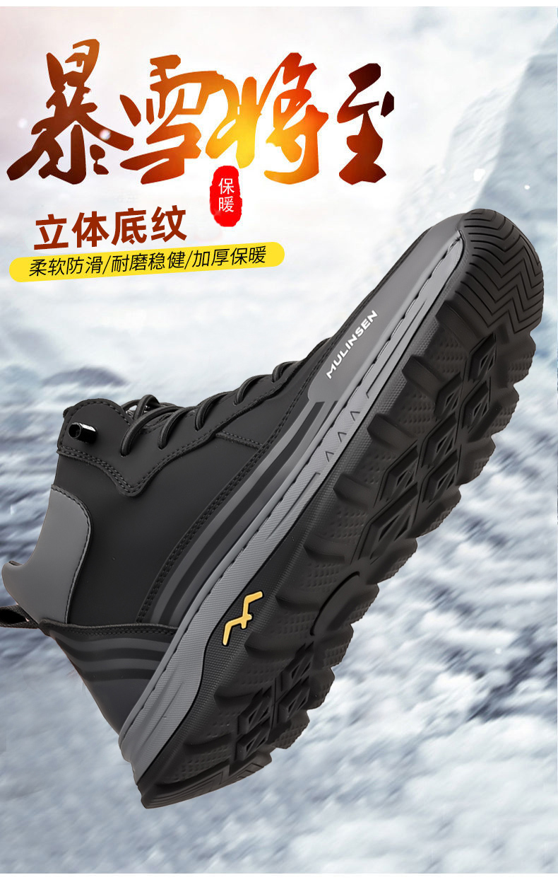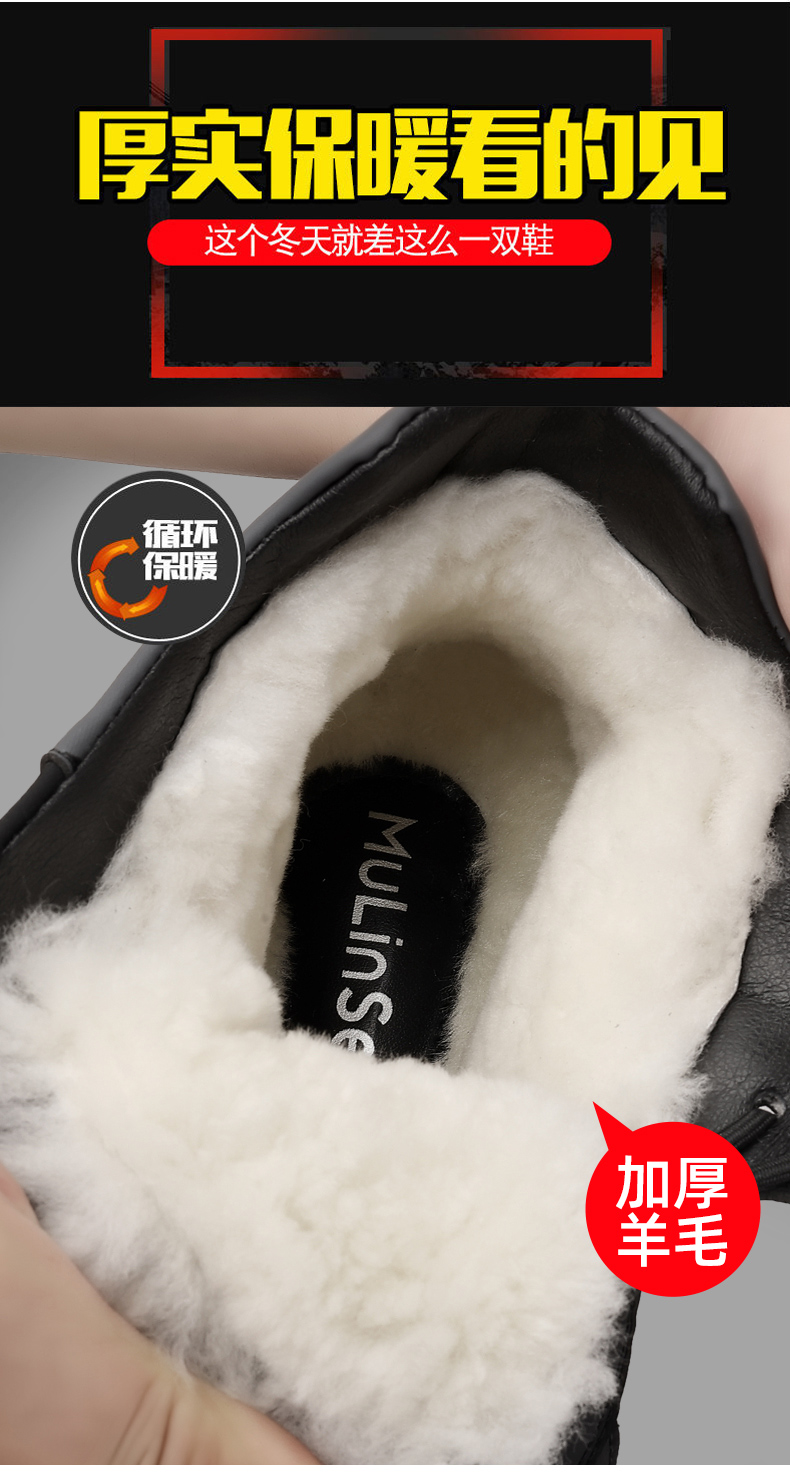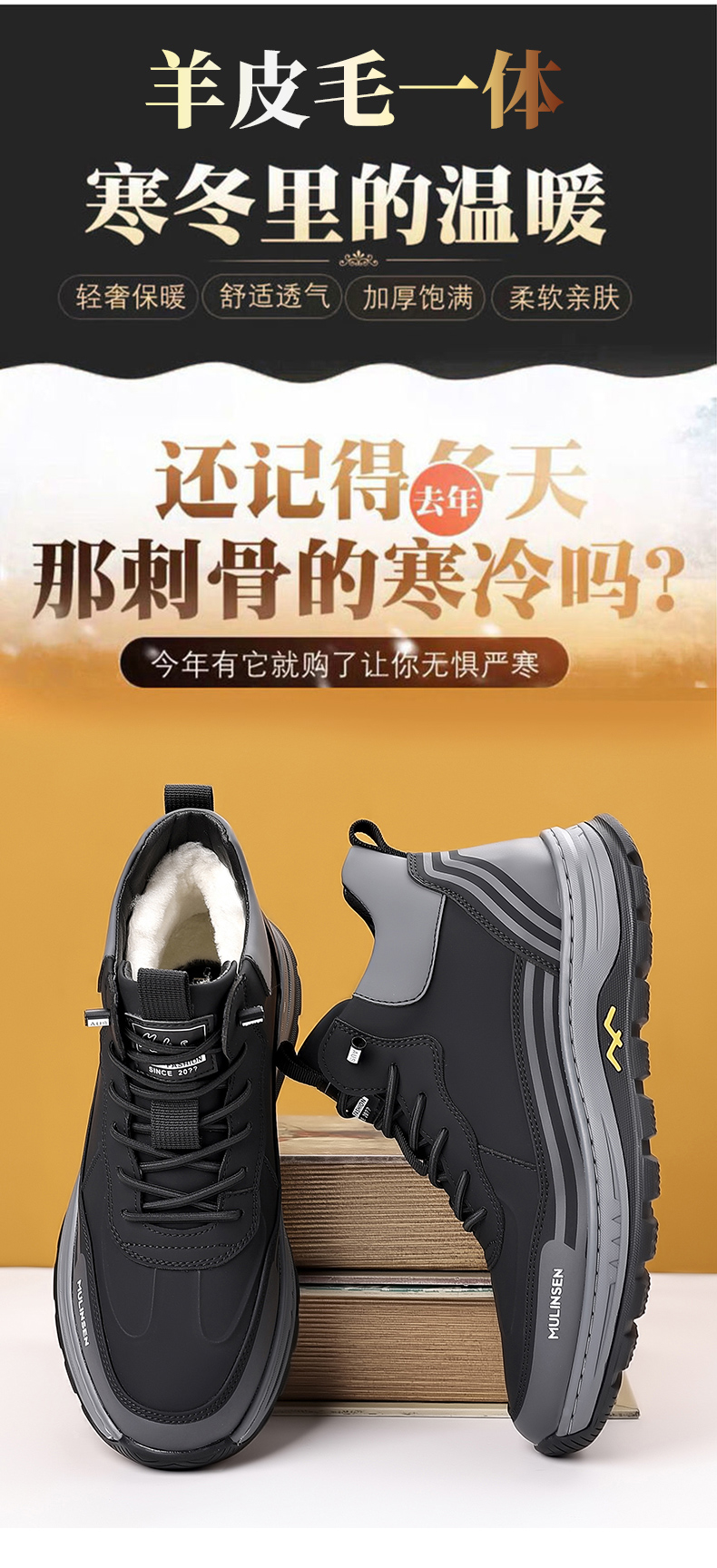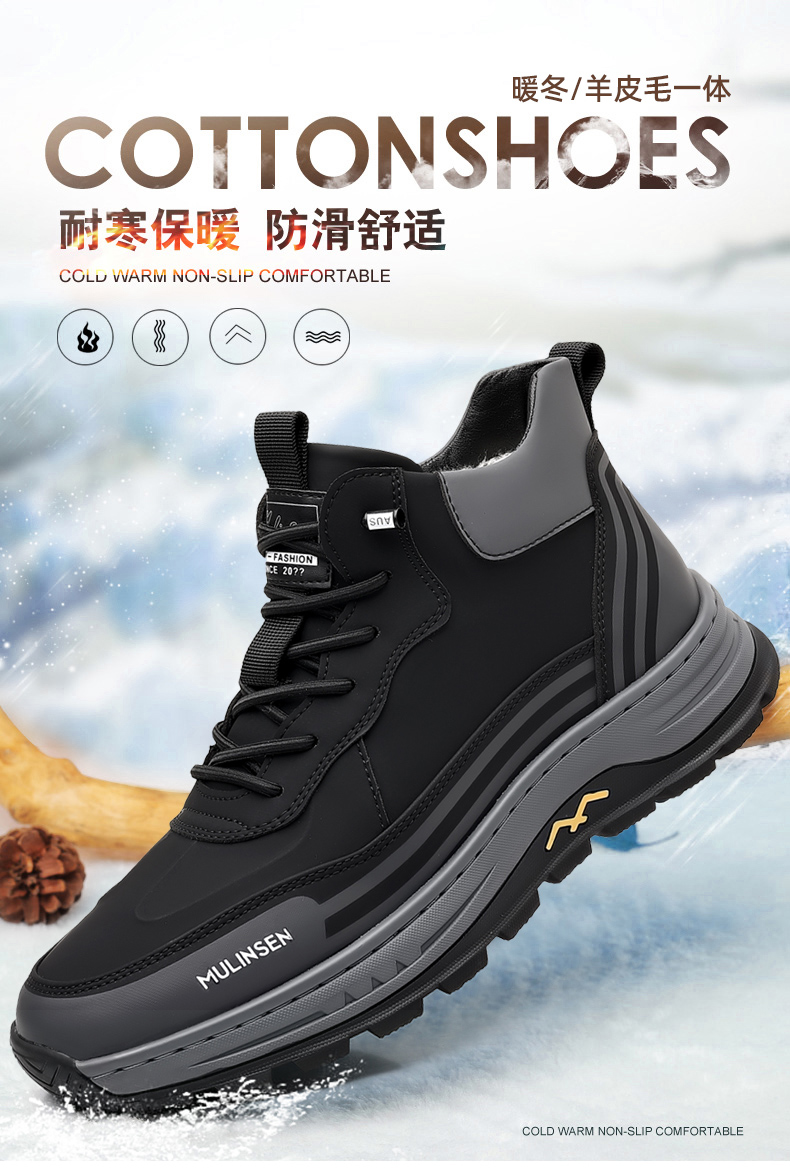 Mulinsen Men's Shoes, Winter Fleece-Lined and Thickened, Northeastern Large Cotton Shoes, Sheepskin Integrated Cotton Shoes, Warm and Cold-Resistant Snow Boots