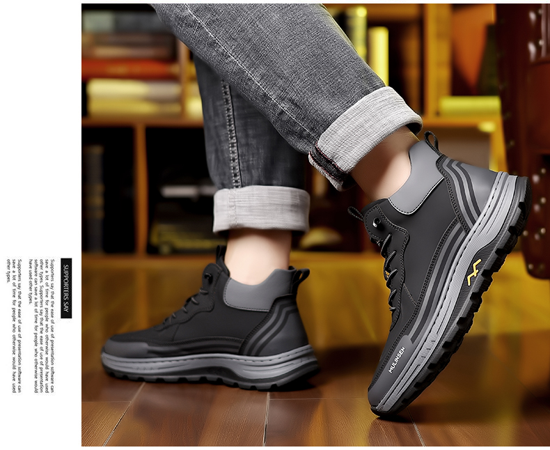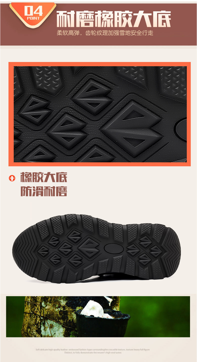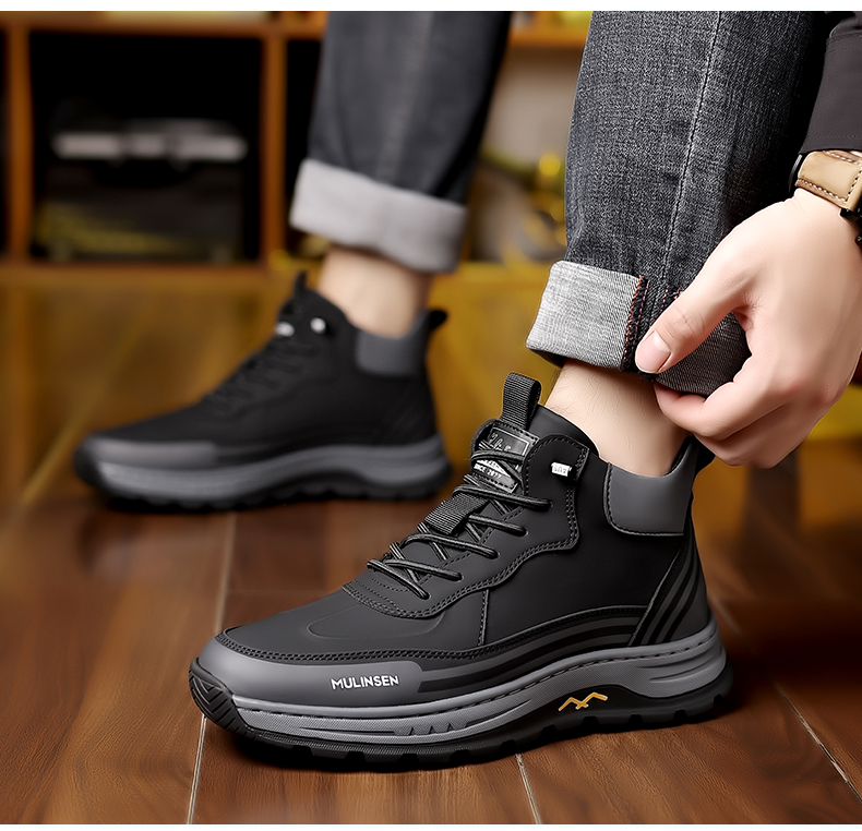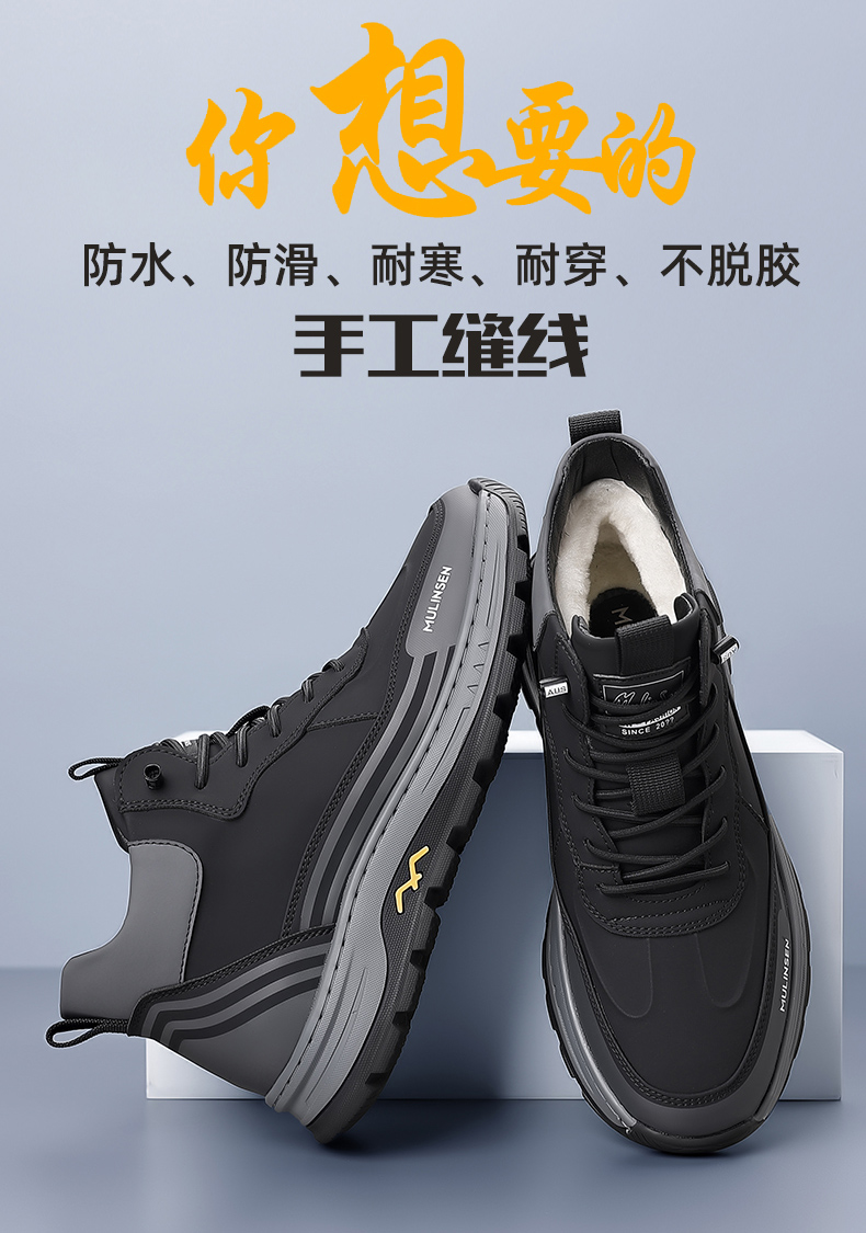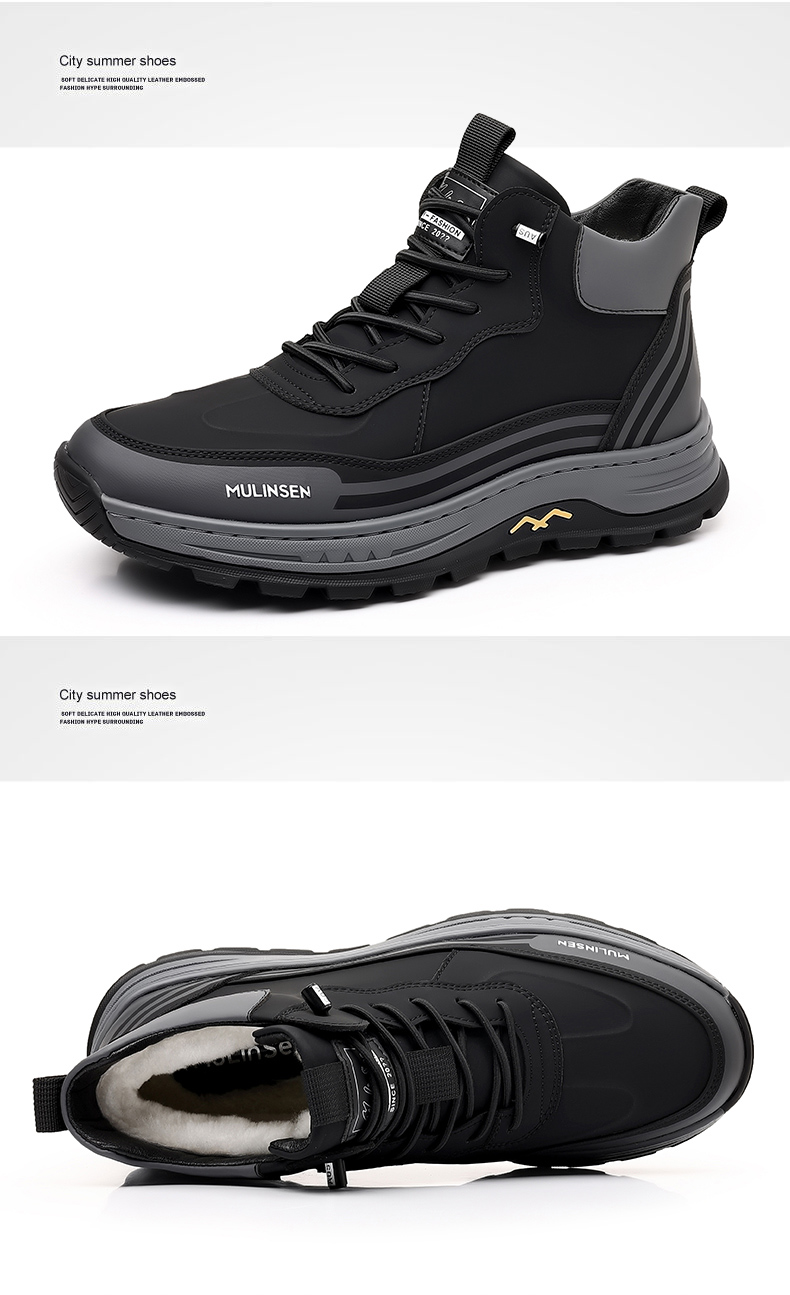 Mulinsen Men's Shoes, Winter Fleece-Lined and Thickened, Northeastern Large Cotton Shoes, Sheepskin Integrated Cotton Shoes, Warm and Cold-Resistant Snow Boots