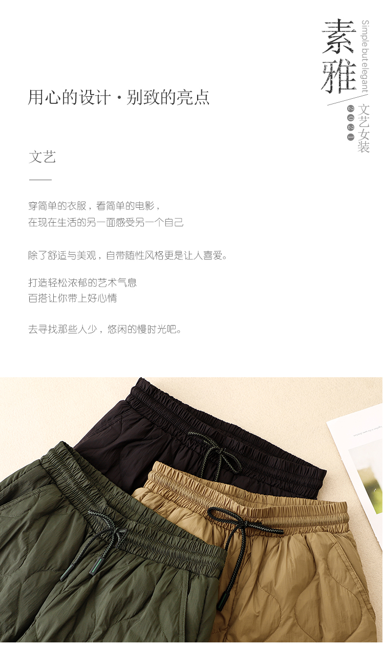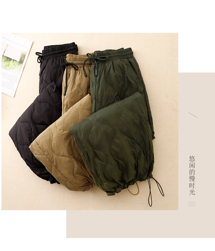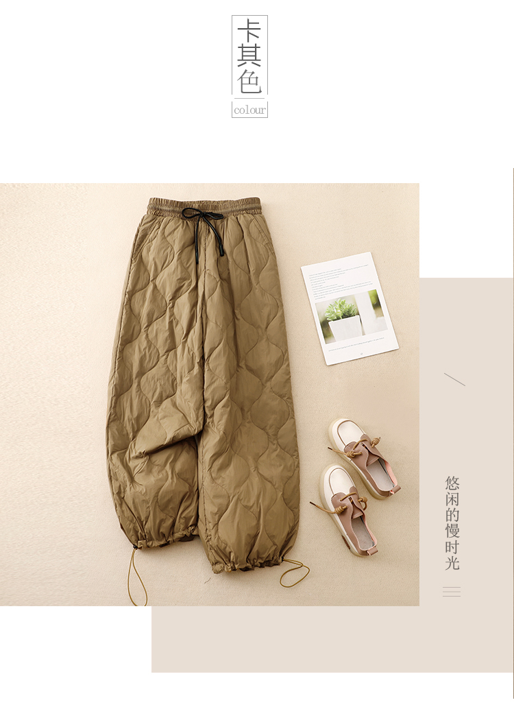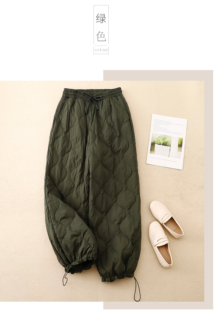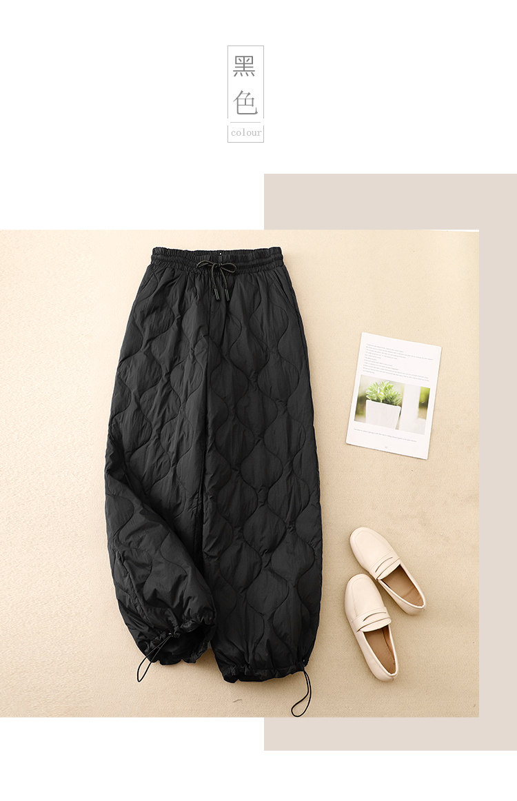 Lightweight down Cotton Pants for Women, Winter Fashionable and Stylish, Cold-Proof and Warm, Drawstring Lantern Pants, Casual Quilted Long Pants