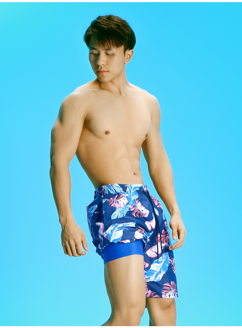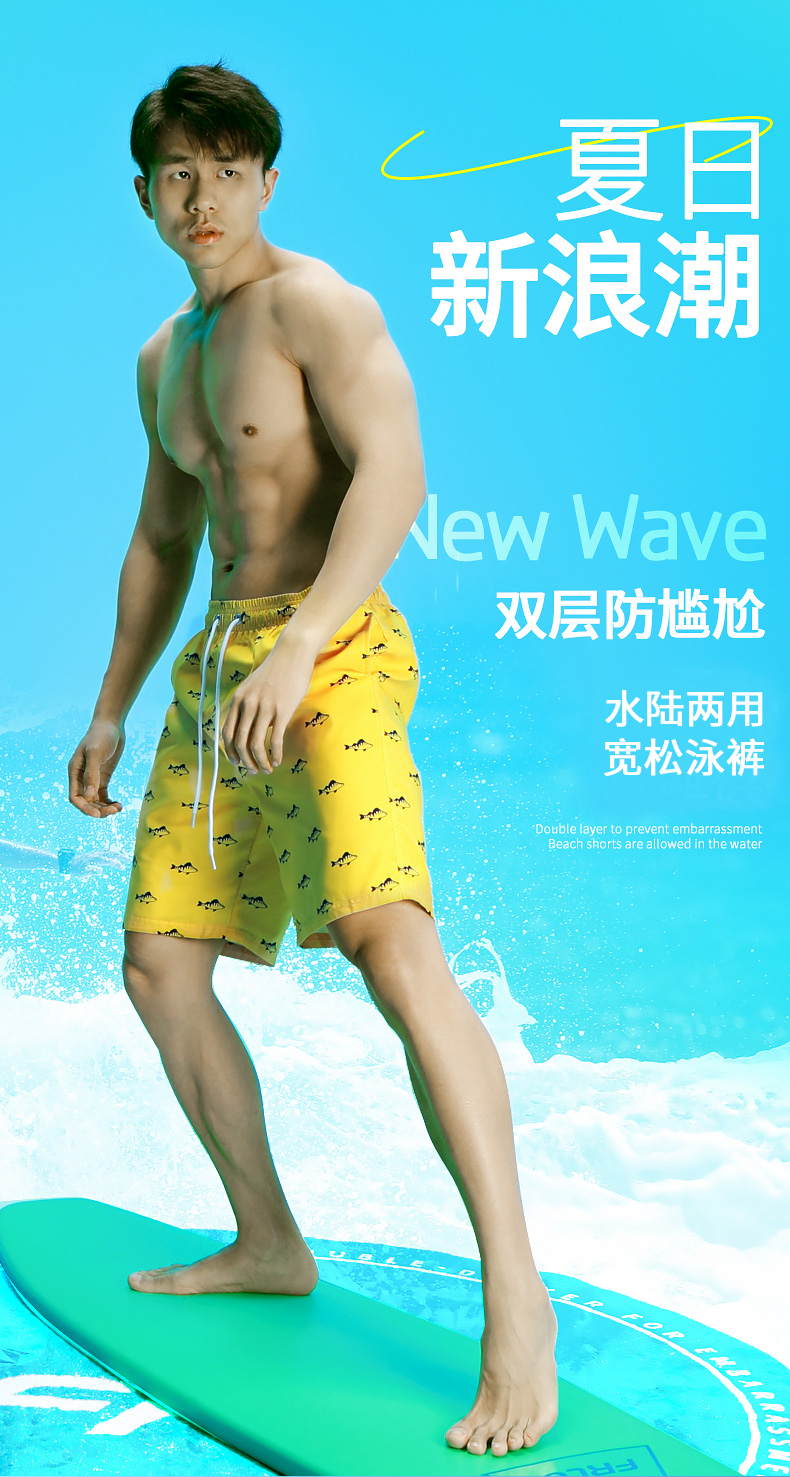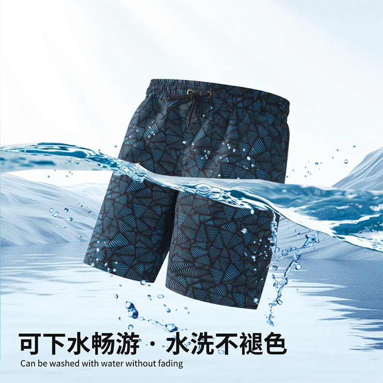 Men's New Style Swim Trunks, Double-Layered, Anti-Embarrassment, Quick-Drying, Suitable for Water, Professional Adult Five-Point Loose Fit, Large Size Beach Pants, Hot Spring