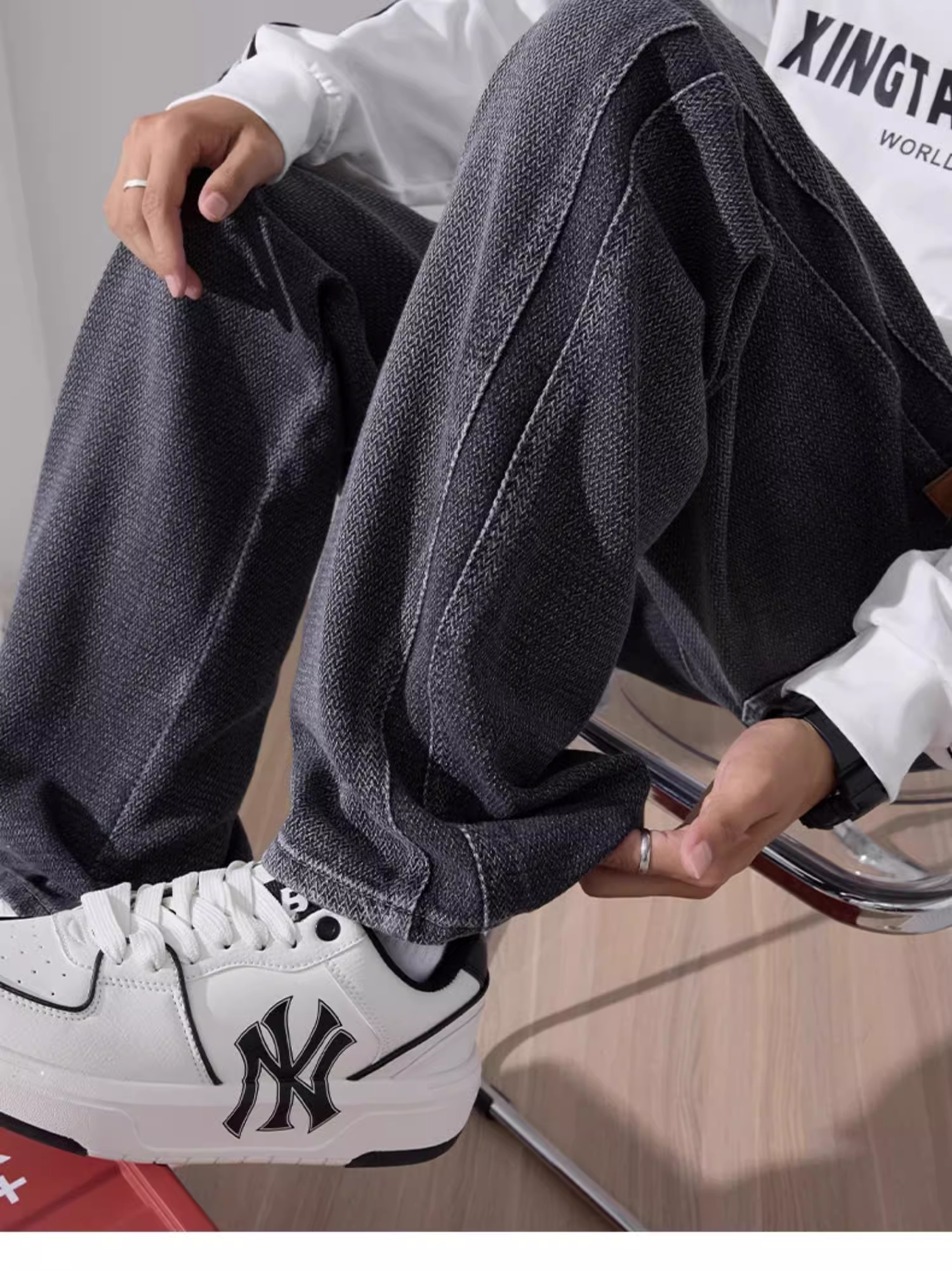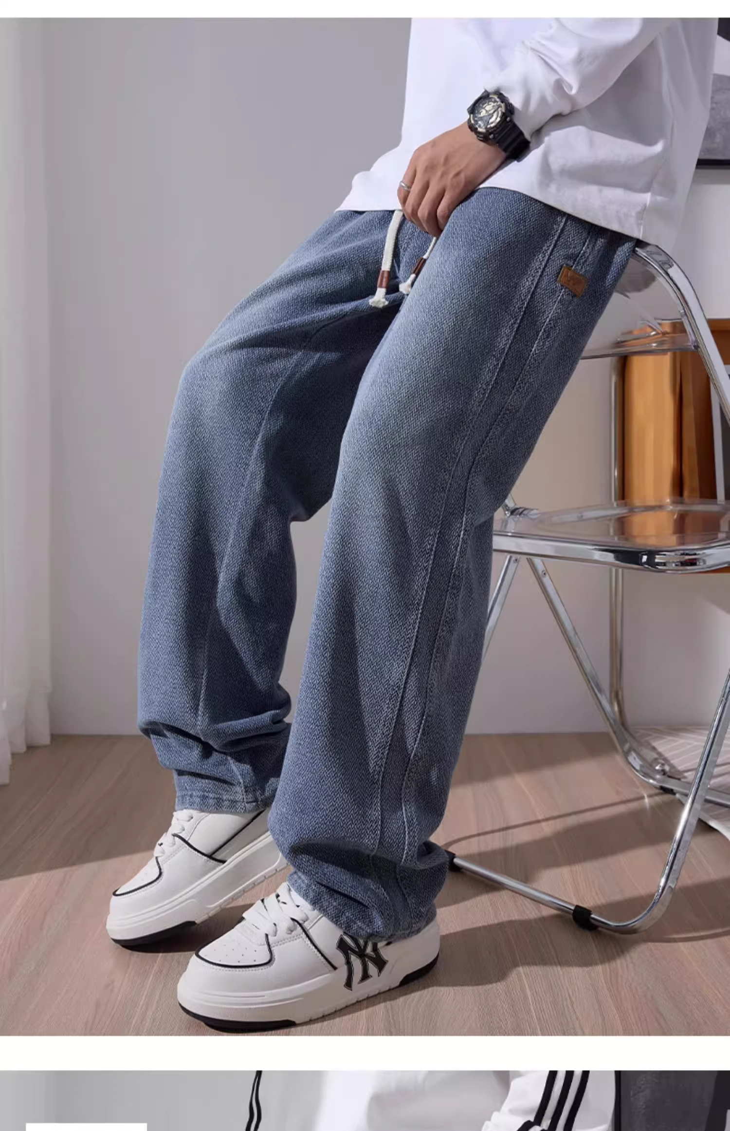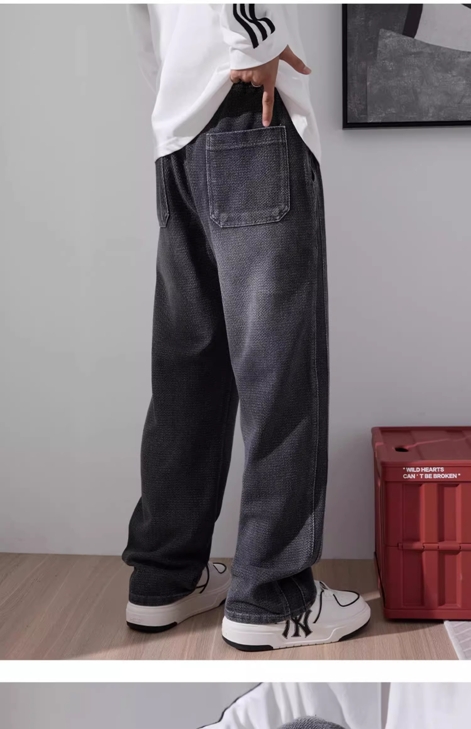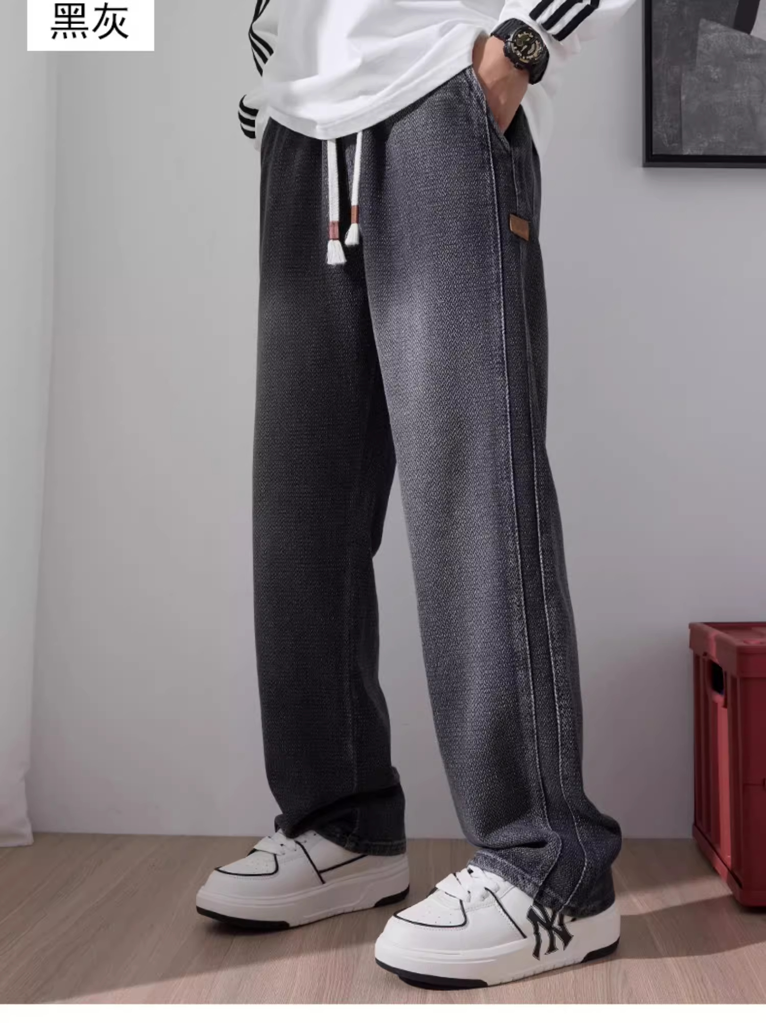2025 Autumn/Winter Fleece-Lined Starry Sky Pattern Jeans for Men, American High Street Style, Loose Straight-Leg Washed Casual Pants, Trendy