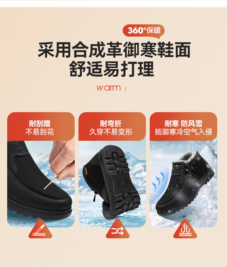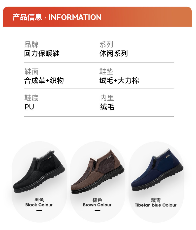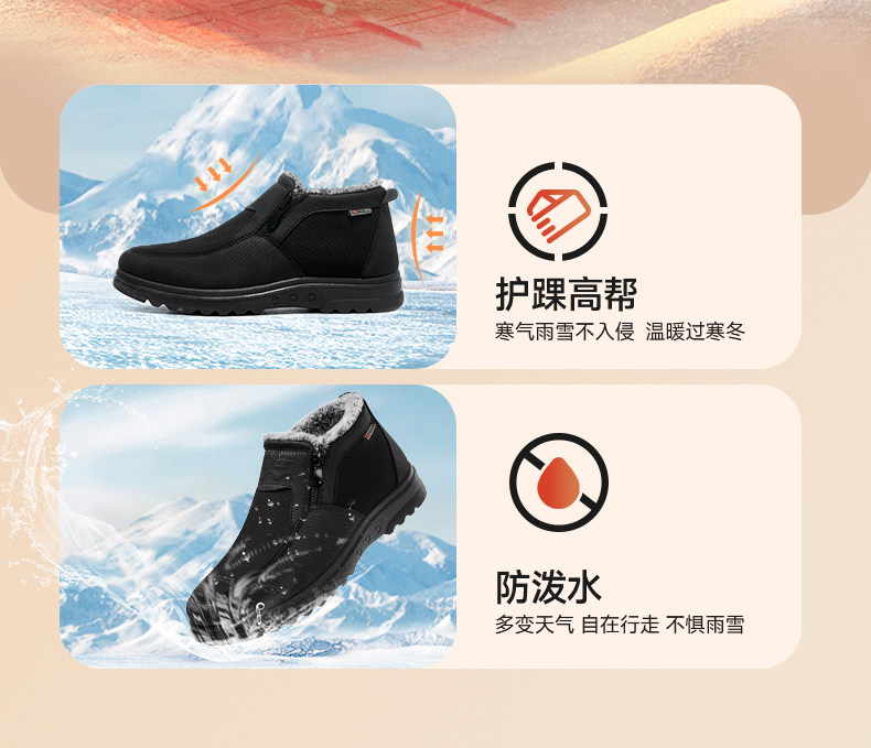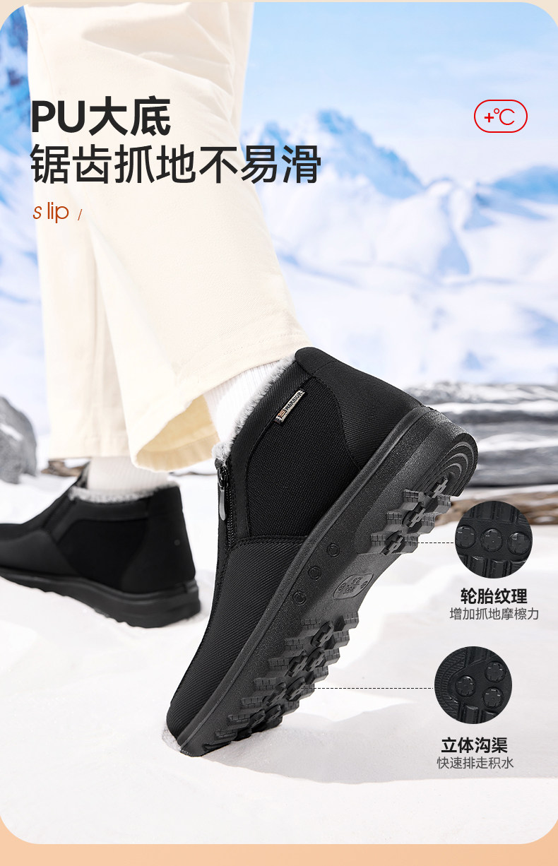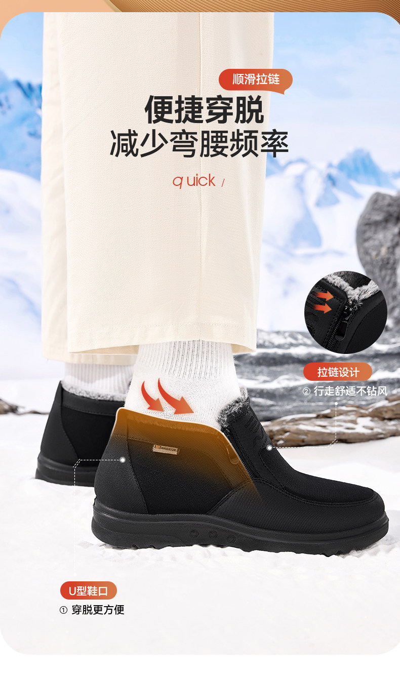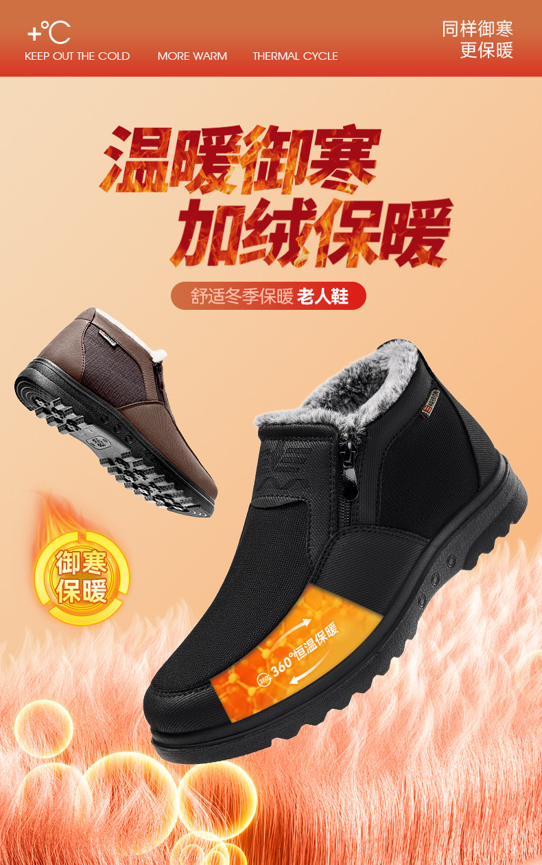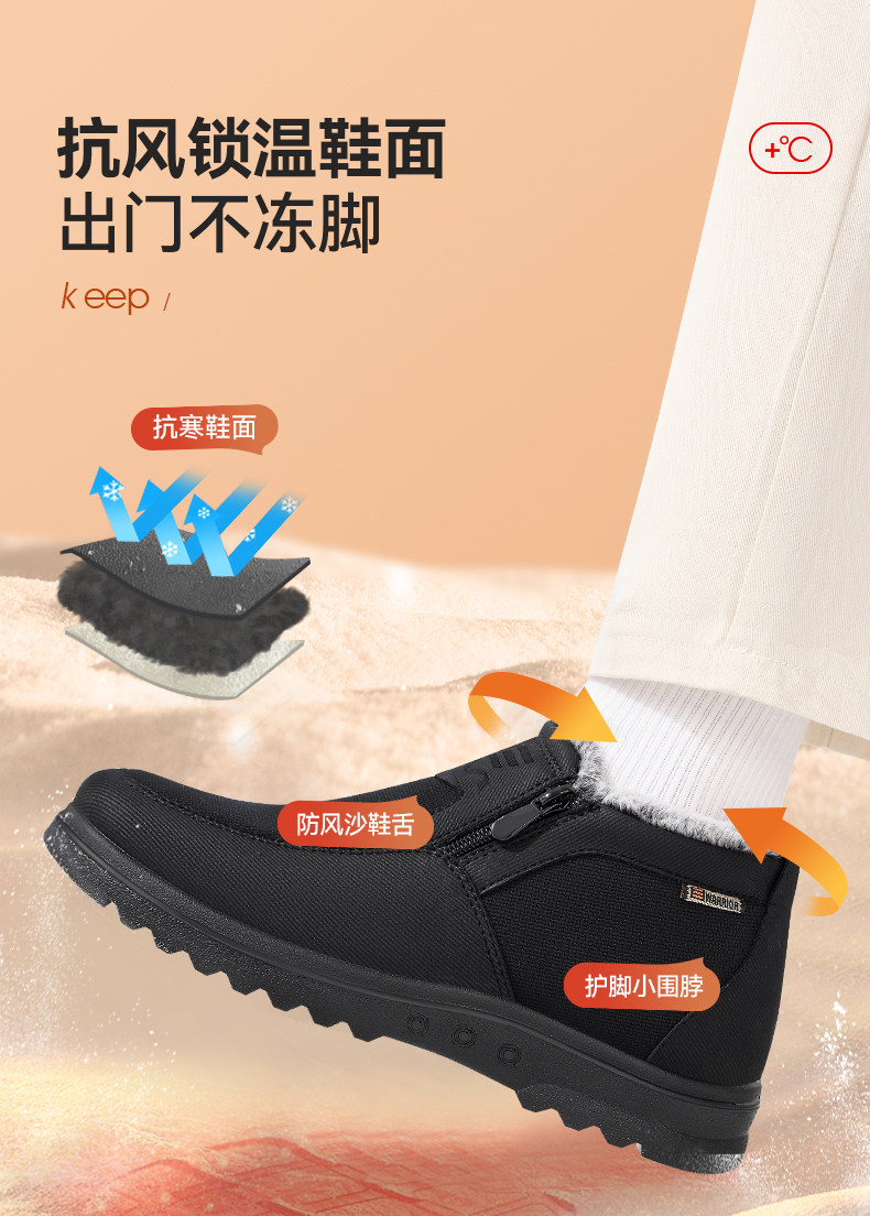 Pull-Back Style Old Beijing Cloth Shoes, Winter Cotton Shoes for Men, Fleece-Lined and Thickened, Middle-Aged and Elderly Dad Shoes, Warm Shoes for the Elderly, Snow Boots