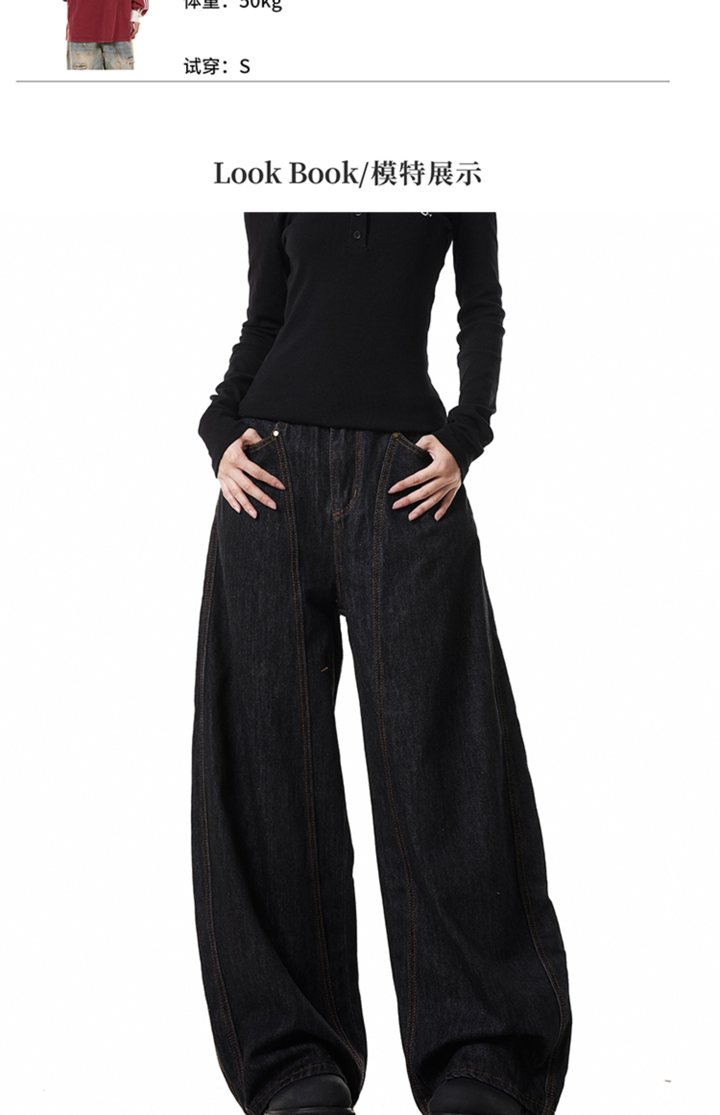 American Retro Wide-Leg Scimitar Jeans for Men and Women, Loose Straight Cleanfit Silhouette Banana Floor-Length Pants Trendy