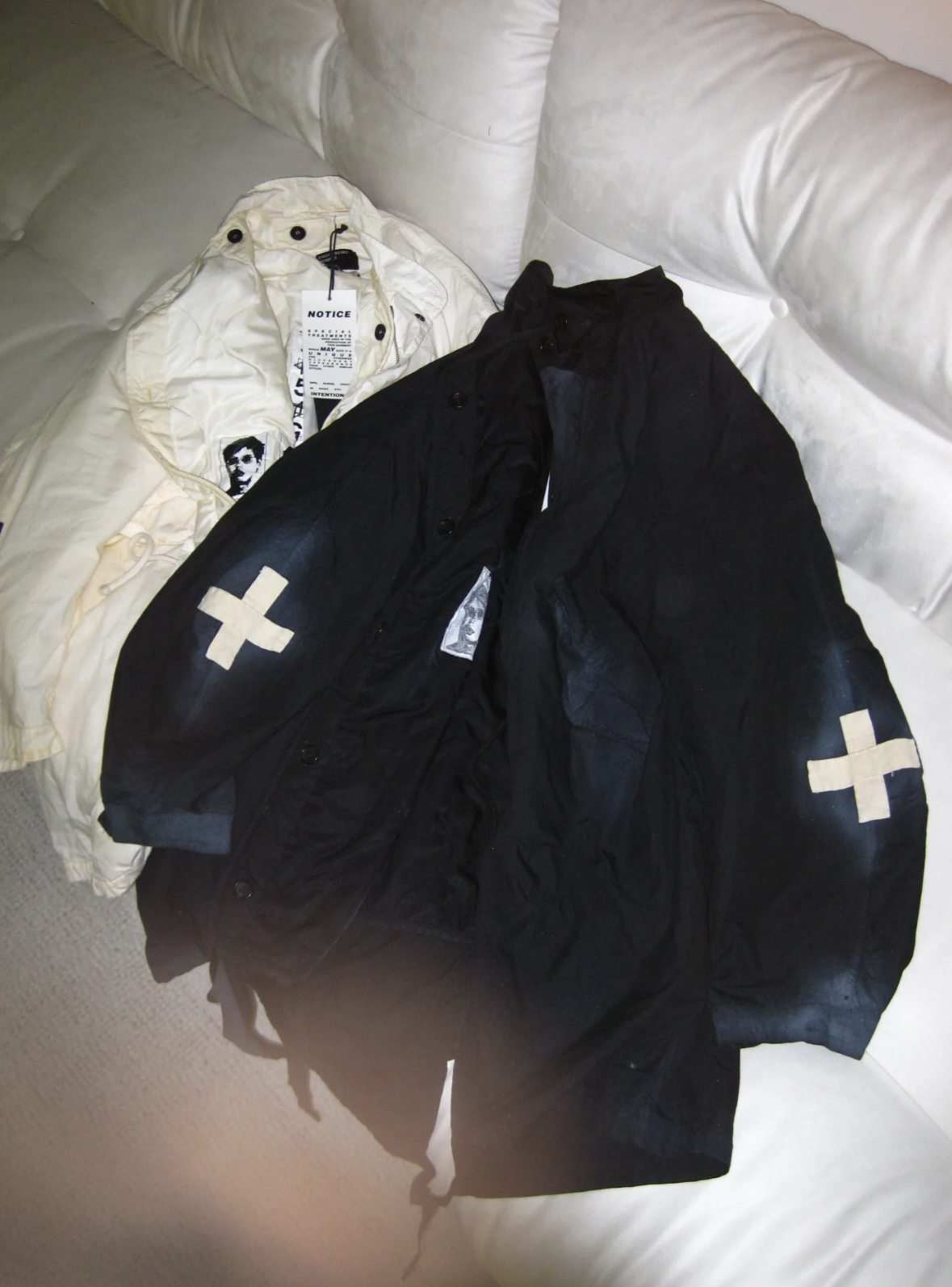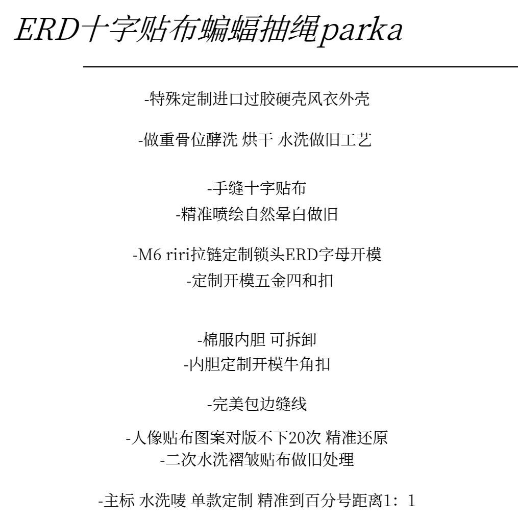 【High-Quality Craftsmanship】Erd Cross Patch Parka Cotton Jacket, Batwing Style with Drawstring Waist at the Back