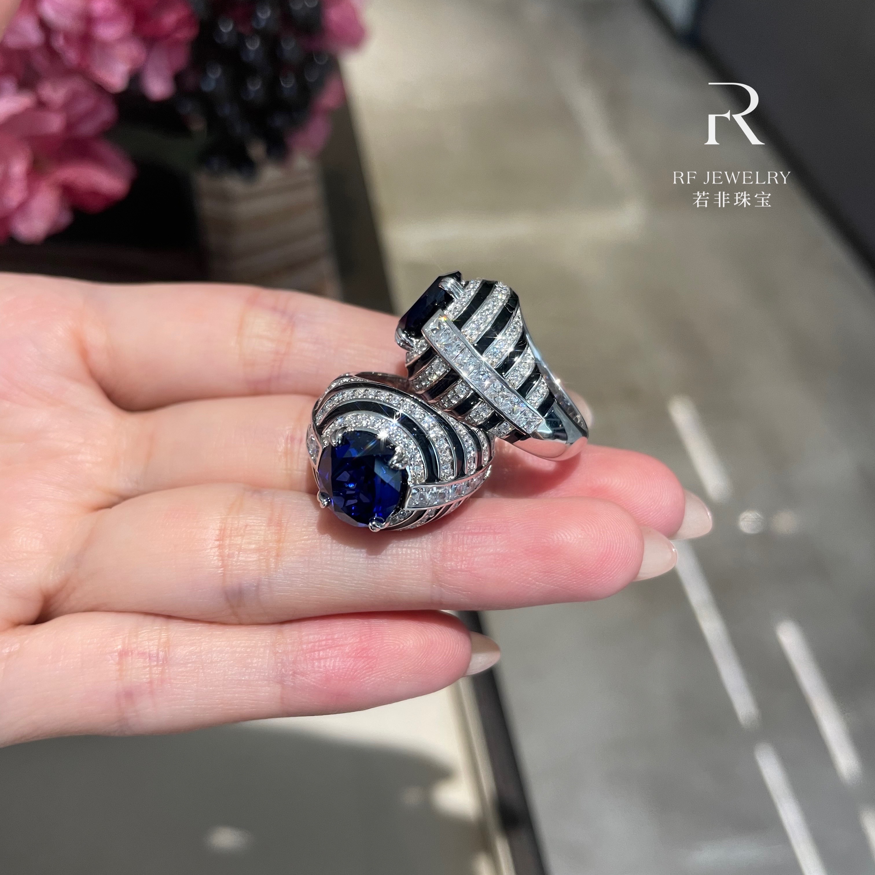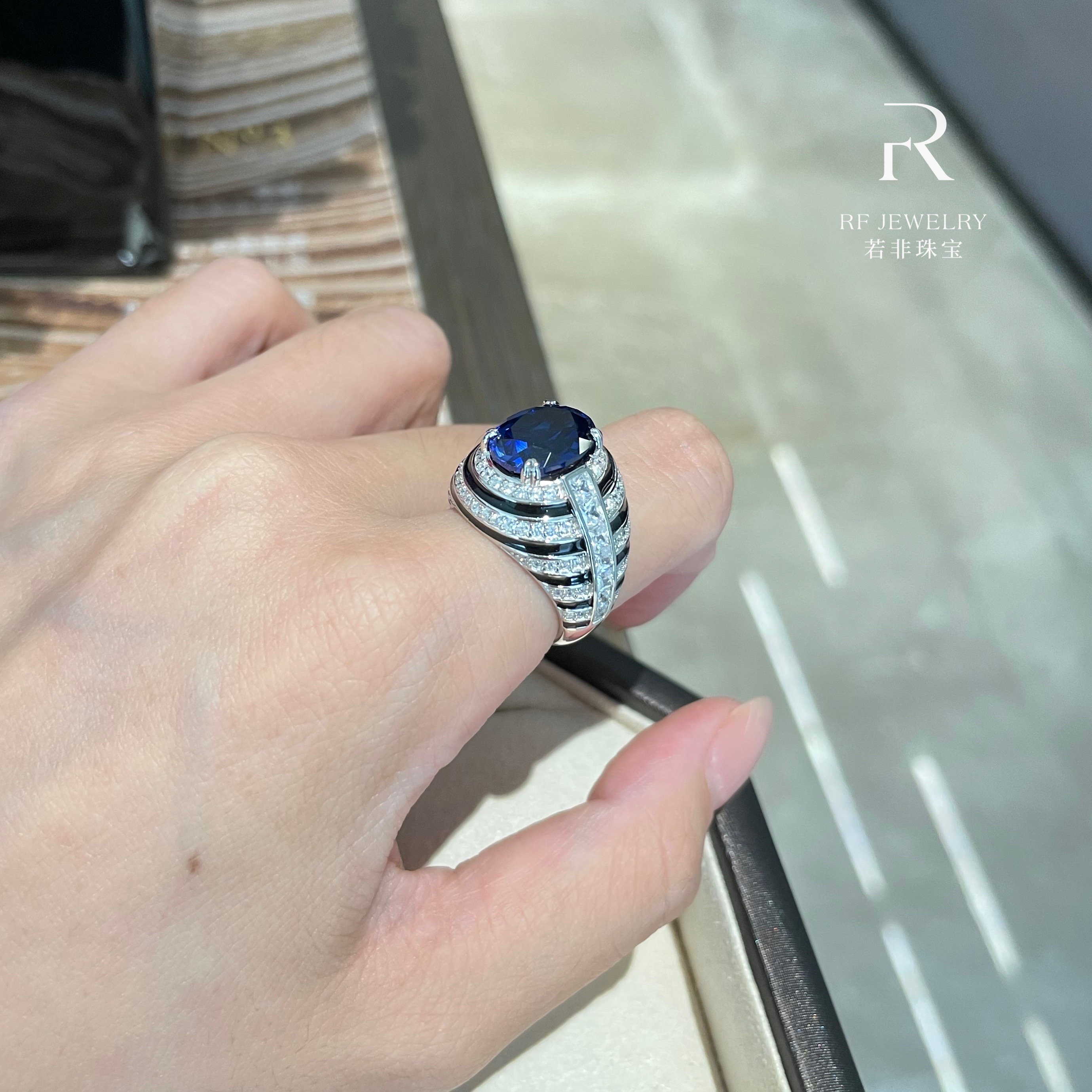 If It Were Not Jewelry|5Ct Main Stone High-End Royal Blue Enamel Craft Ring|Silver Gold-Plated
