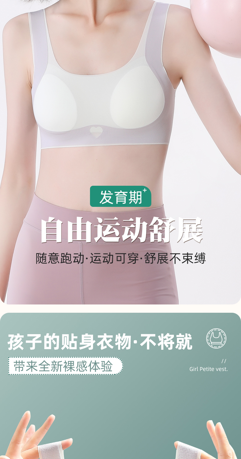 Oudifen Girls' Underwear for Junior High and High School Students in the Second and Third Stages of Puberty Development, Children's Sports Vest Bra