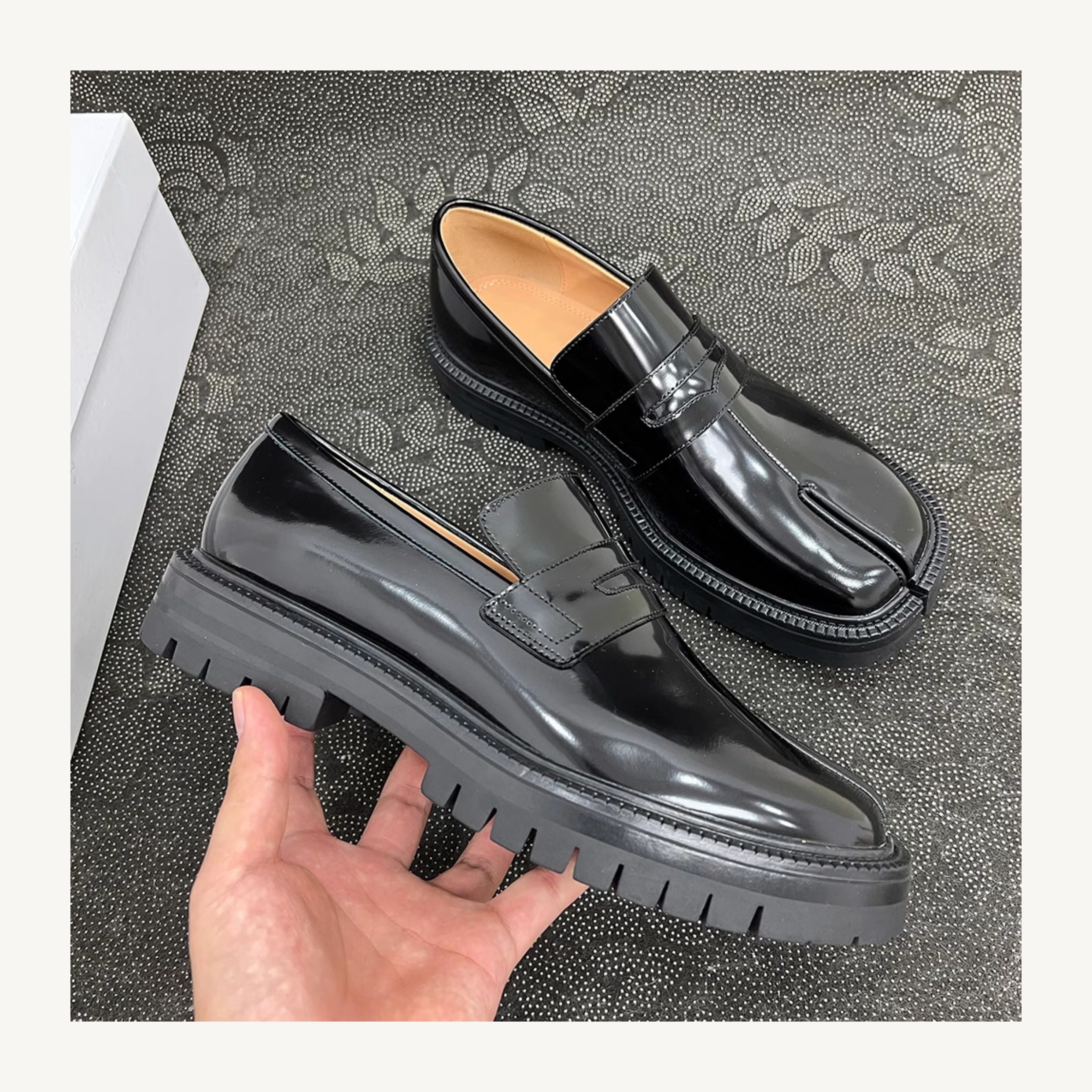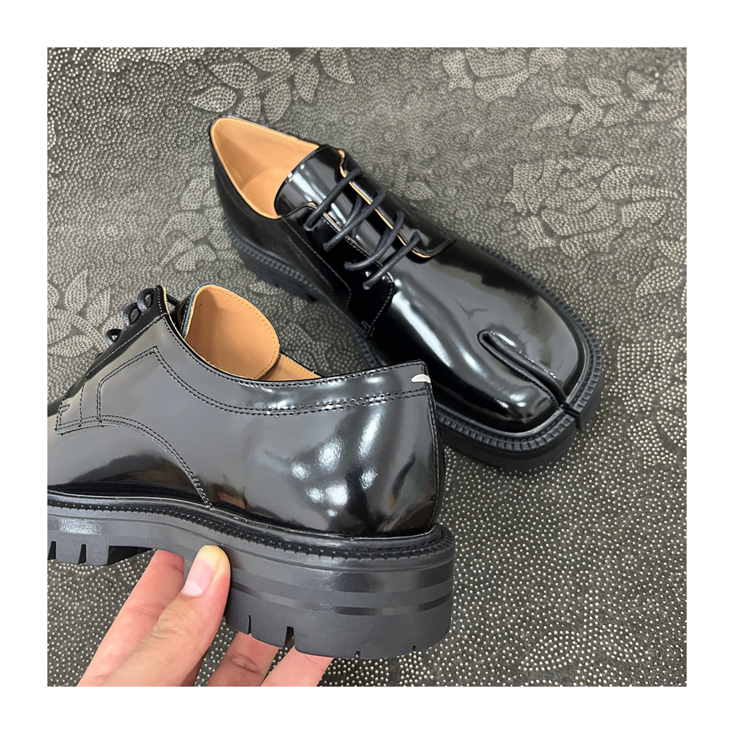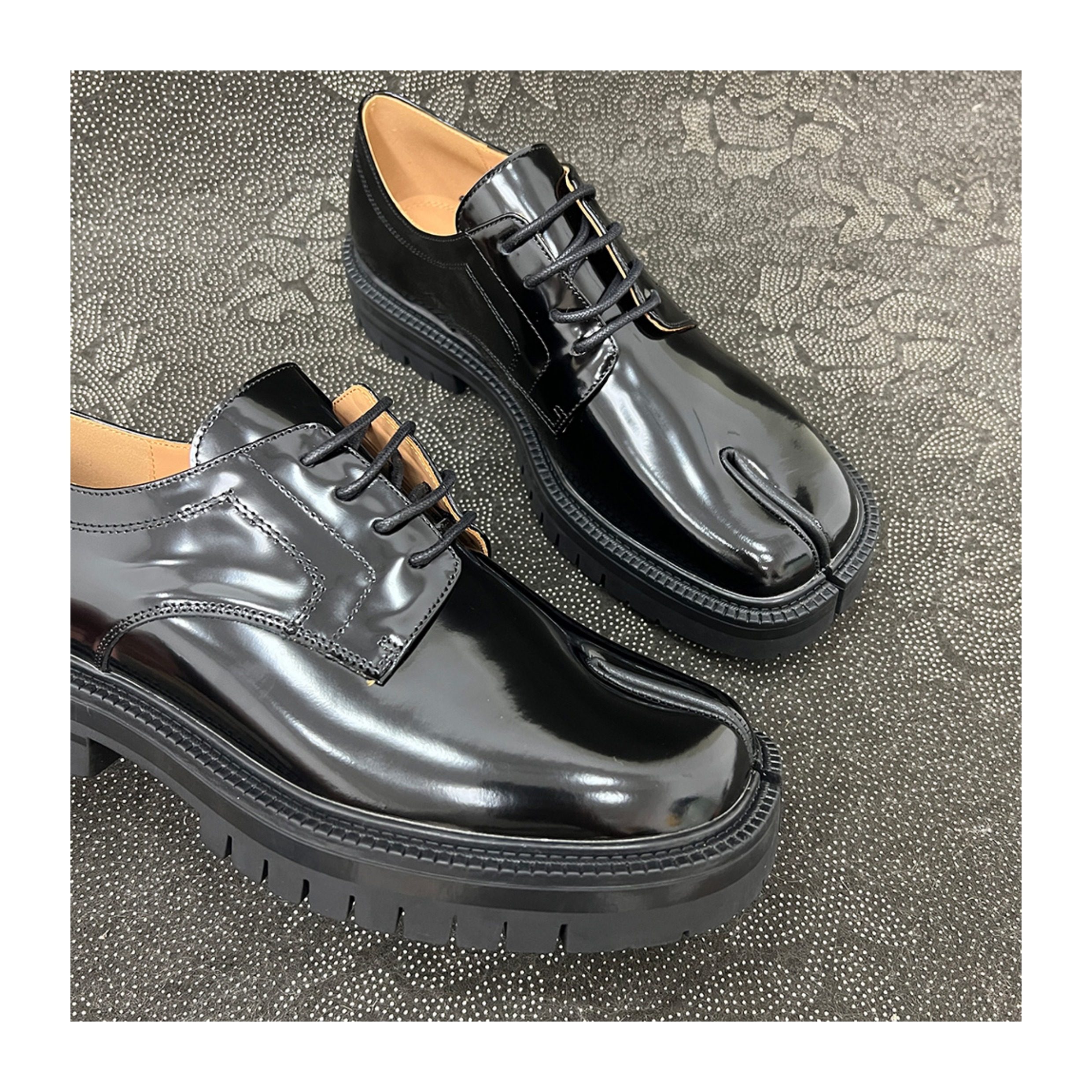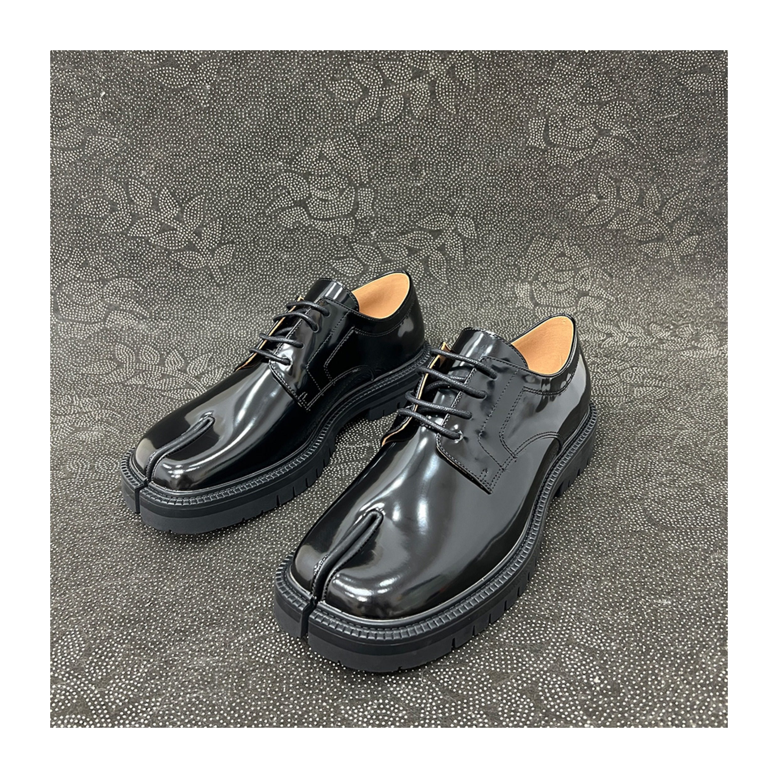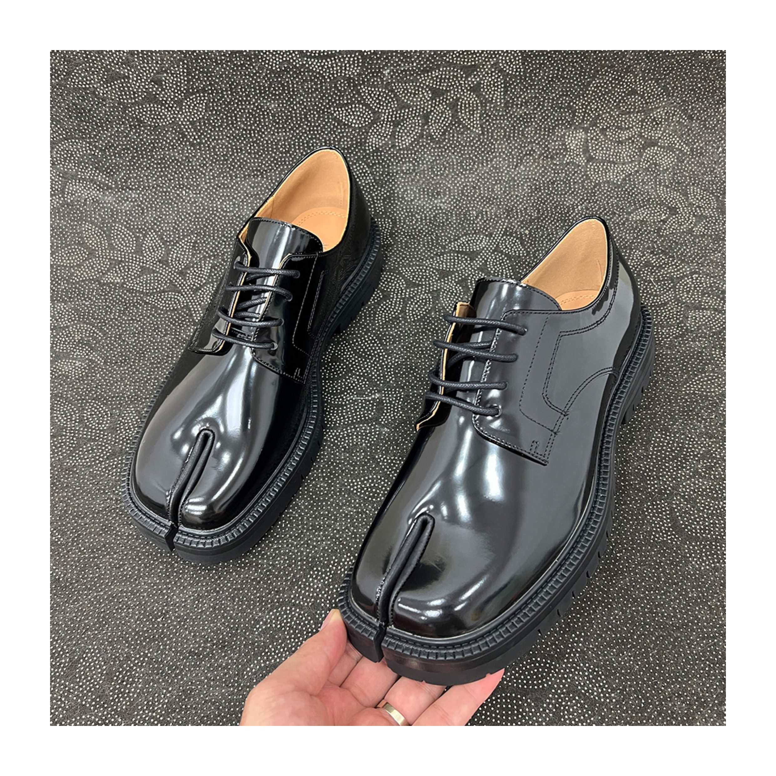 【Old Wang the Shoe Lover】Tabi Split-Toe Lace-Up Thick-Soled Derby Shoes for Men, Height-Increasing Loafers, Horseshoe-Shaped Couple Leather Shoes
