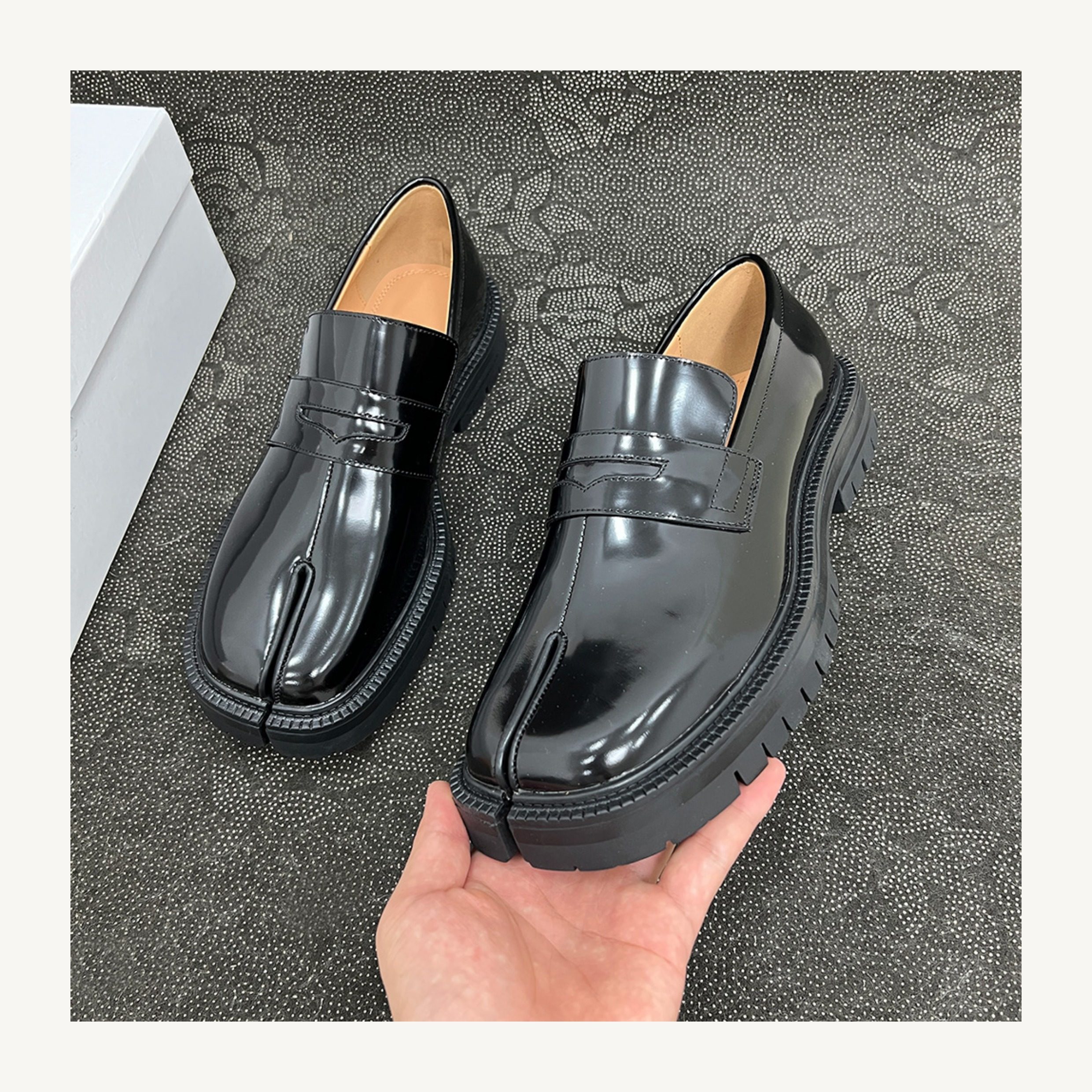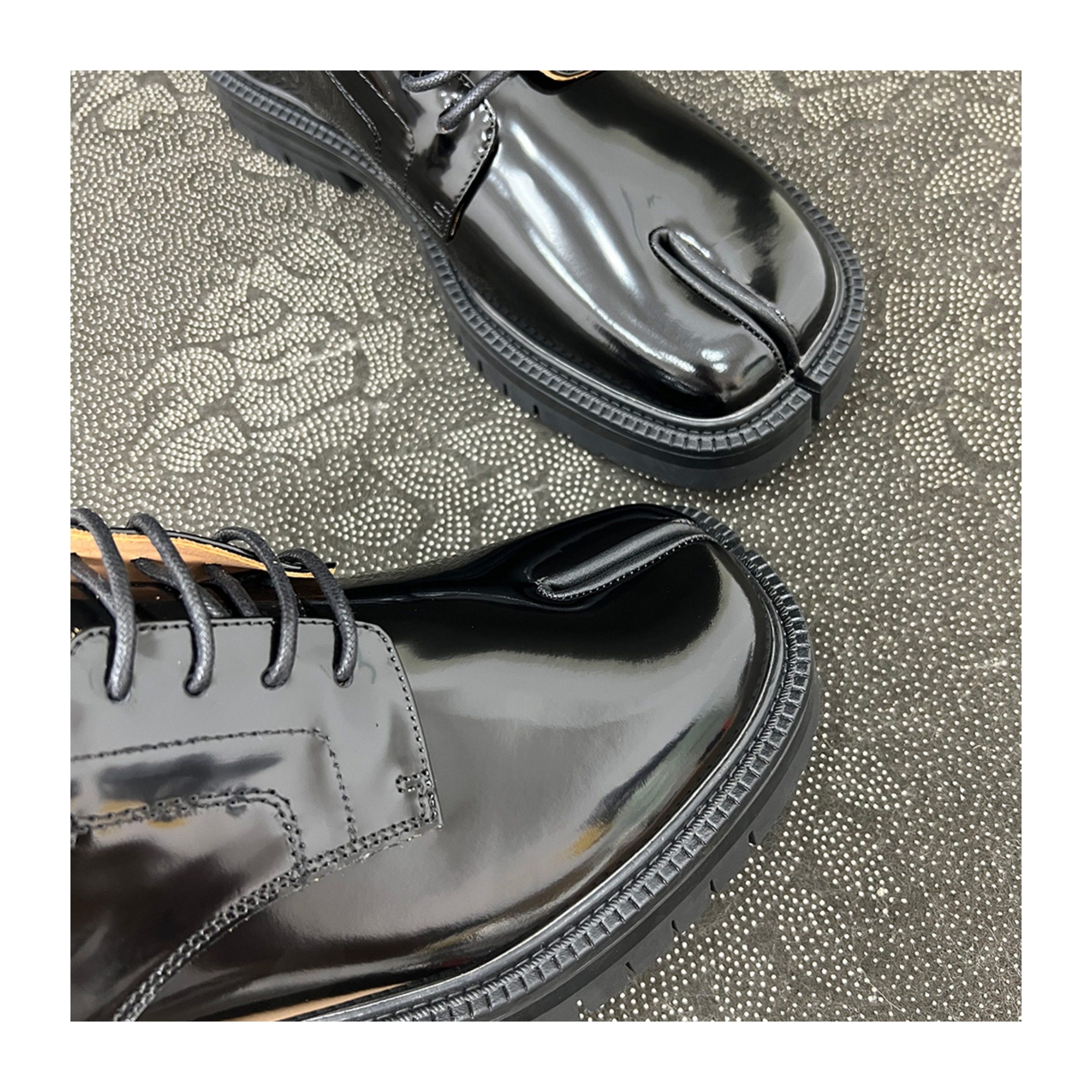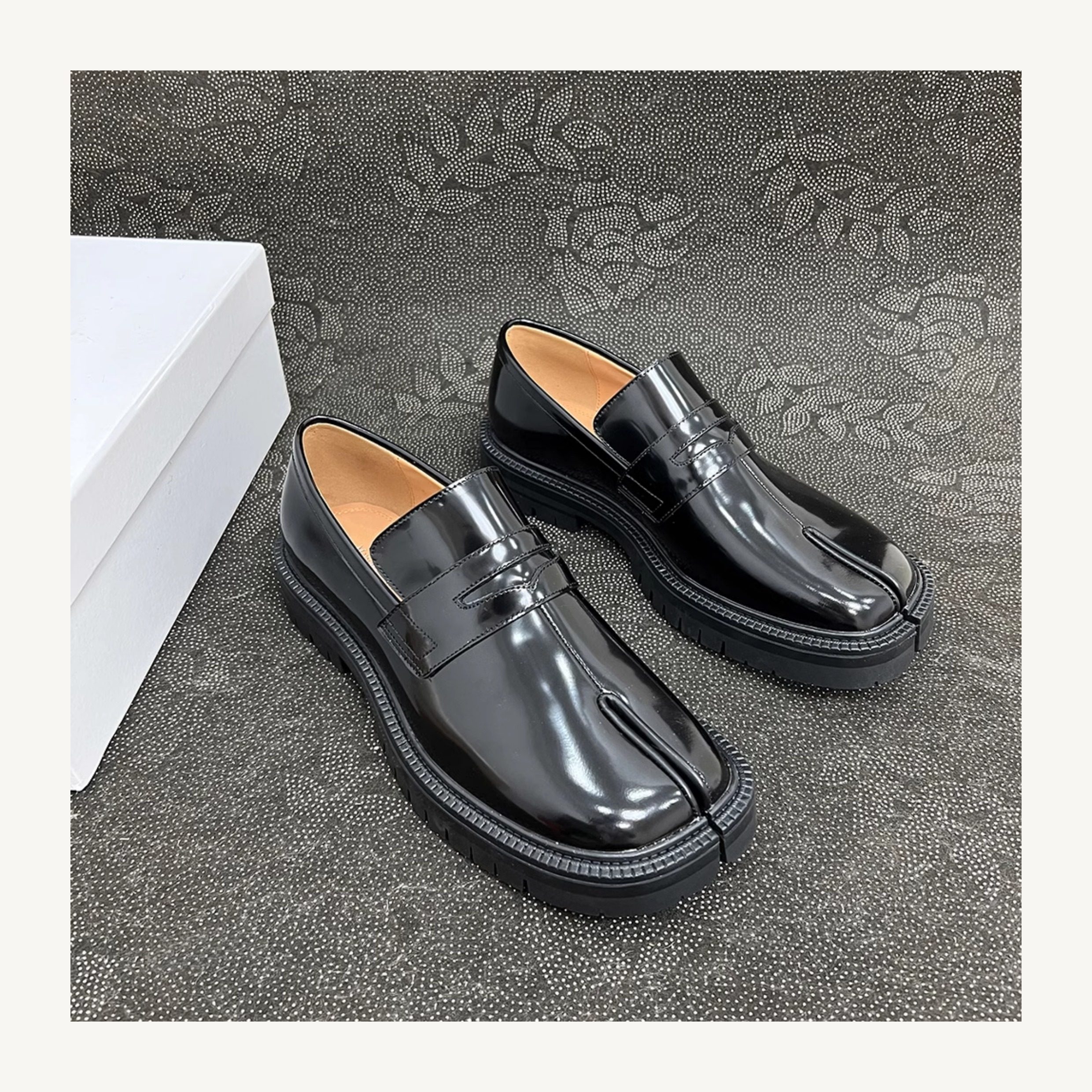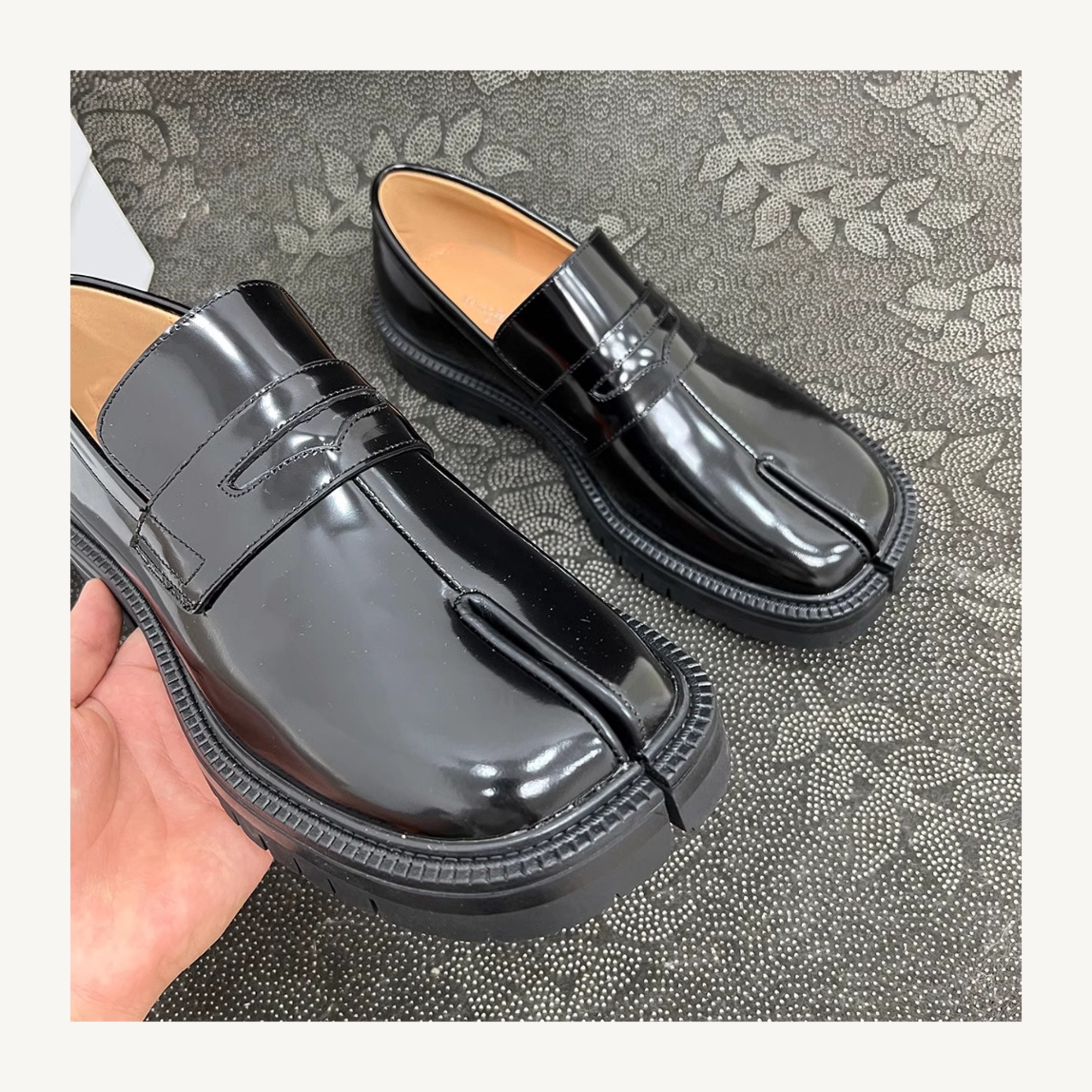 【Old Wang the Shoe Lover】Tabi Split-Toe Lace-Up Thick-Soled Derby Shoes for Men, Height-Increasing Loafers, Horseshoe-Shaped Couple Leather Shoes
