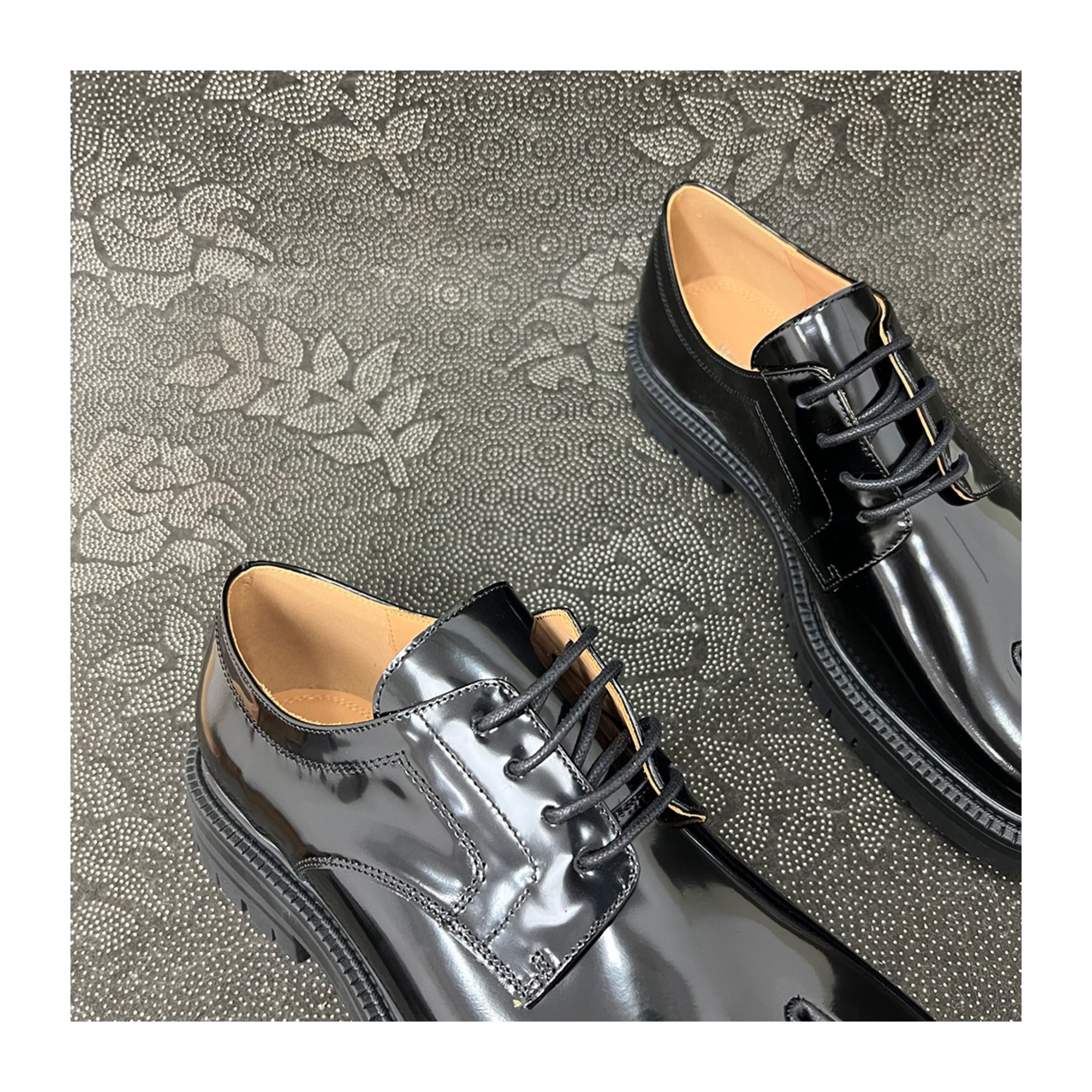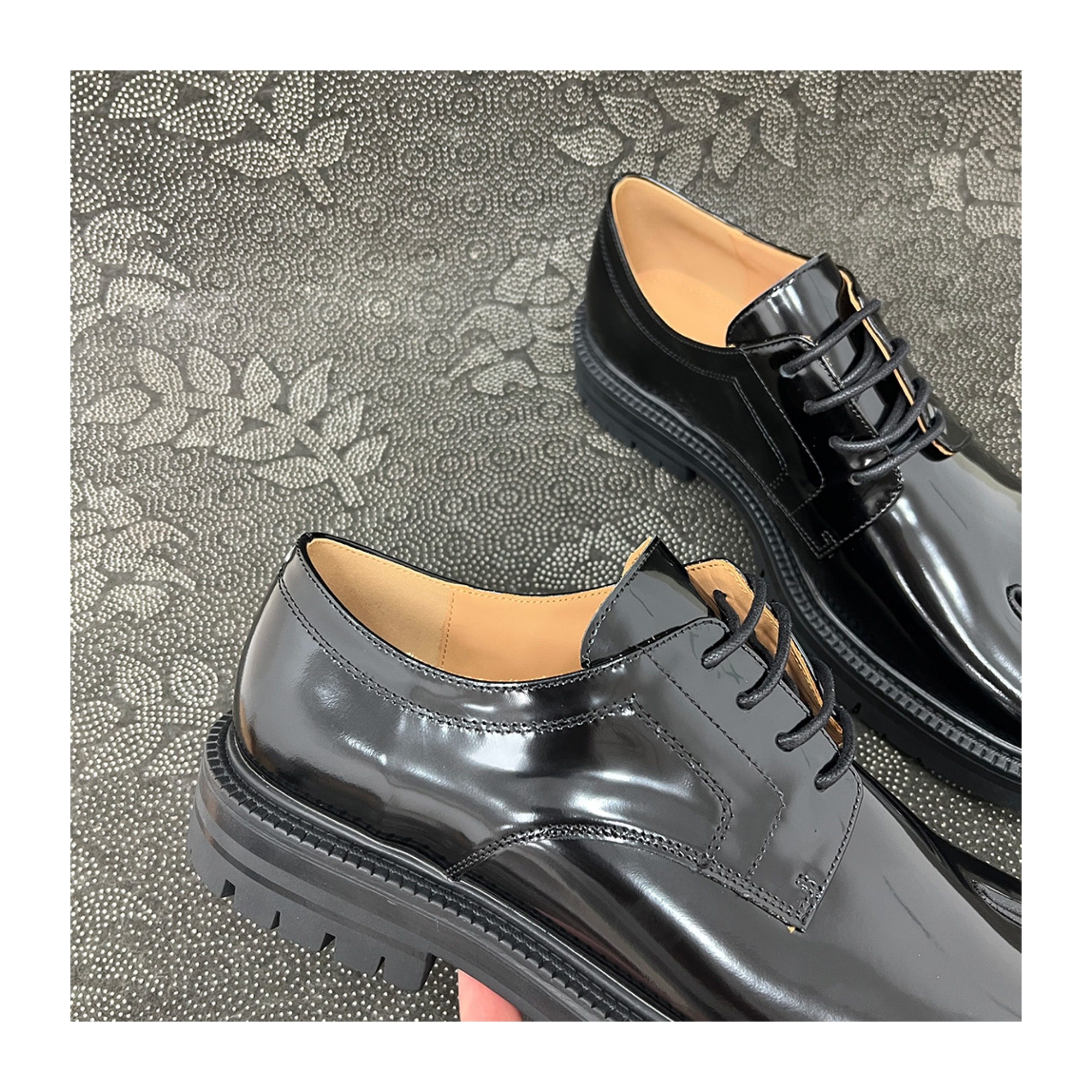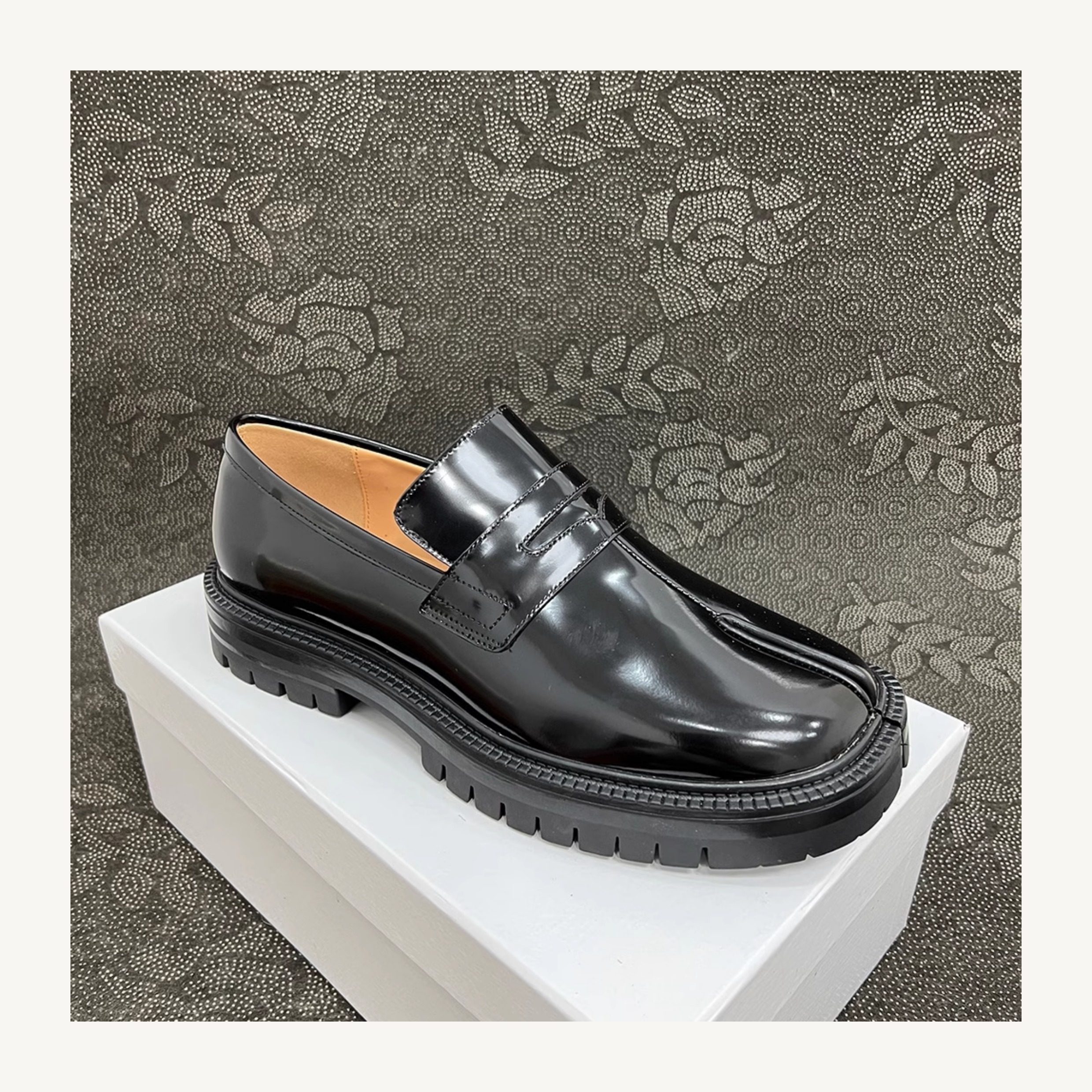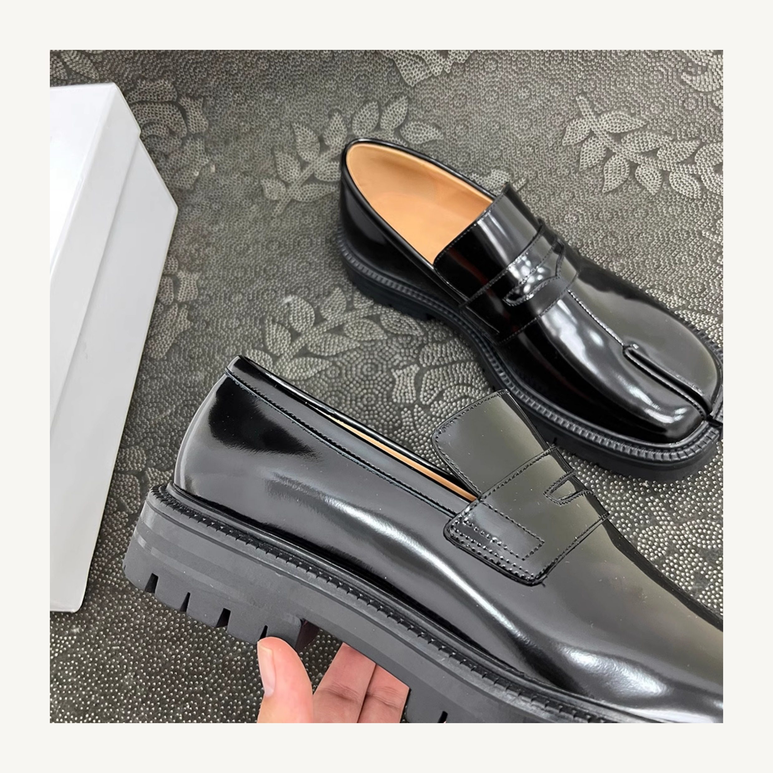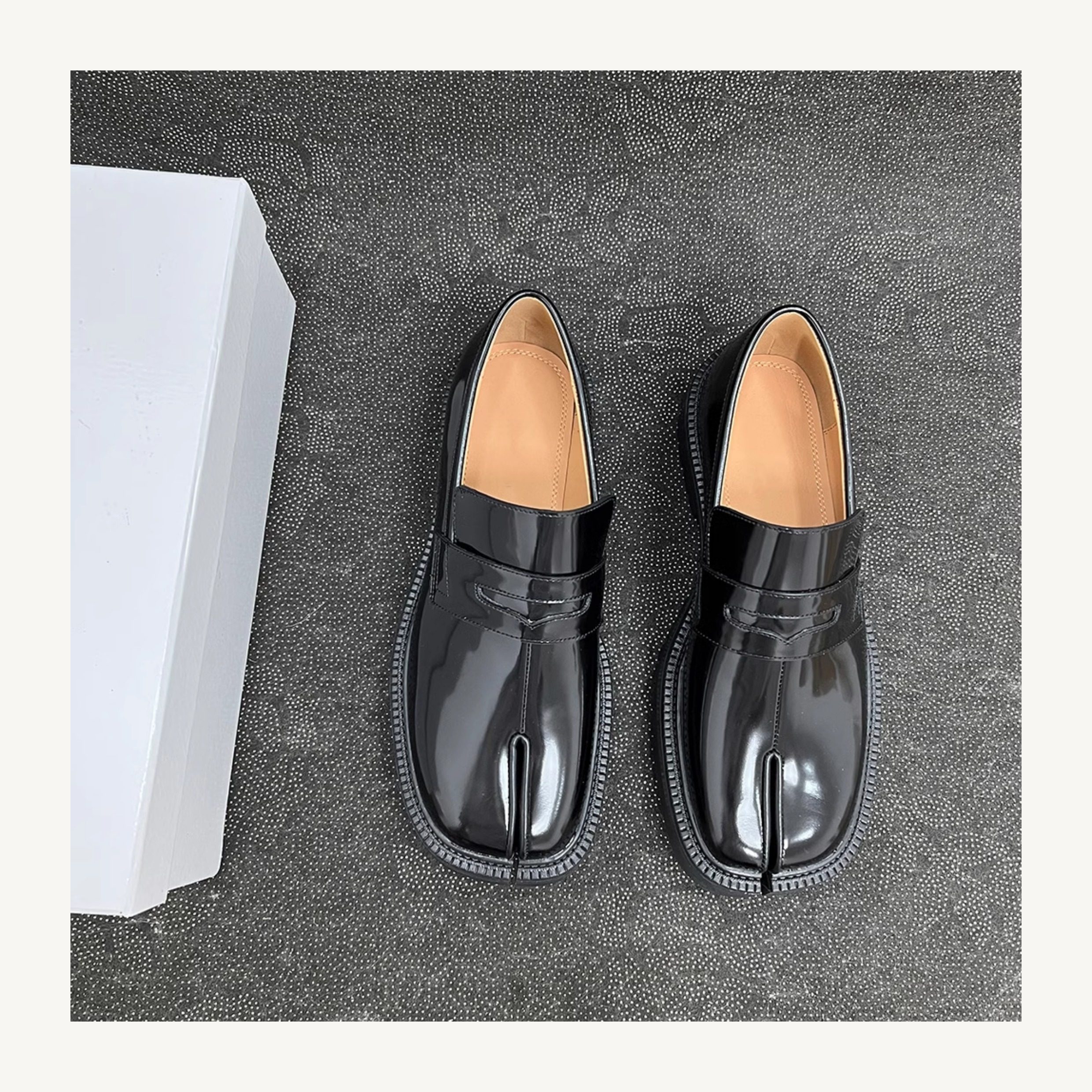 【Old Wang the Shoe Lover】Tabi Split-Toe Lace-Up Thick-Soled Derby Shoes for Men, Height-Increasing Loafers, Horseshoe-Shaped Couple Leather Shoes