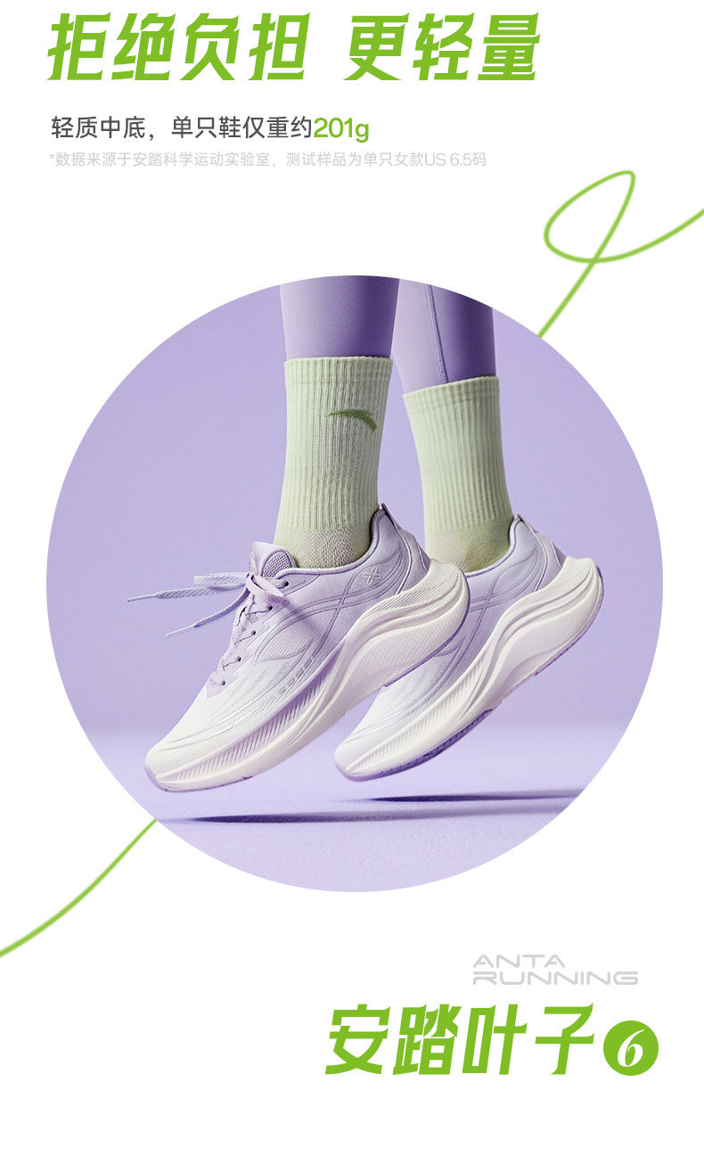 Anta Leaf 6 | Lightweight Soft-Soled Water-Repellent Running Shoes for Women, Lightweight and Wear-Resistant Sports Shoes, Aerobic Jogging Shoes