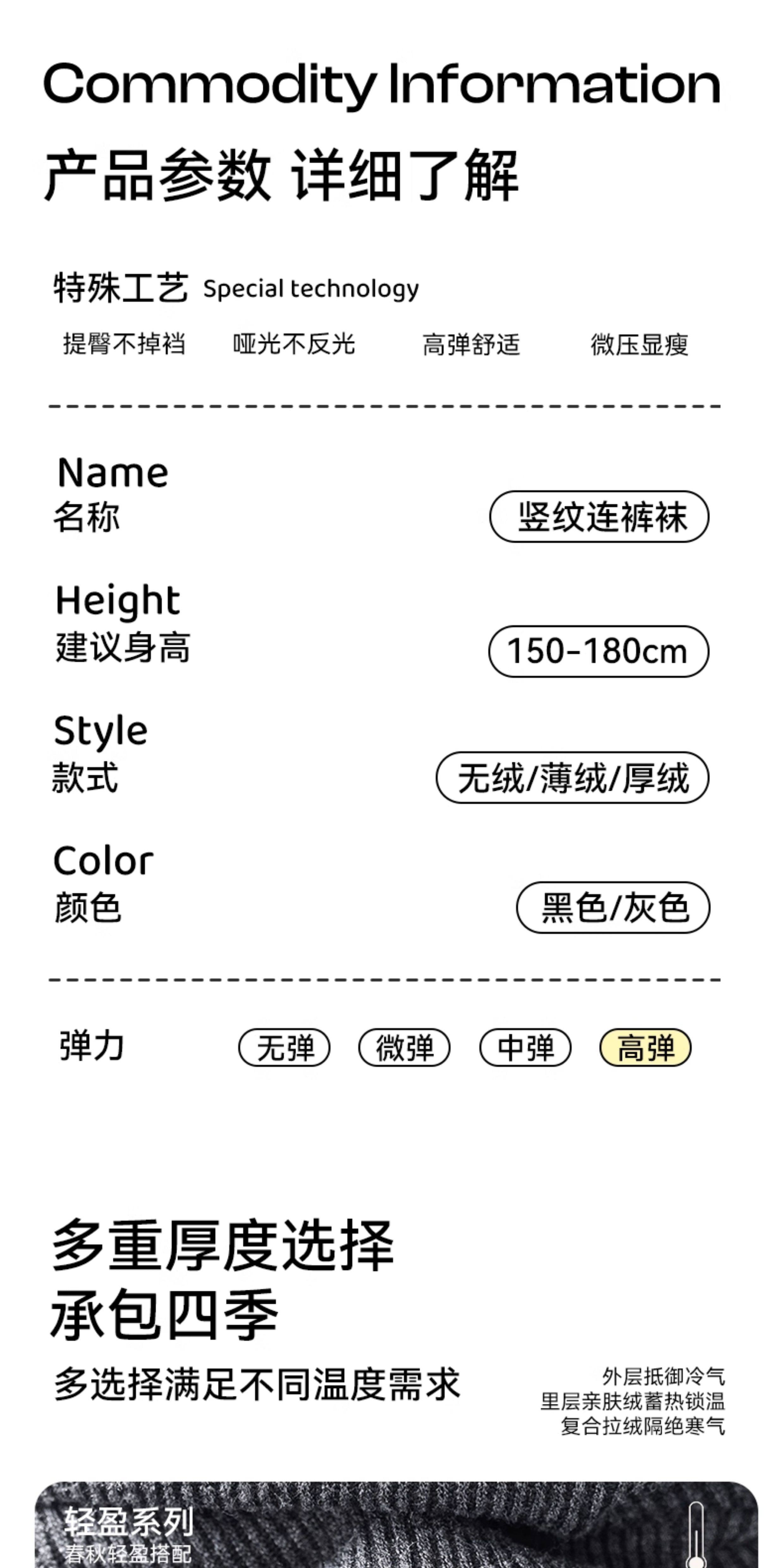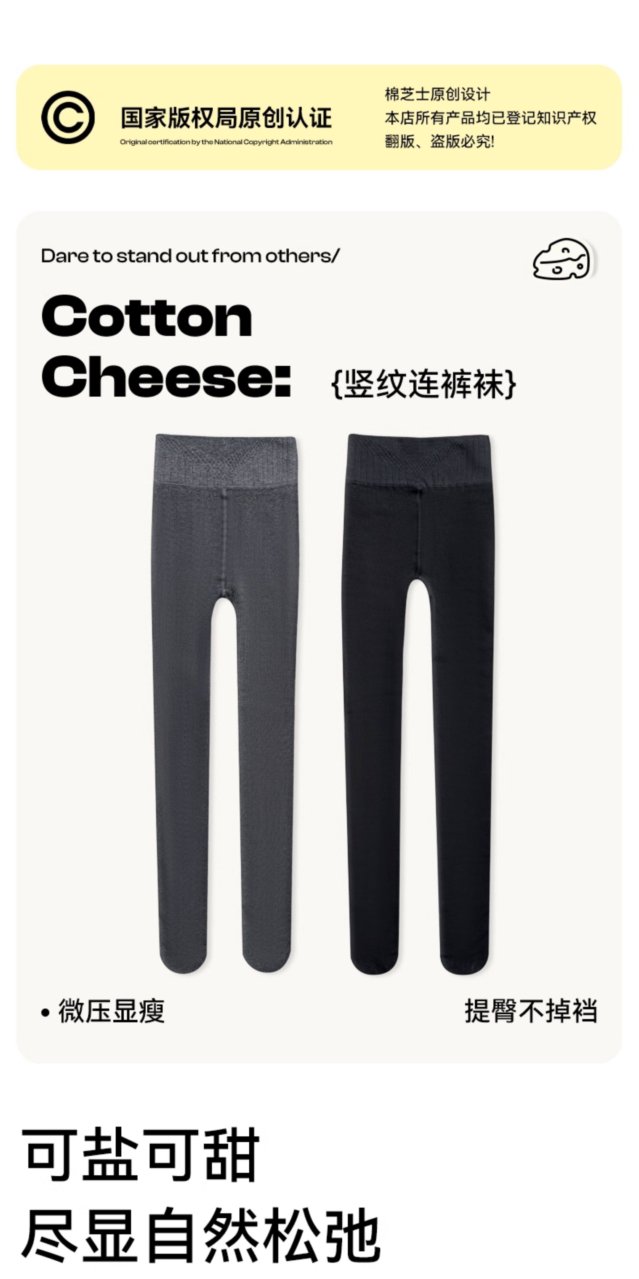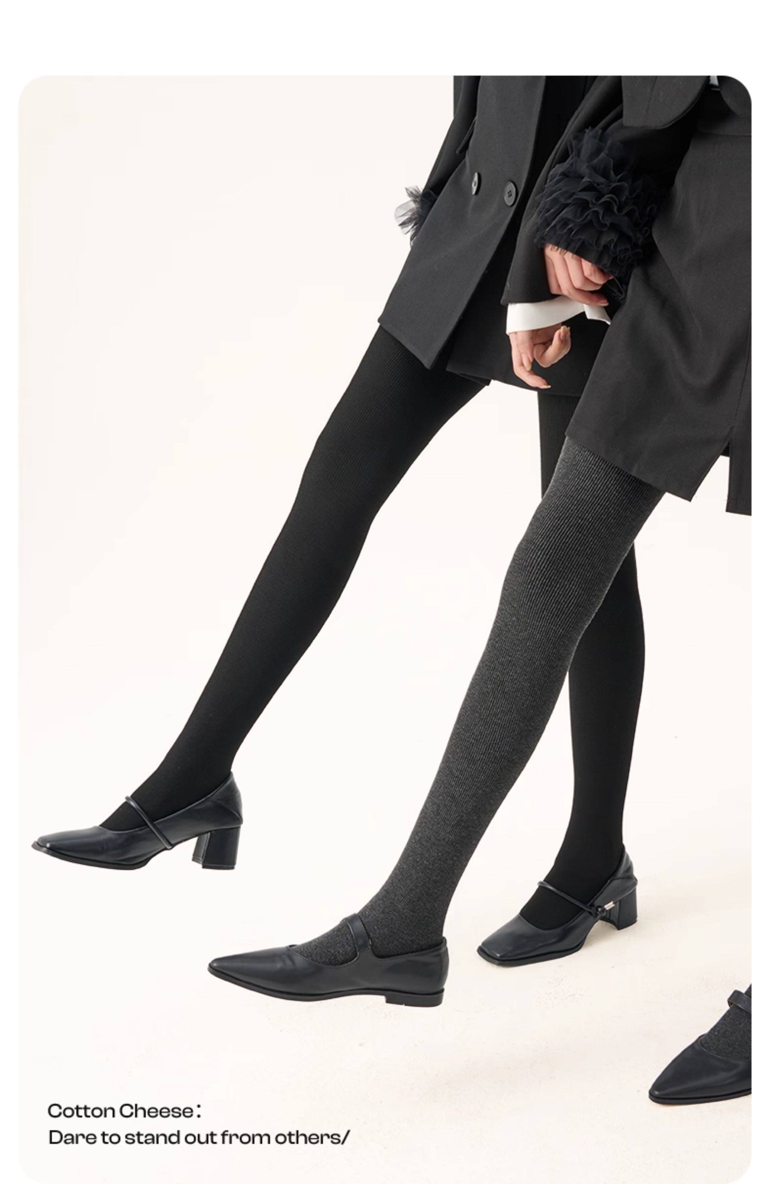 Cotton Cheese Cloud Micro-Pressure Pantyhose for Women, Autumn and Winter Outerwear, Black and Gray Slimming Gray-Tone Butt-Lifting Leggings