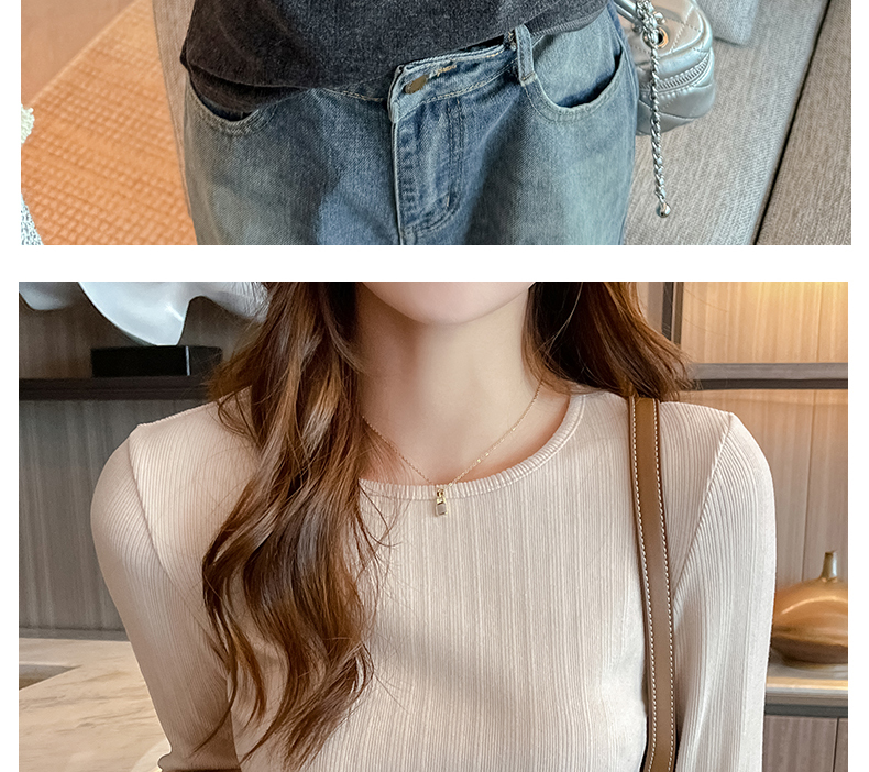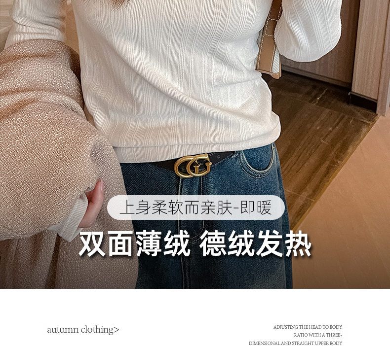 Catman White Round-Neck Long-Sleeve Base Shirt for Women, Spring and Autumn, Fall and Winter 2025 New Thickened Style, Can Be Worn as an Inner Layer or Outerwear, High-End