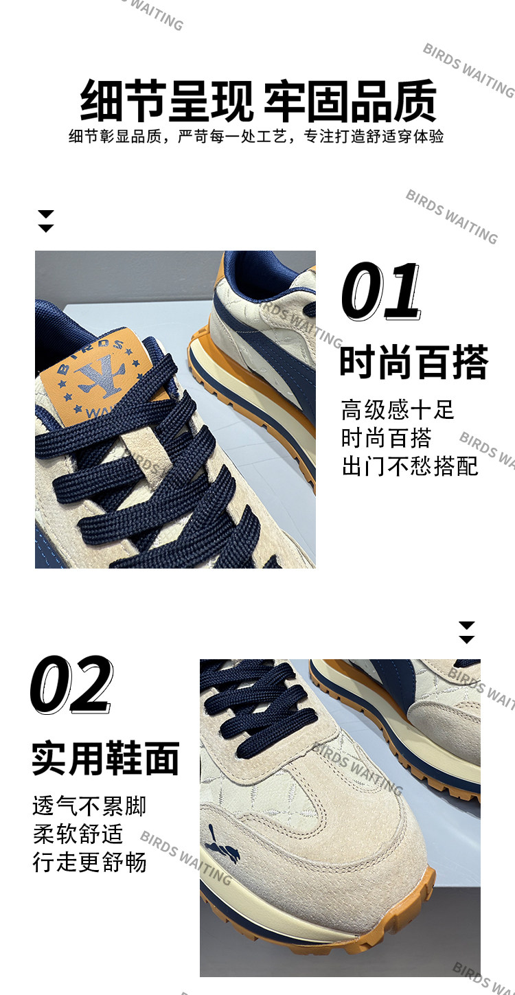 Men's Sneakers, Fashionable Casual Versatile Dad Shoes, Breathable Comfortable Retro Spring and Autumn Thick-Soled Trendy Shoes